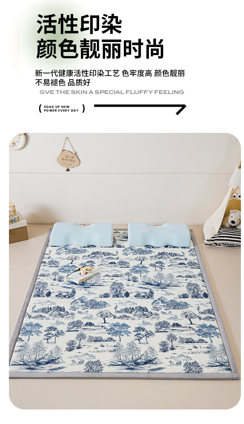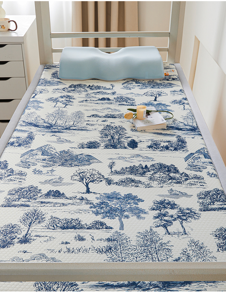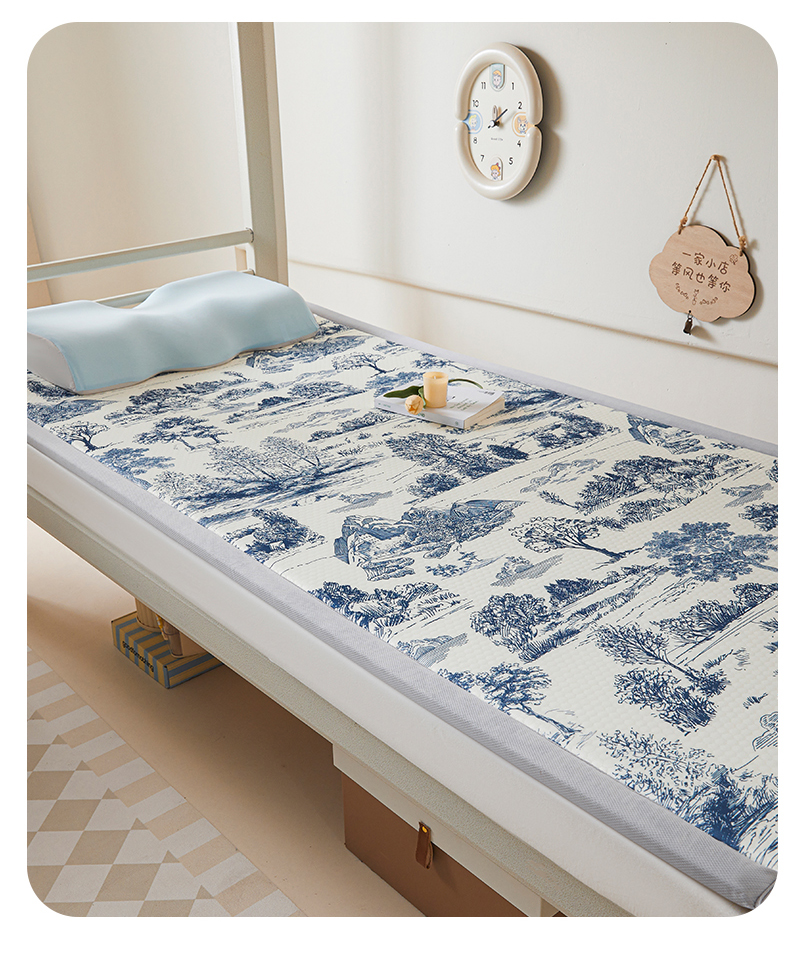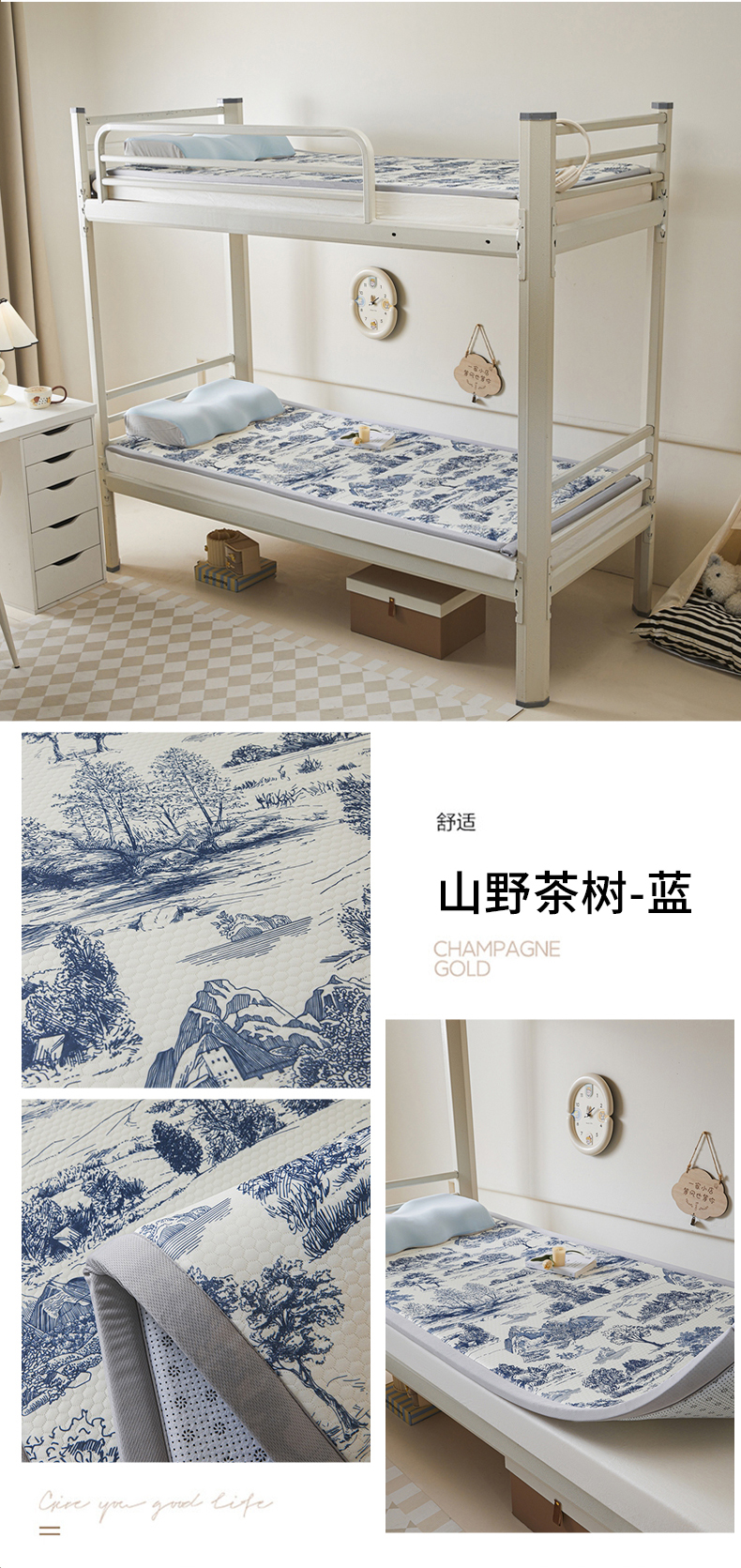 商品名称:川悦生活 2025新款数码印花冰豆豆凉席床垫-学生床 山野茶树-蓝