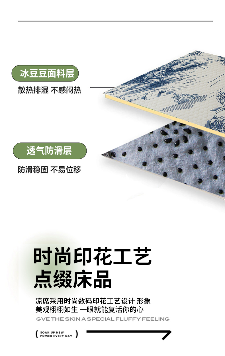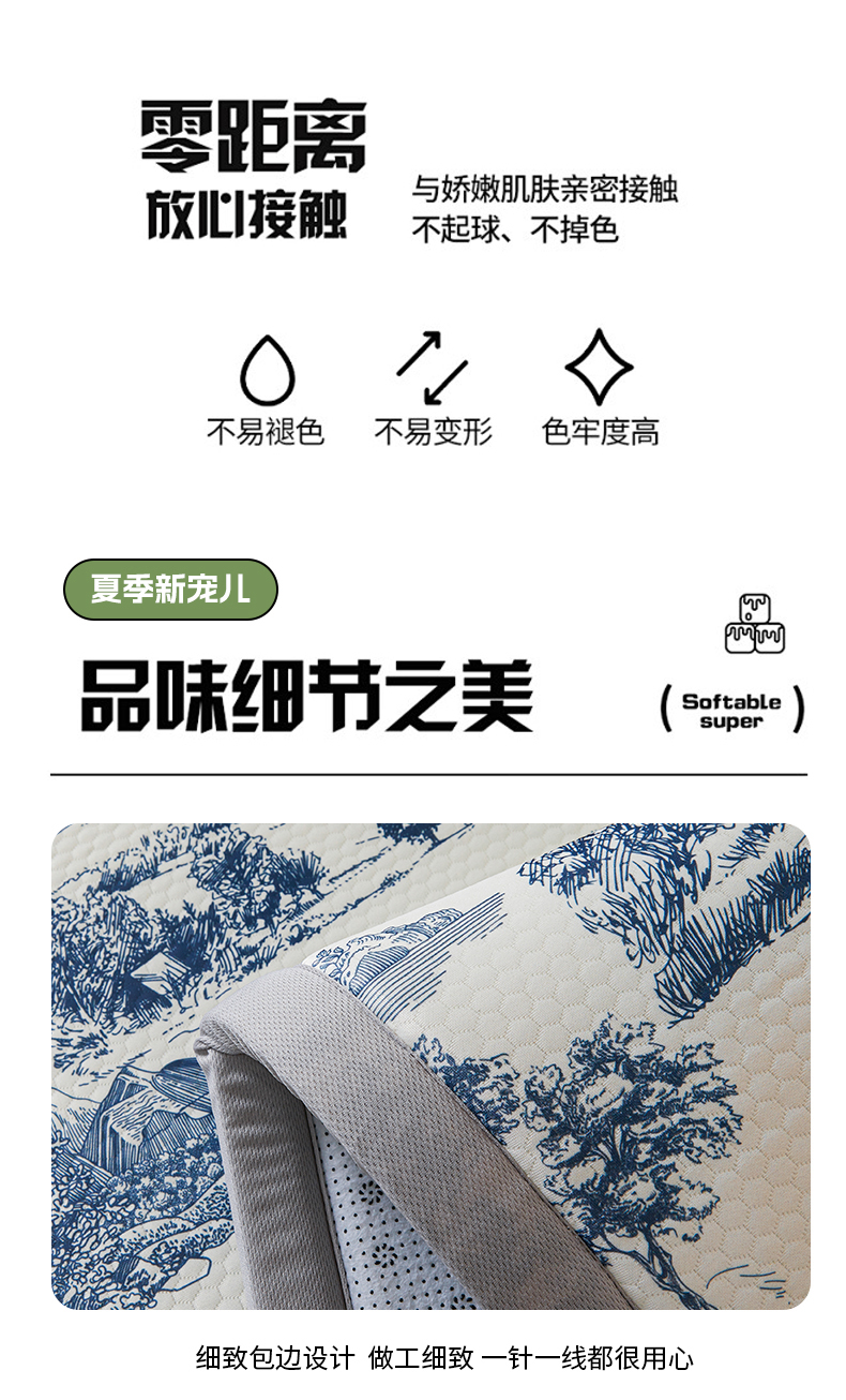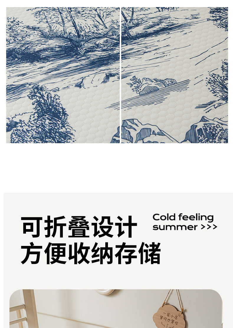 商品名称:川悦生活 2025新款数码印花冰豆豆凉席床垫-学生床 山野茶树-蓝
