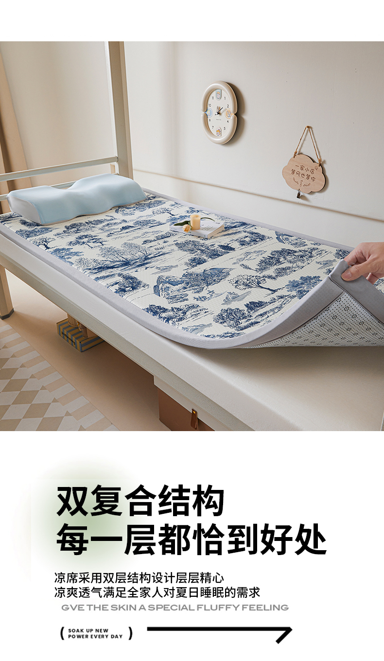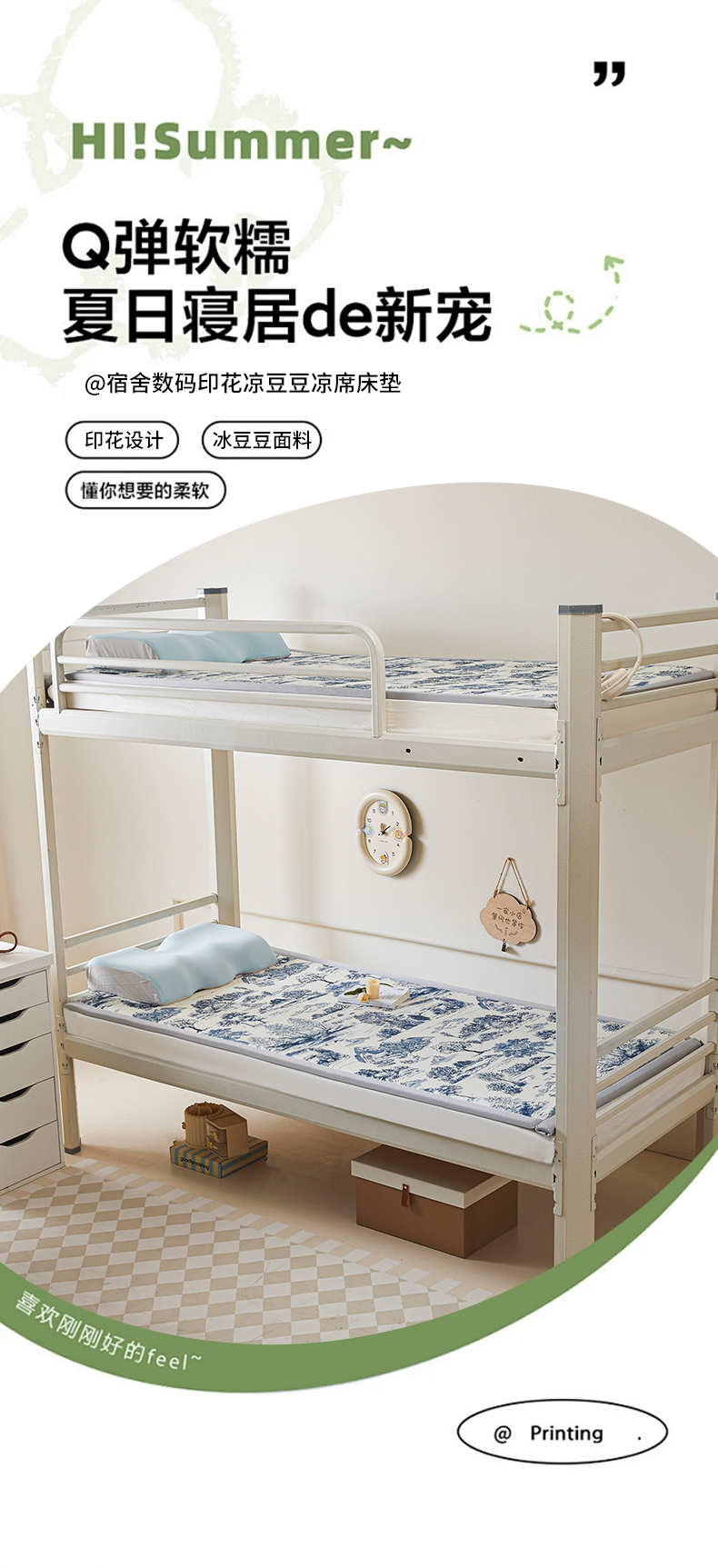 川悦生活 2025新款数码印花冰豆豆凉席床垫-学生床 山野茶树-蓝