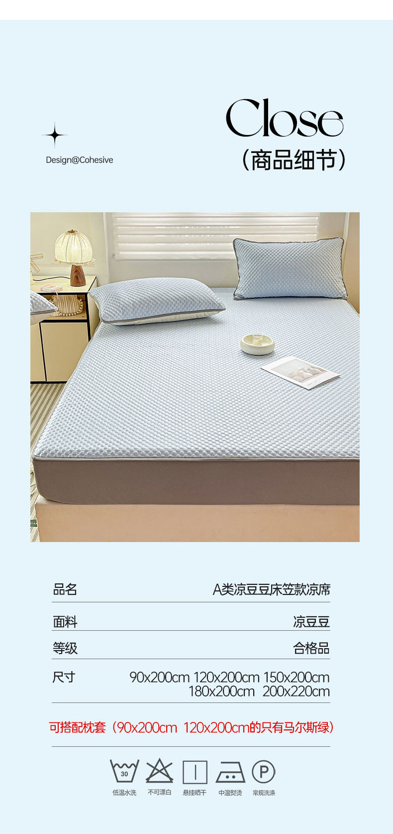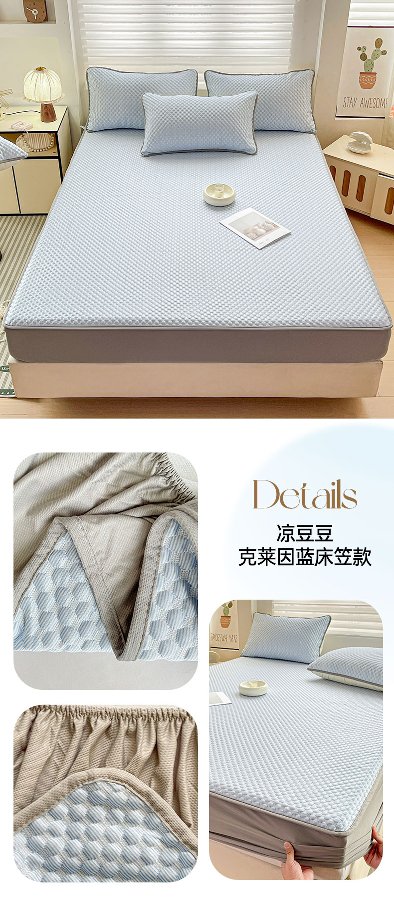 • 91家纺网 家纺一手货源 找家纺 灰鲸 2025新款冰豆豆床笠款凉席 凉豆豆-克莱因蓝床笠款