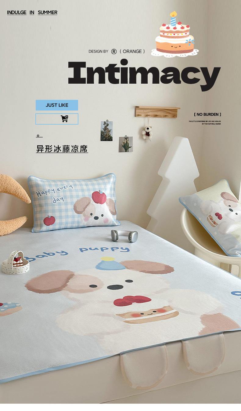 商品名称:美乐迪家纺 2025新款异形冰藤席 蛋糕小狗