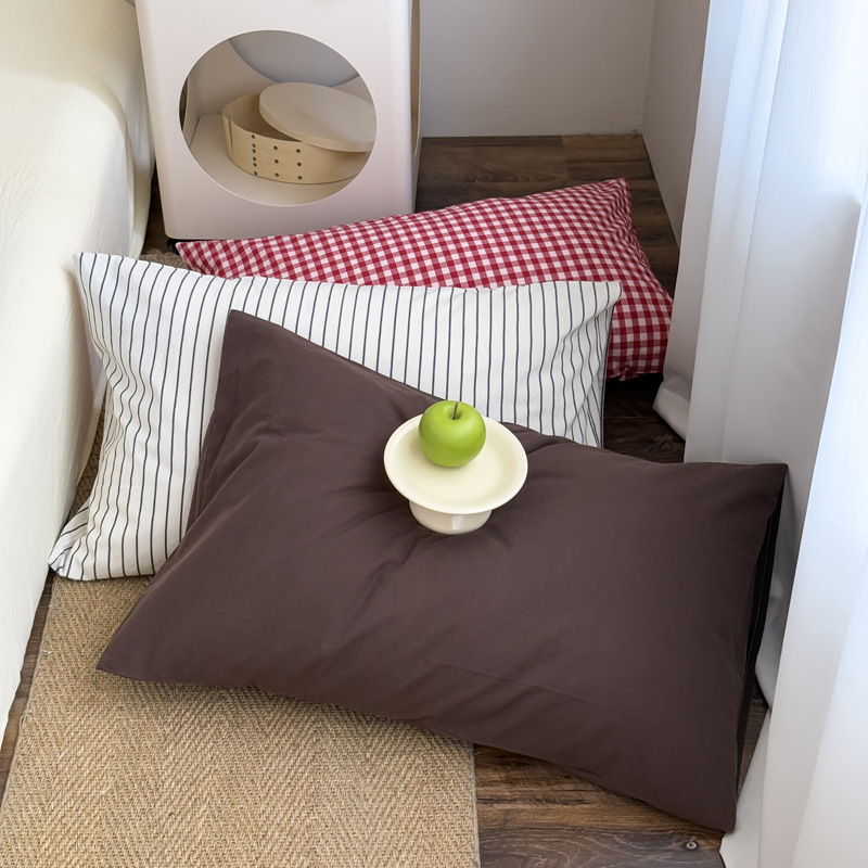 (总)艾沁2025新款全棉水洗棉单枕套,焦糖,栗子条纹,巧克力,驼色