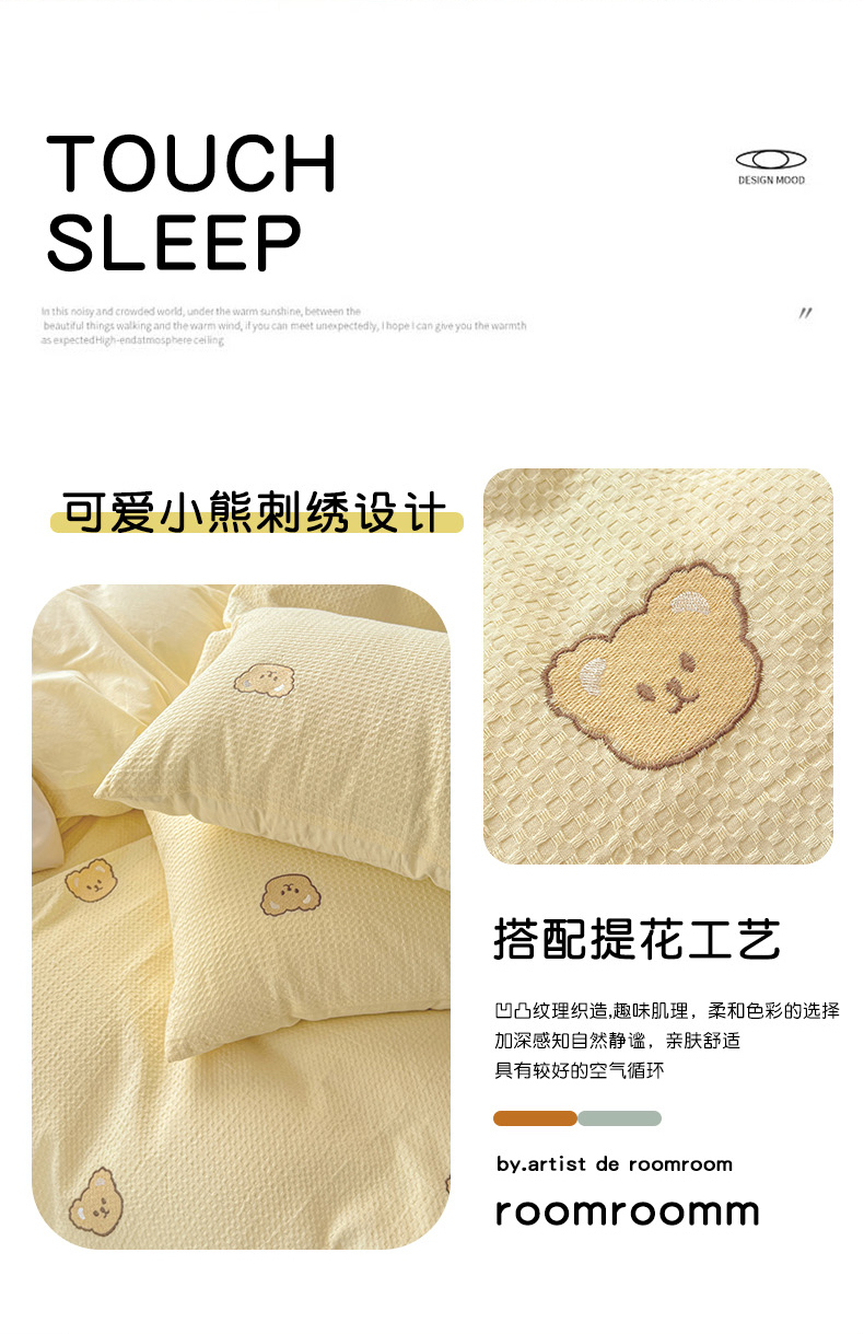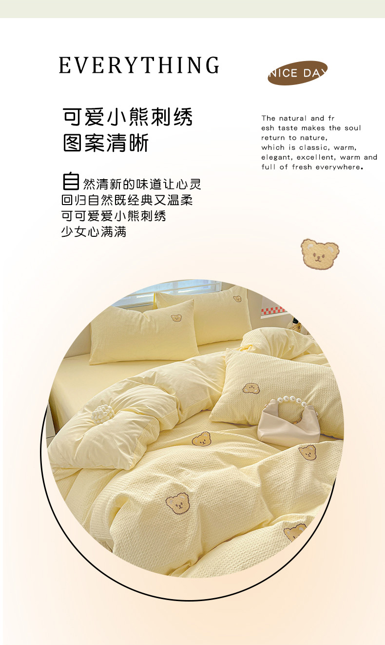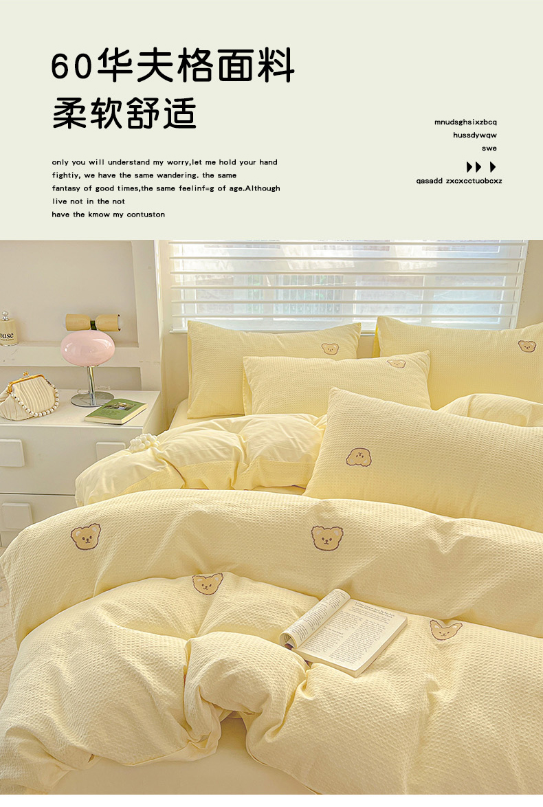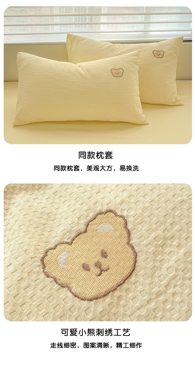 当前位置: 91家纺网 > 商品网购 > 床品套件 > 四件套 > 全棉普通四件套 > 静家居 2025新款全棉纯棉华夫格北欧小熊刺绣四件套系列-风格一 北欧小熊-鹅黄