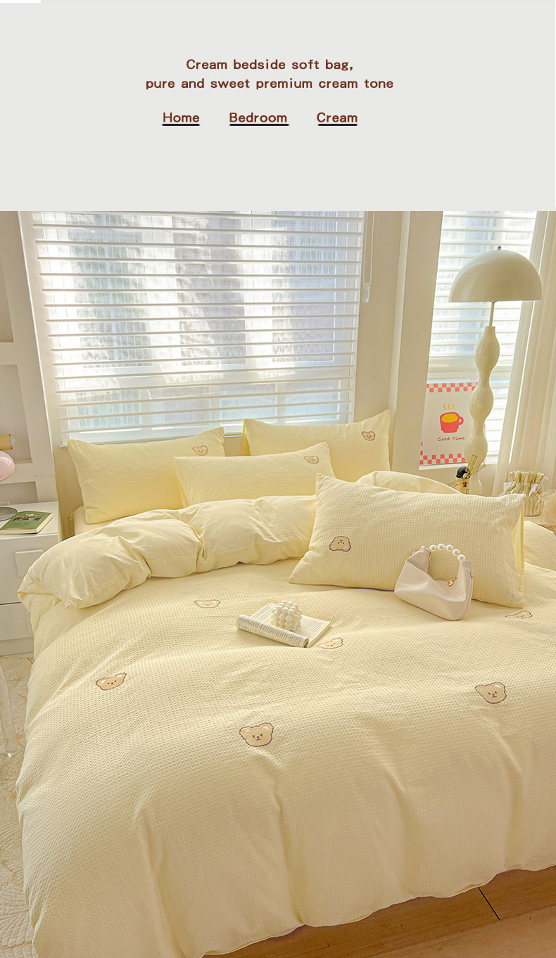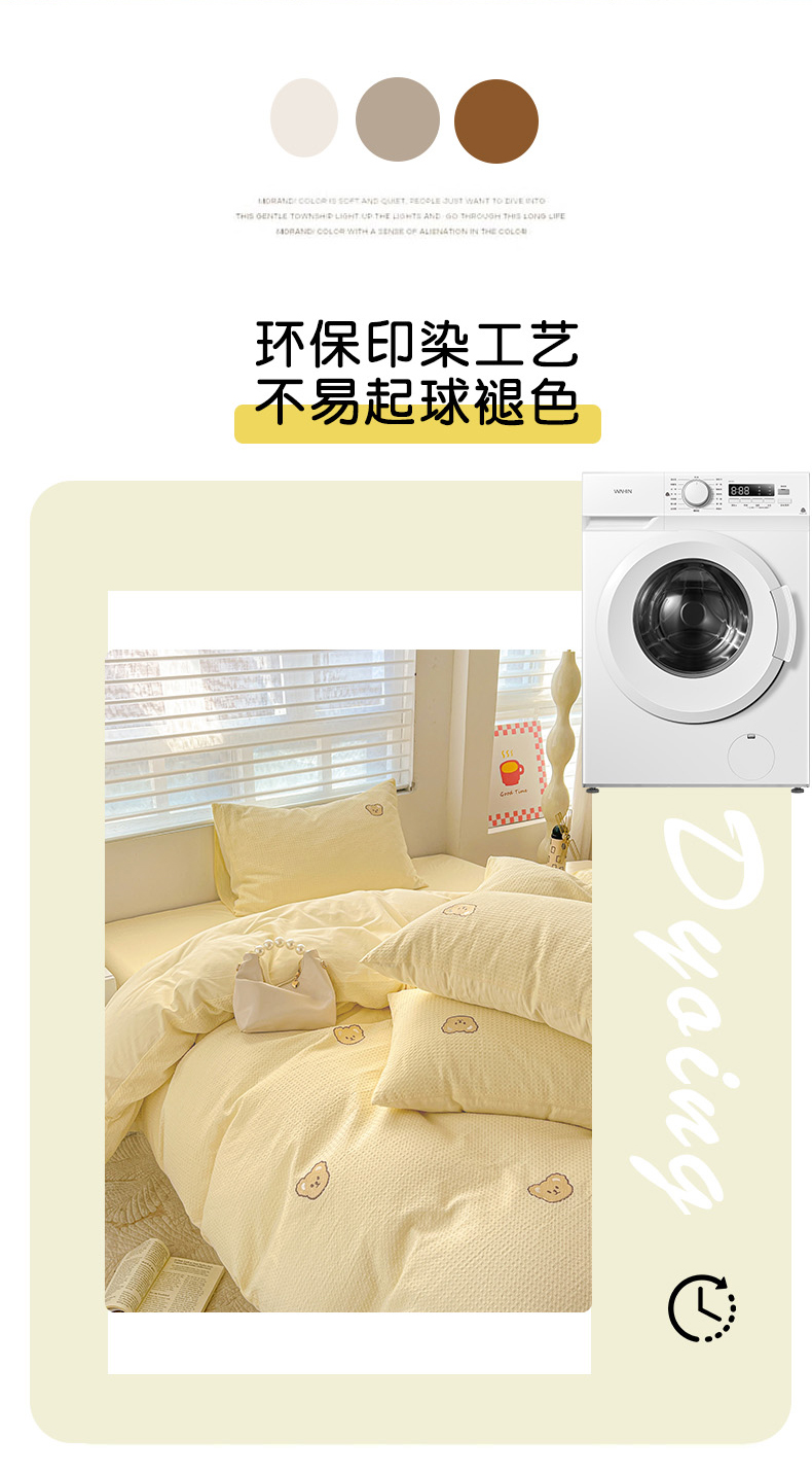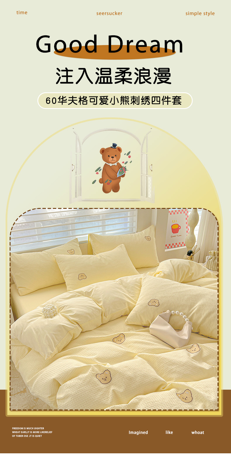 当前位置: 91家纺网 > 商品网购 > 床品套件 > 四件套 > 全棉普通四件套 > 静家居 2025新款全棉纯棉华夫格北欧小熊刺绣四件套系列-风格一 北欧小熊-鹅黄