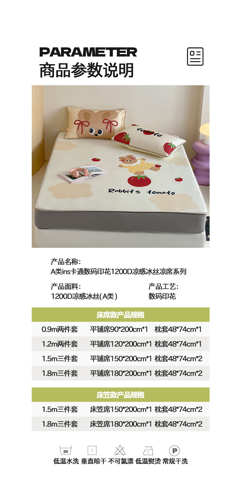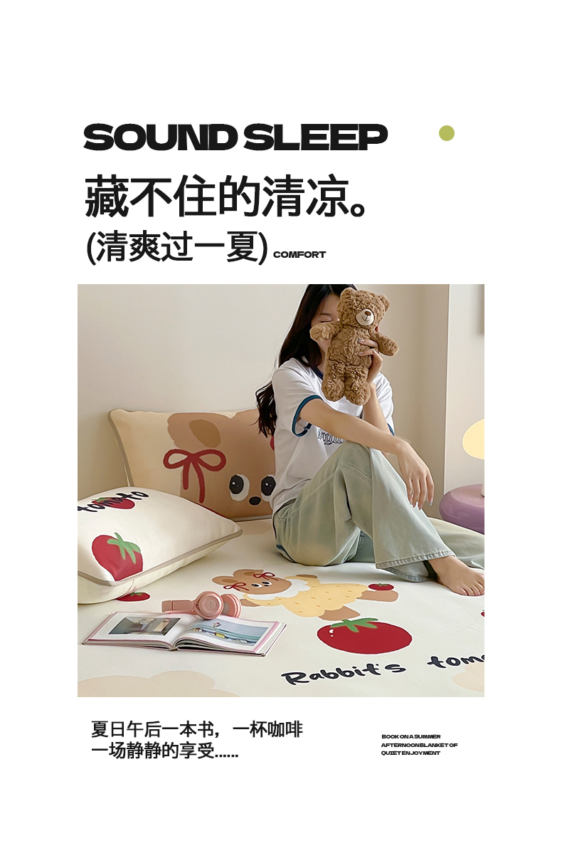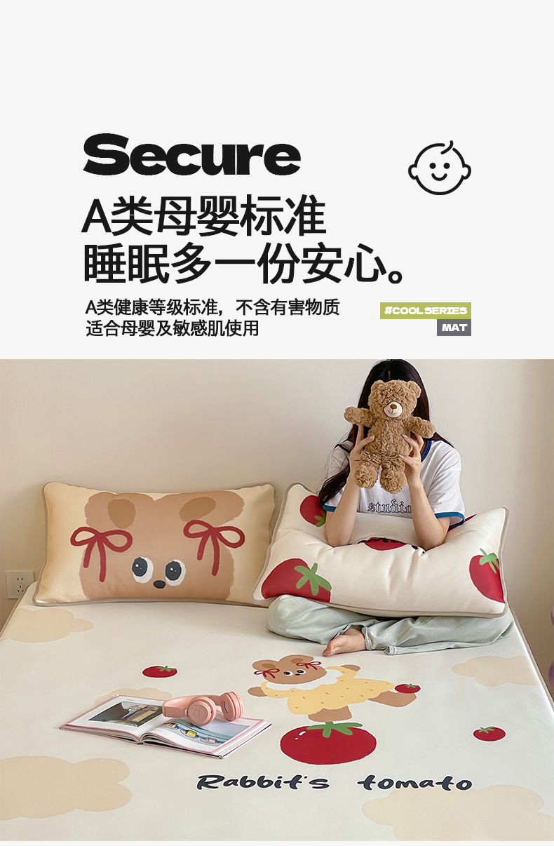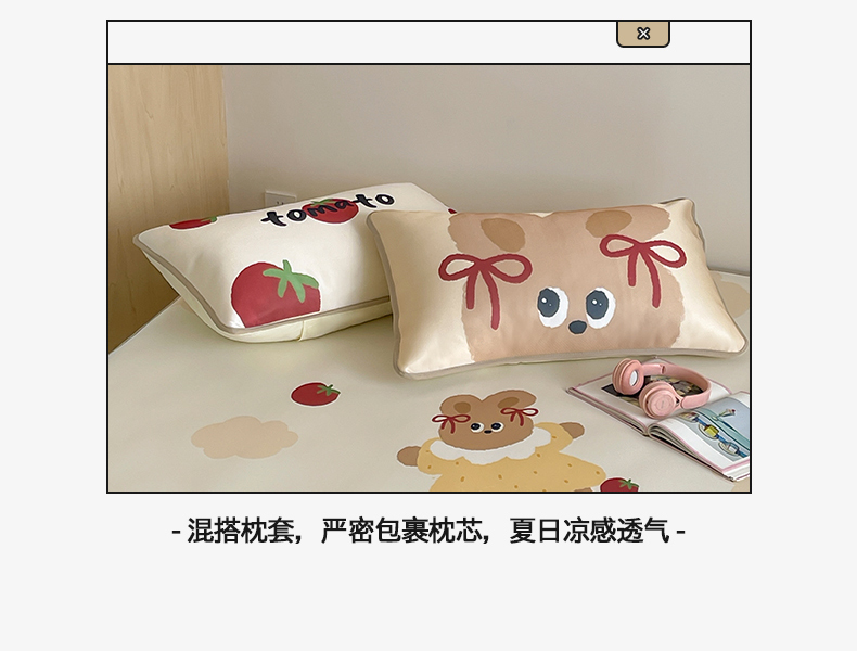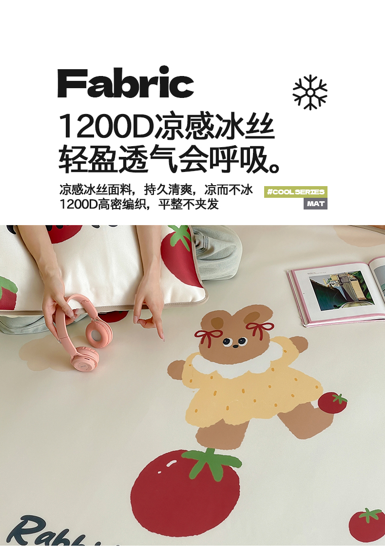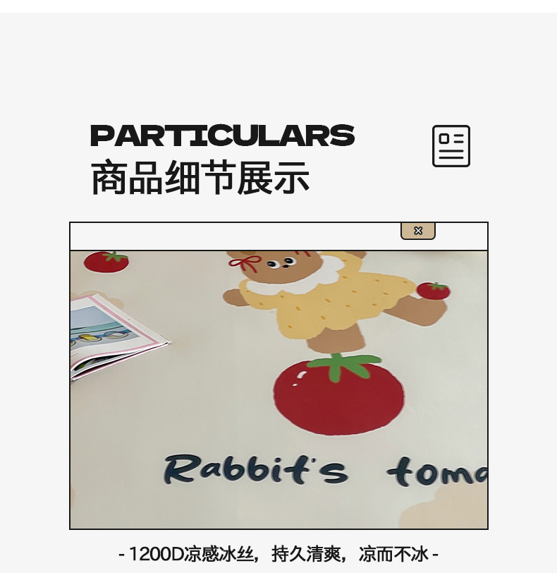 当前位置: 91家纺网 > 商品网购 > 床品套件 > 三件套 > 桃子家居 2025新款A类ins卡通数码印花1200D冰感冰丝凉席系列 冰感席混搭-番茄兔