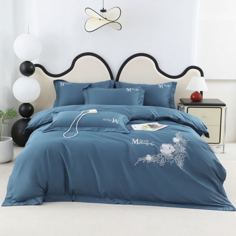 商品名称:优姿家纺2025新品高端加密全棉100支绣花宽边四件套 淡雅生活-宝石蓝