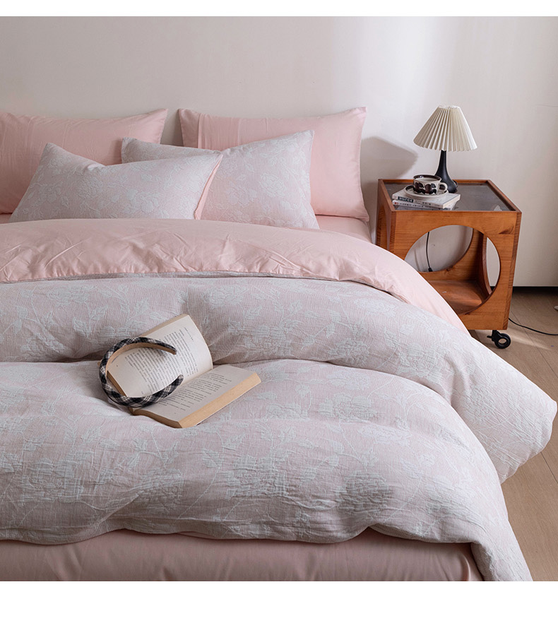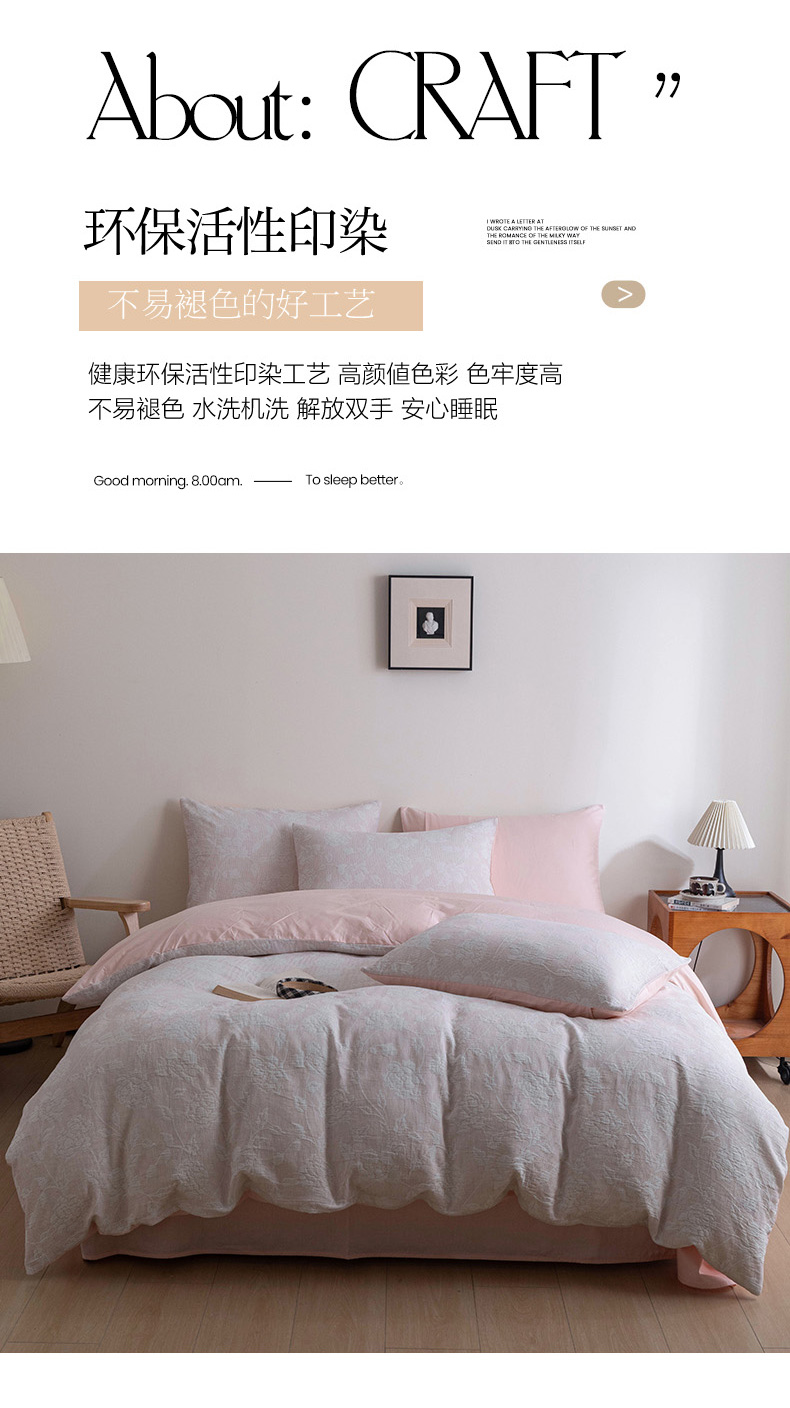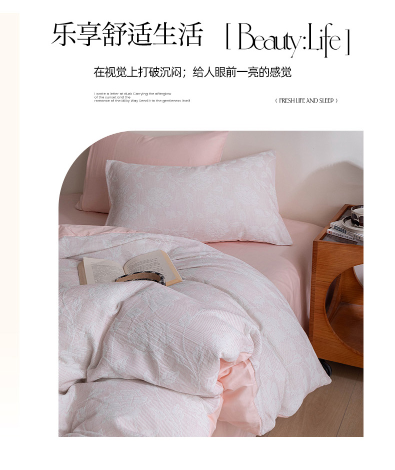 商品名称:倾慕 2025新款A类全棉多层纱玫瑰单被套系列 粉玫瑰