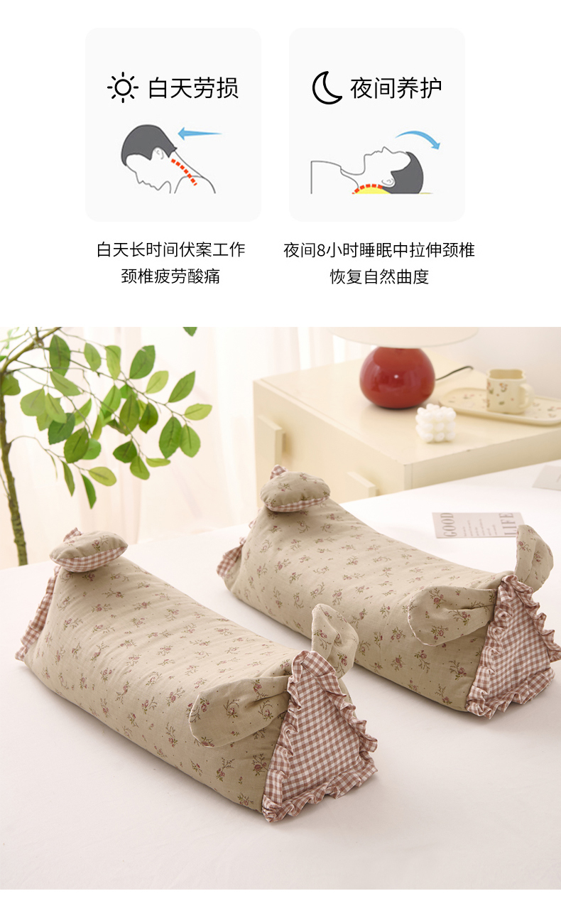 当前位置: 91家纺网 > 商品网购 > 枕头/枕芯/保健枕/颈椎枕 > 普通枕芯 > 大熊枕芯 2025新款田园风全棉印花双层纱萌趣兔子三角荞麦护颈枕枕头枕芯 田园兔三角枕-粉50*15*15cm/只