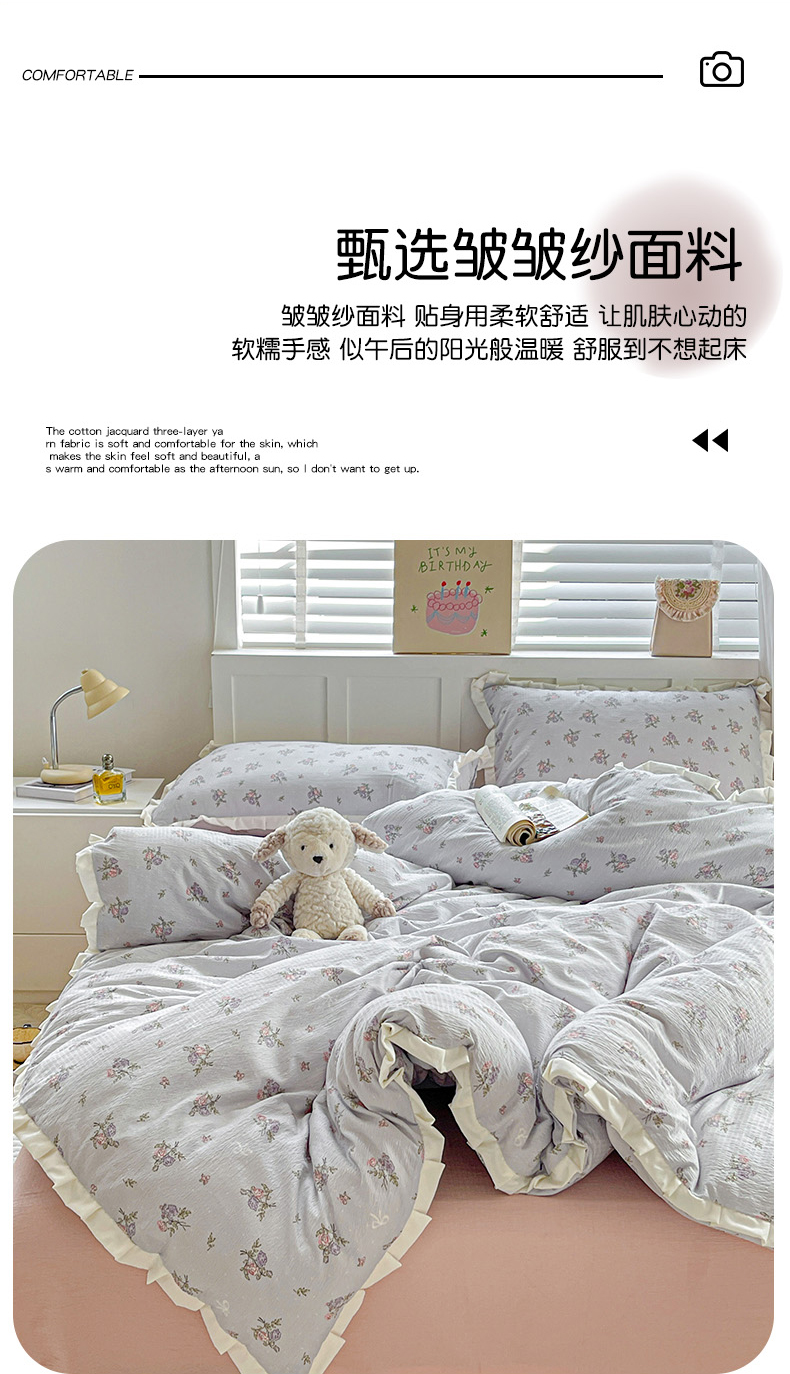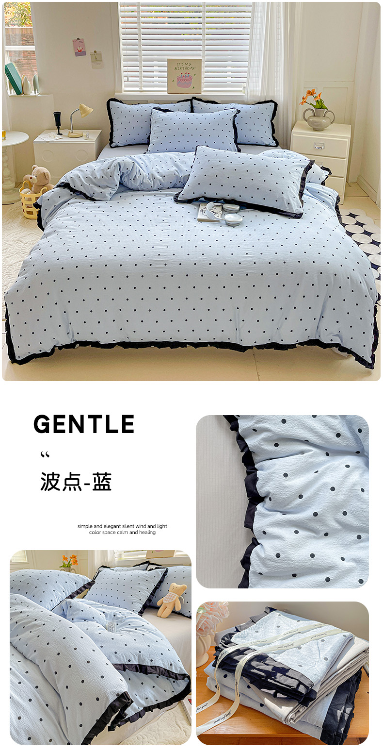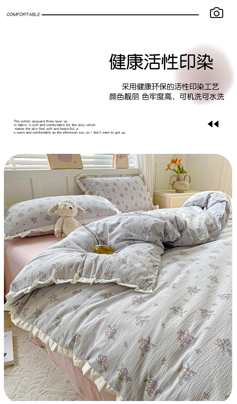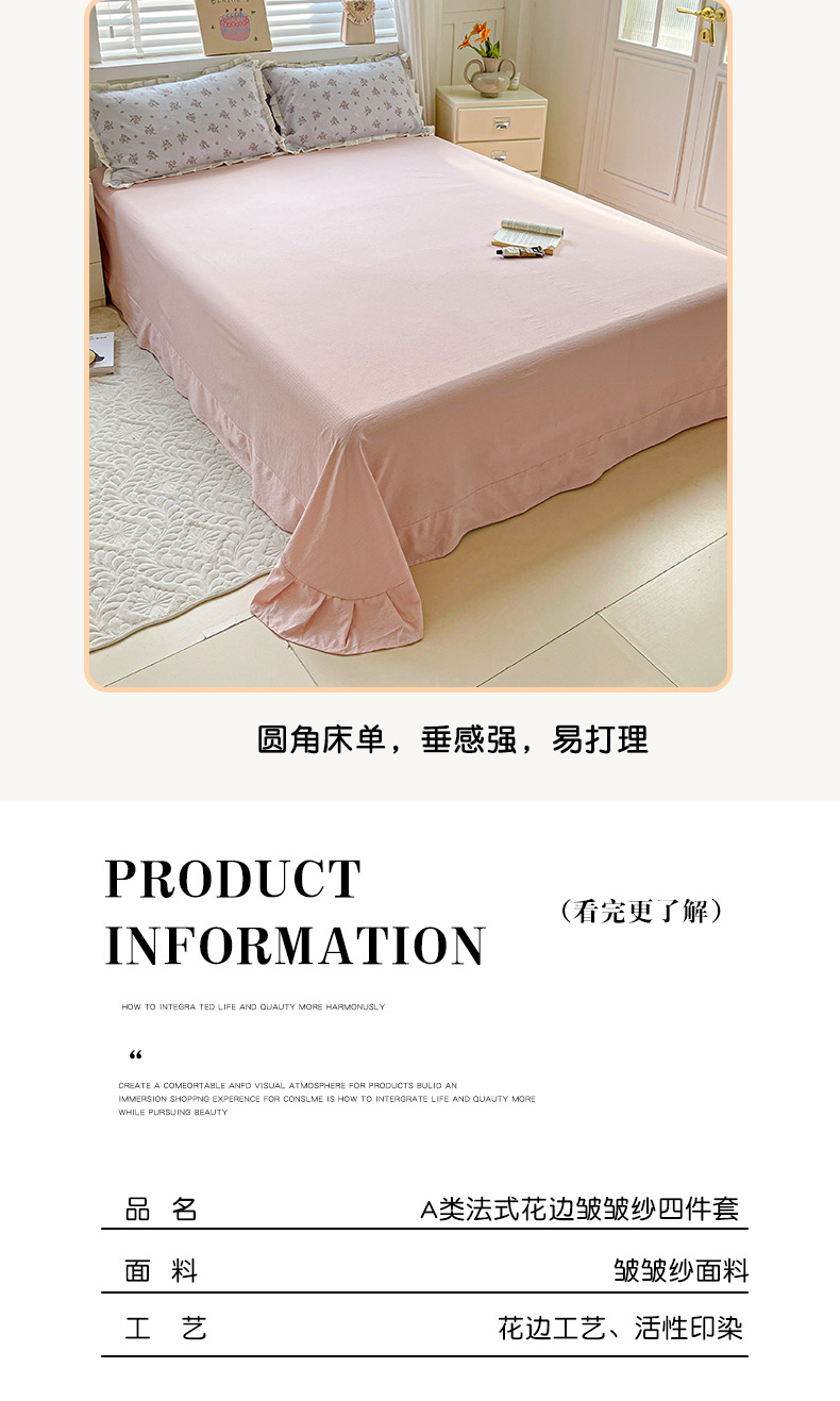 当前位置: 91家纺网 > 商品网购 > 床品套件 > 四件套 > 其它四件套 > 暖芯优选 2025新款直播热款赫本风花边款针织法式印花吊边床单三件套床笠四件套 蓝铃