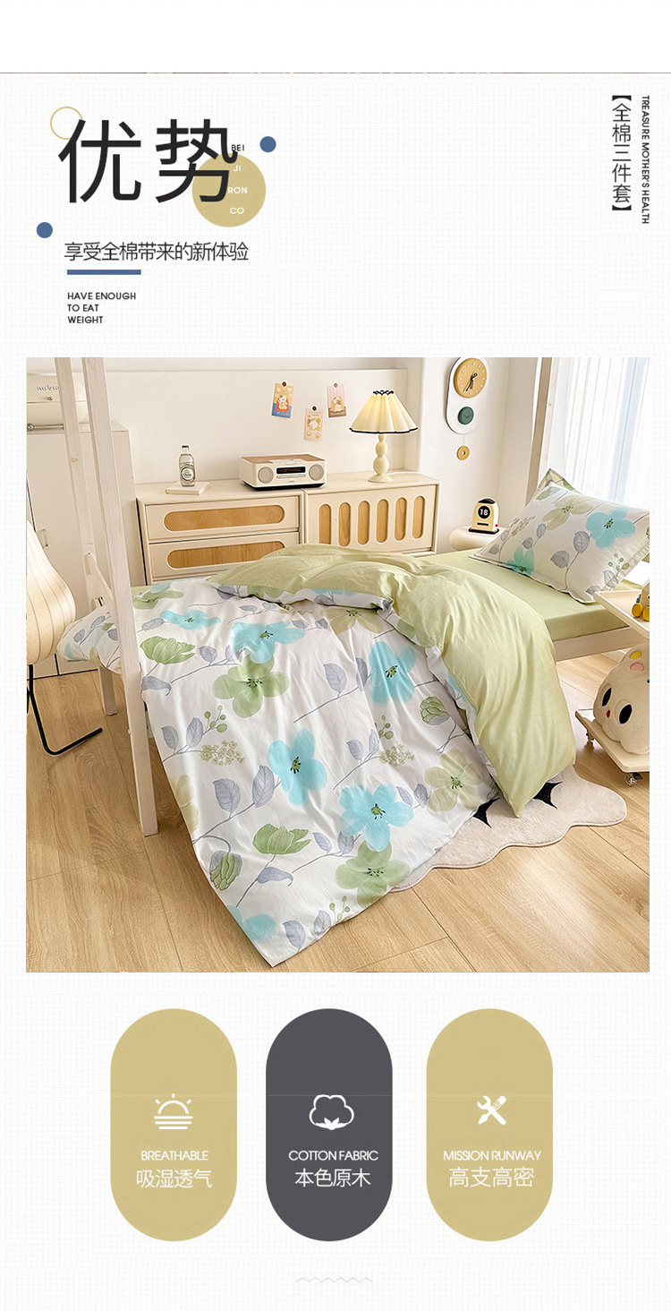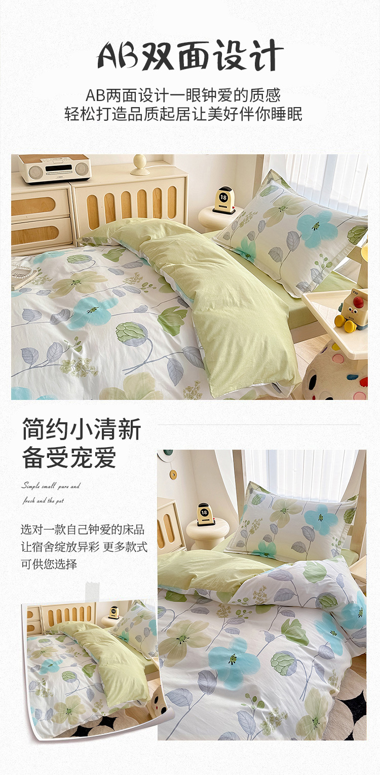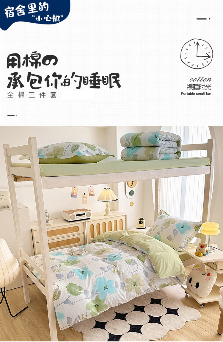 商品名称:卡普 2025新款爆款加厚卡通小清新全棉纯棉学生宿舍三件套床笠隔天可拿花汀叶妤