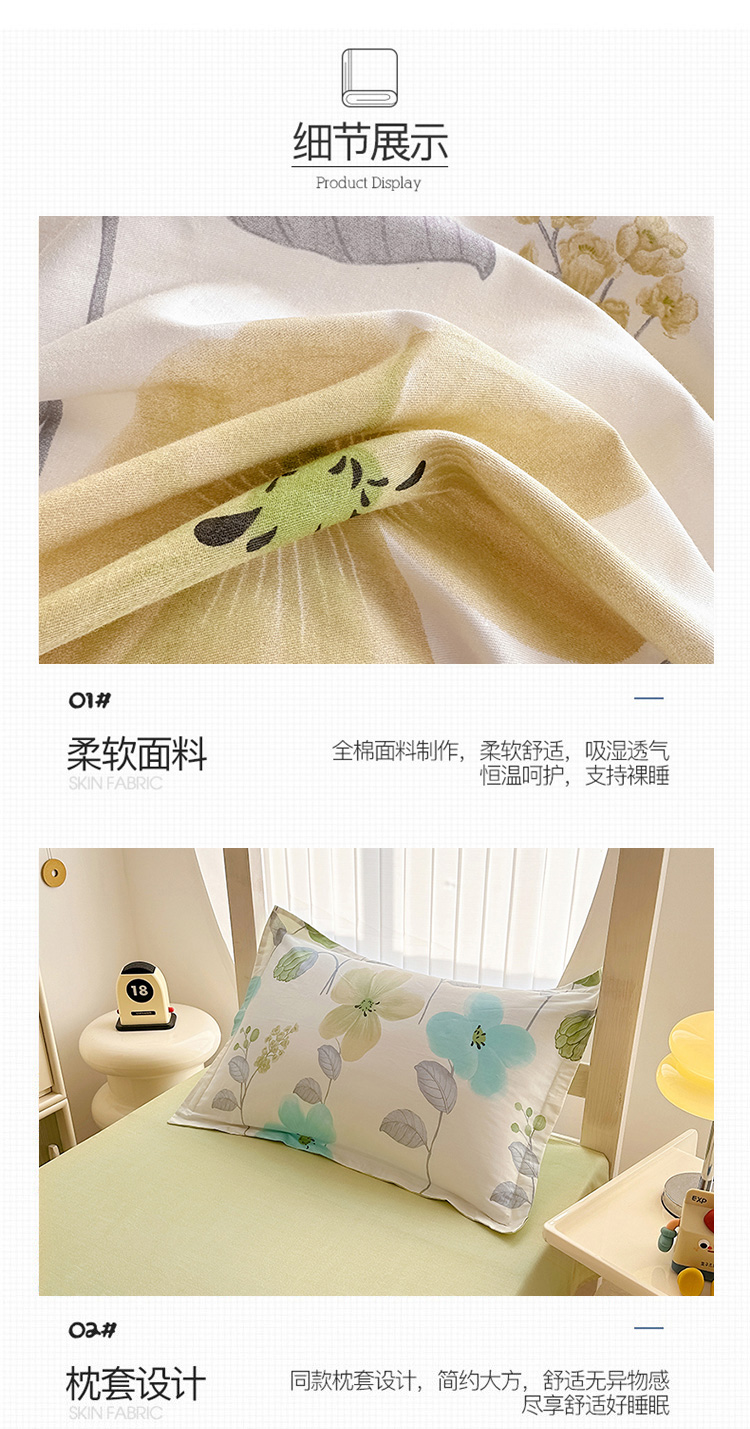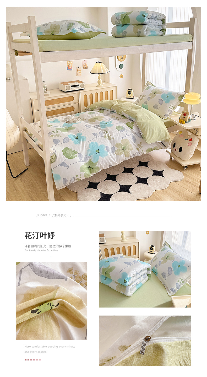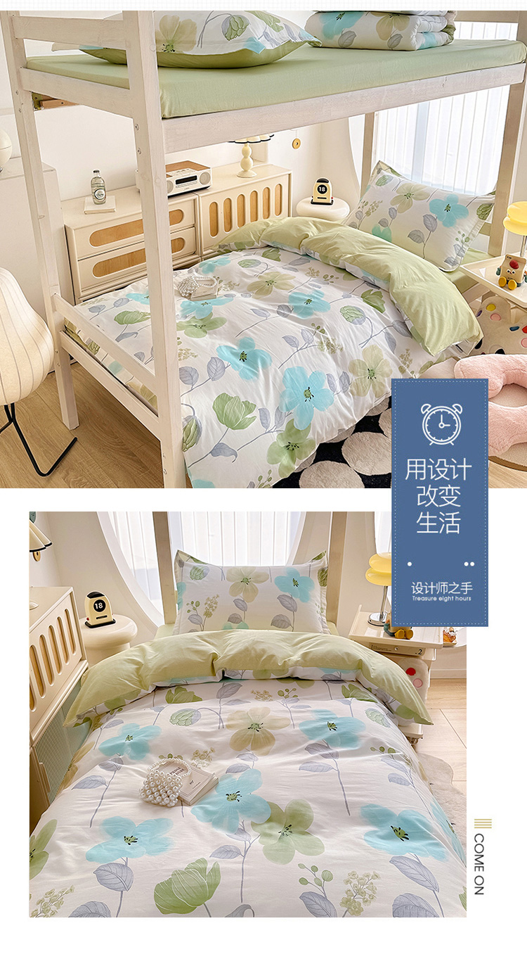 商品名称:卡普 2025新款爆款加厚卡通小清新全棉纯棉学生宿舍三件套床笠隔天可拿花汀叶妤