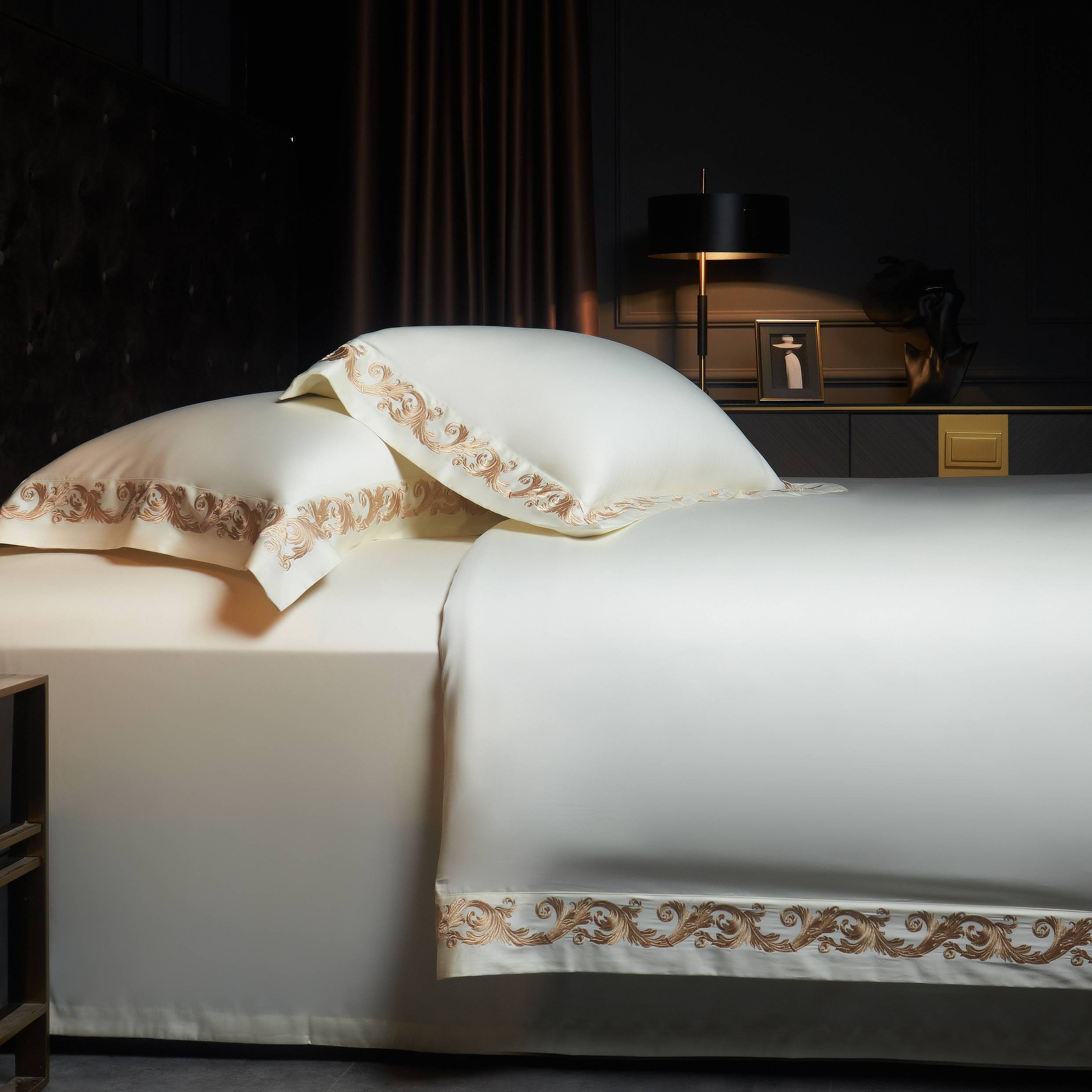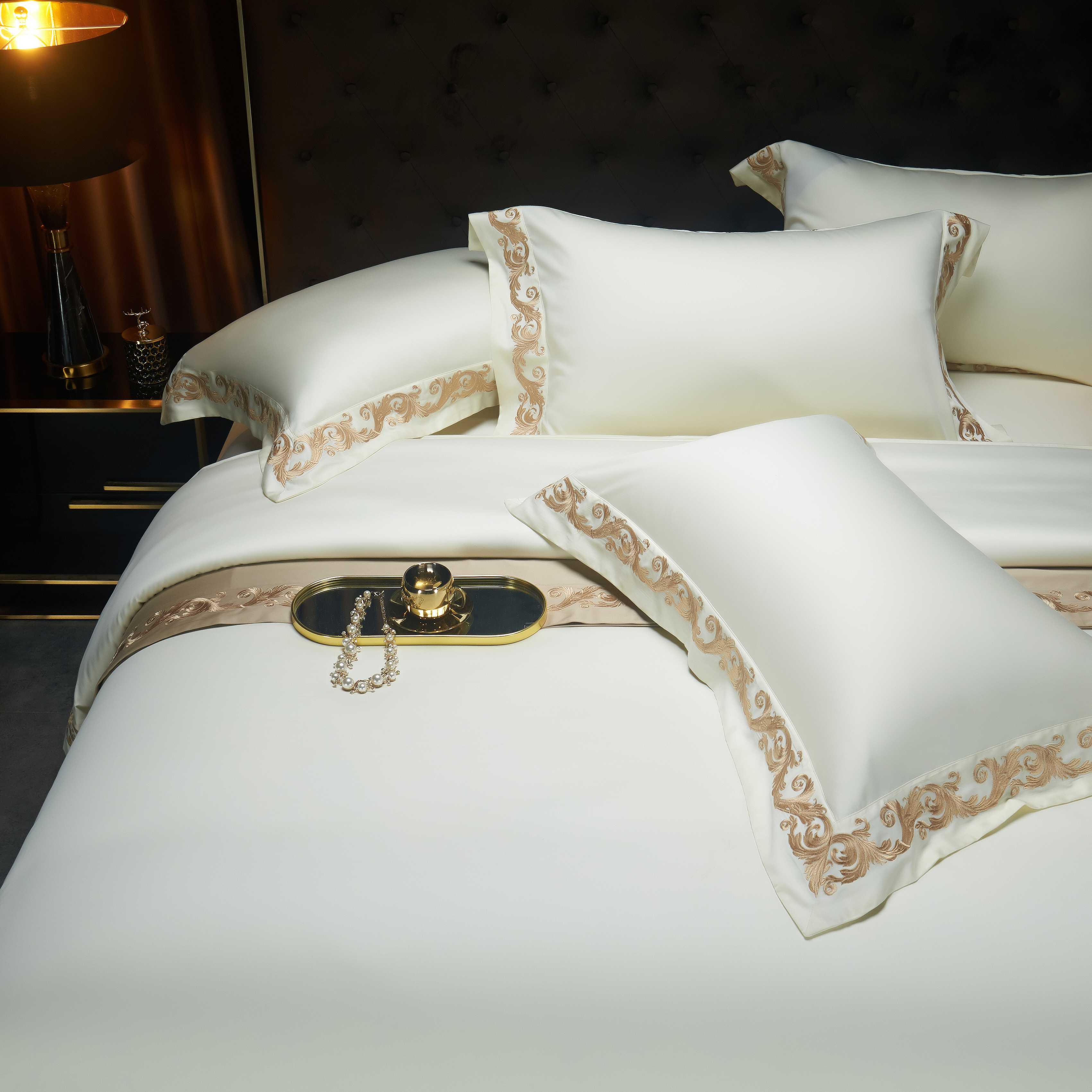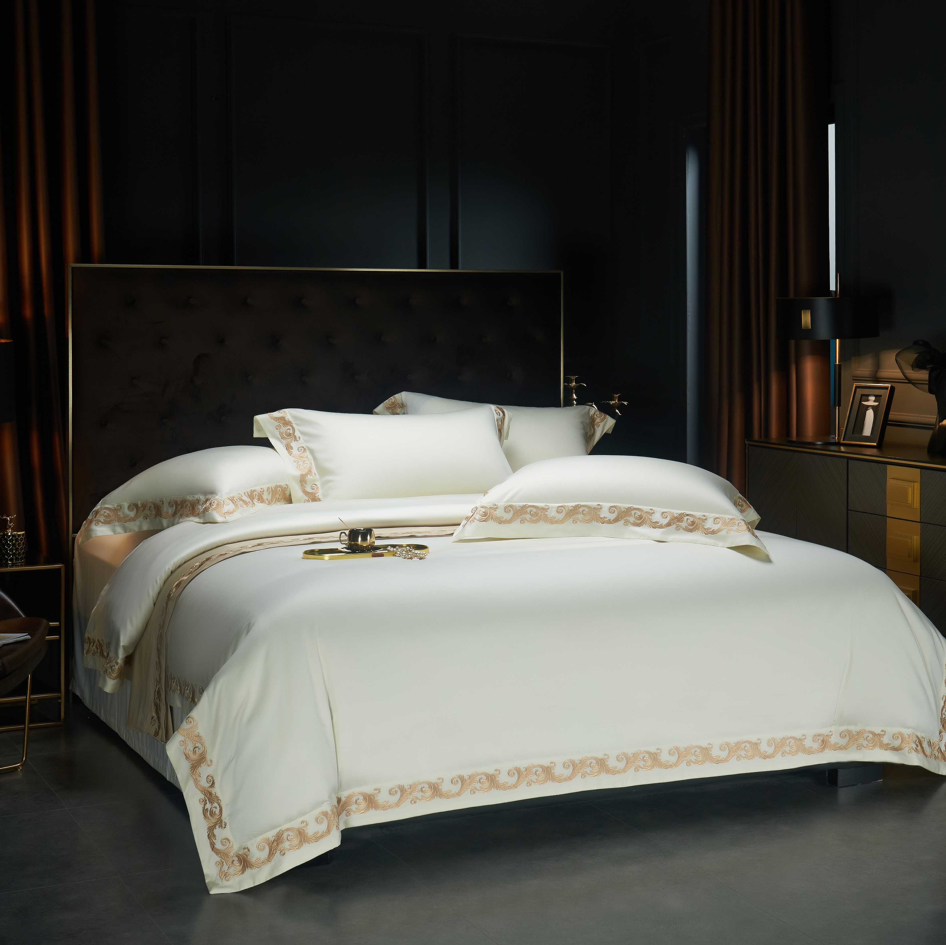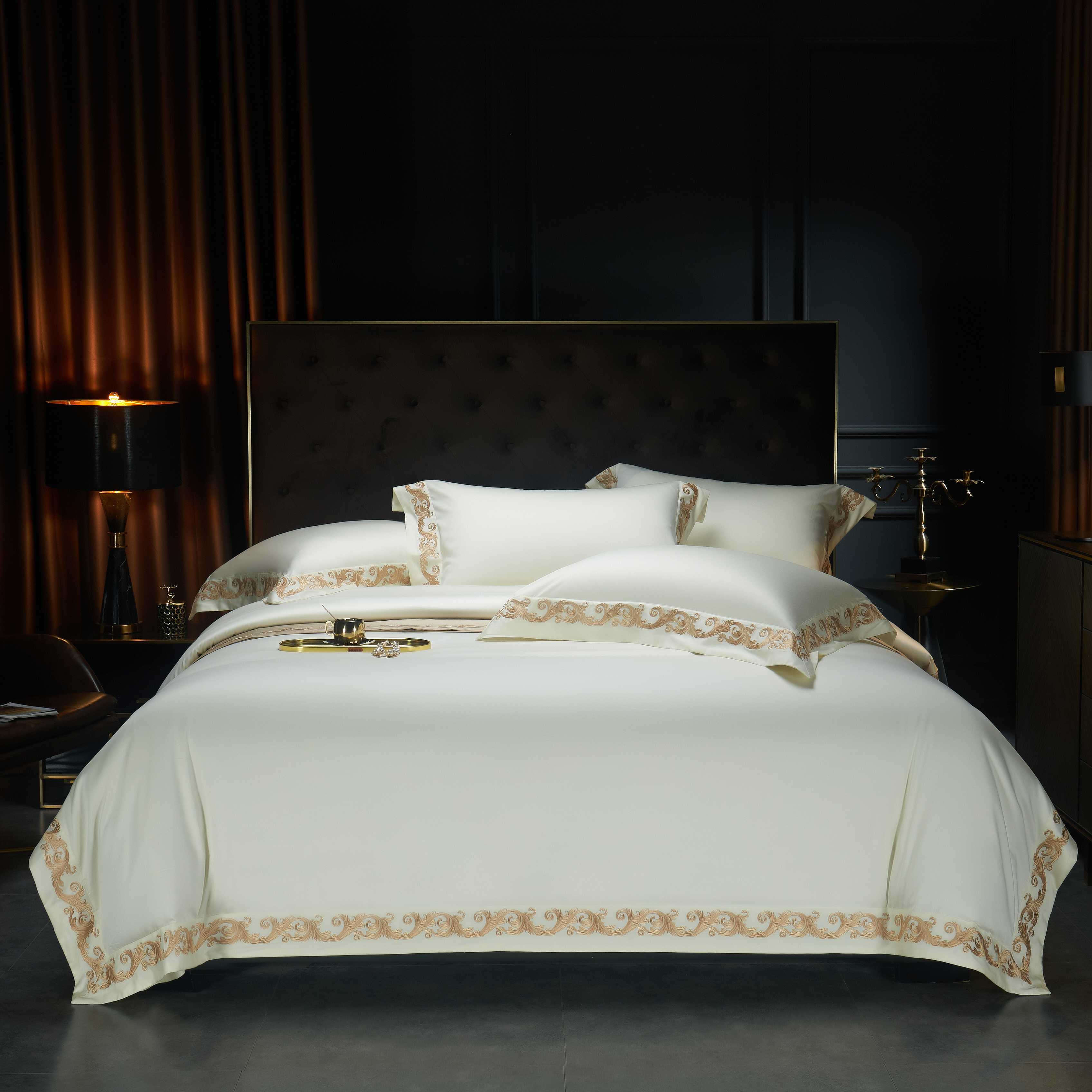缔缦 2025新款高端定织面料S140长绒棉精梳棉重磅刺绣四件套罗莎系列 贵族白