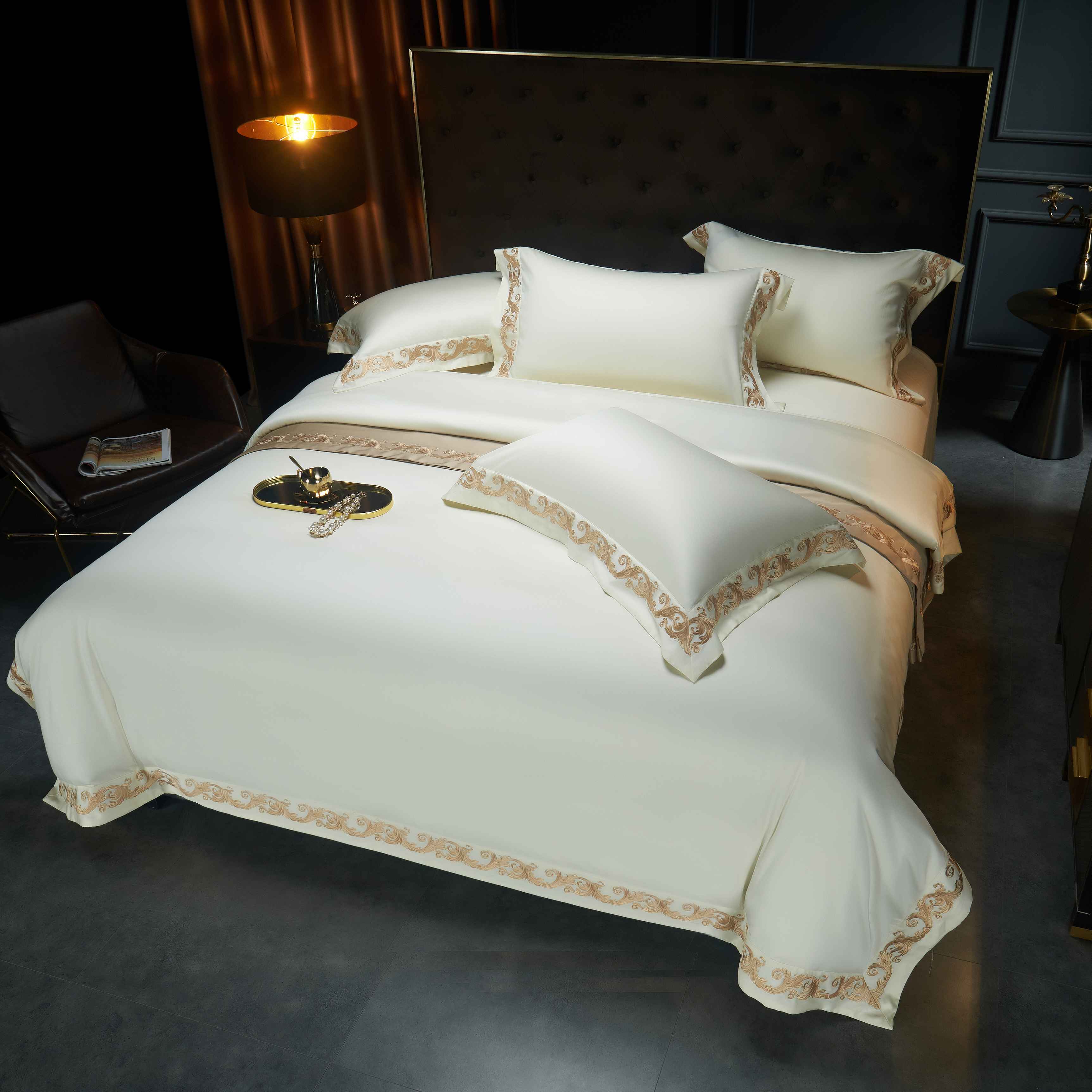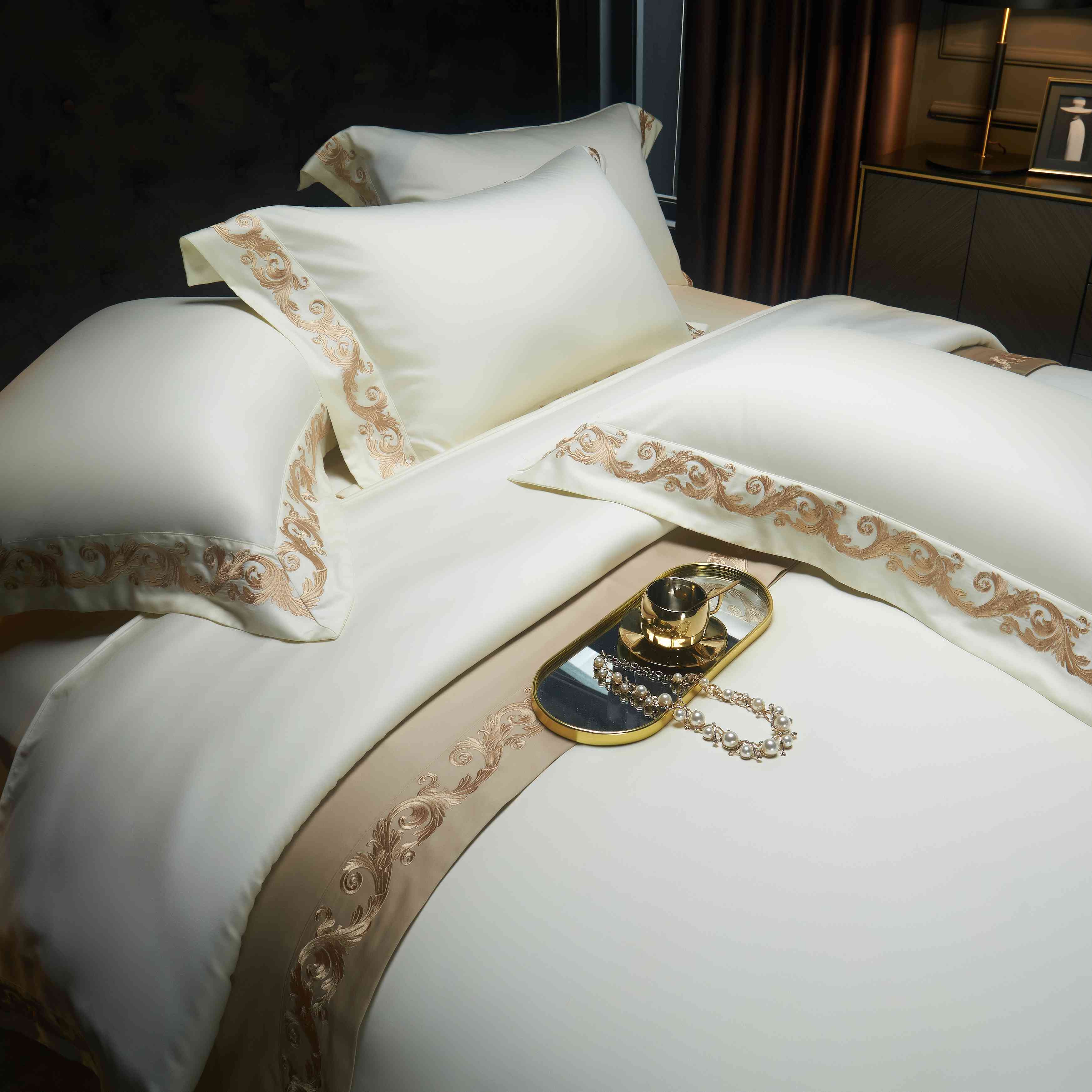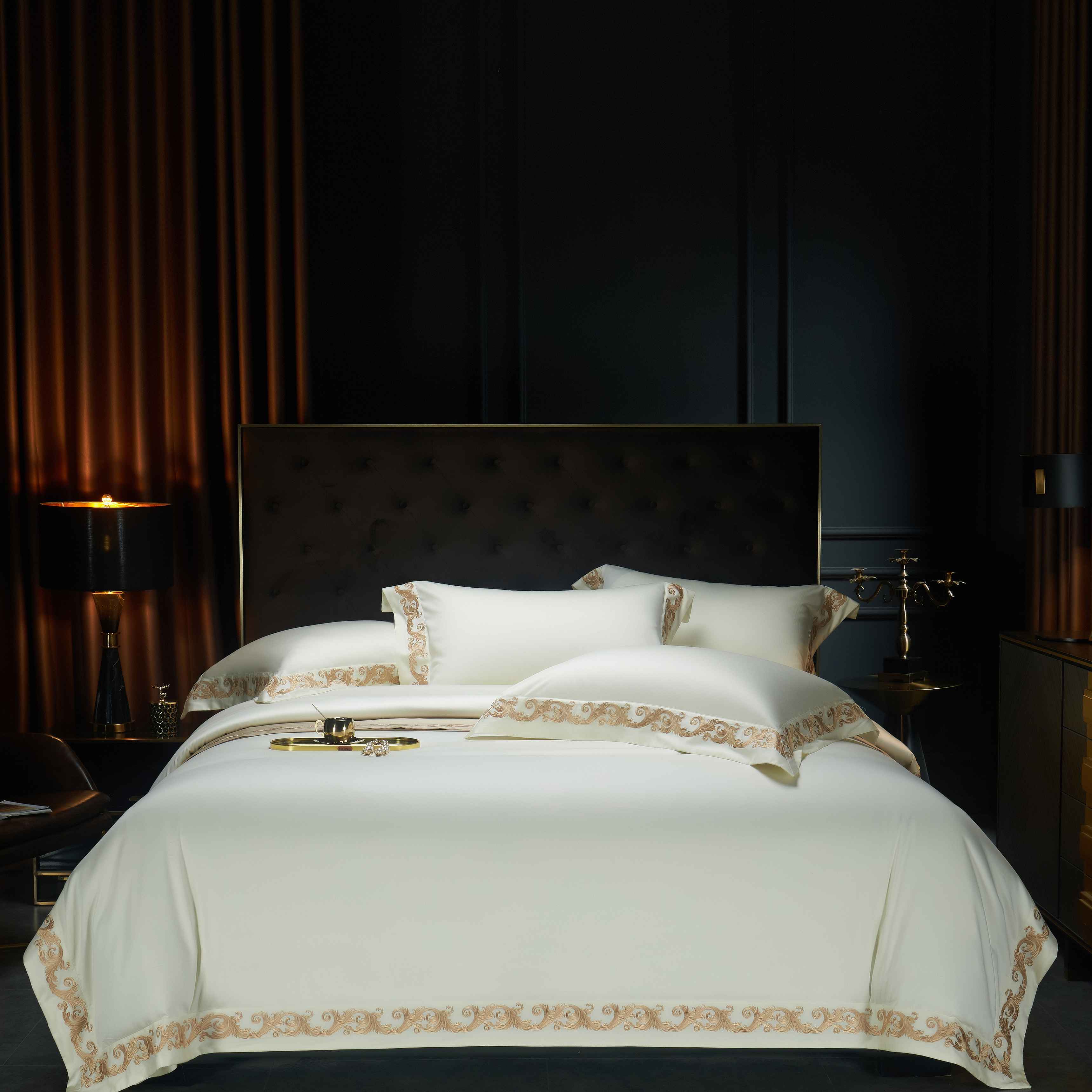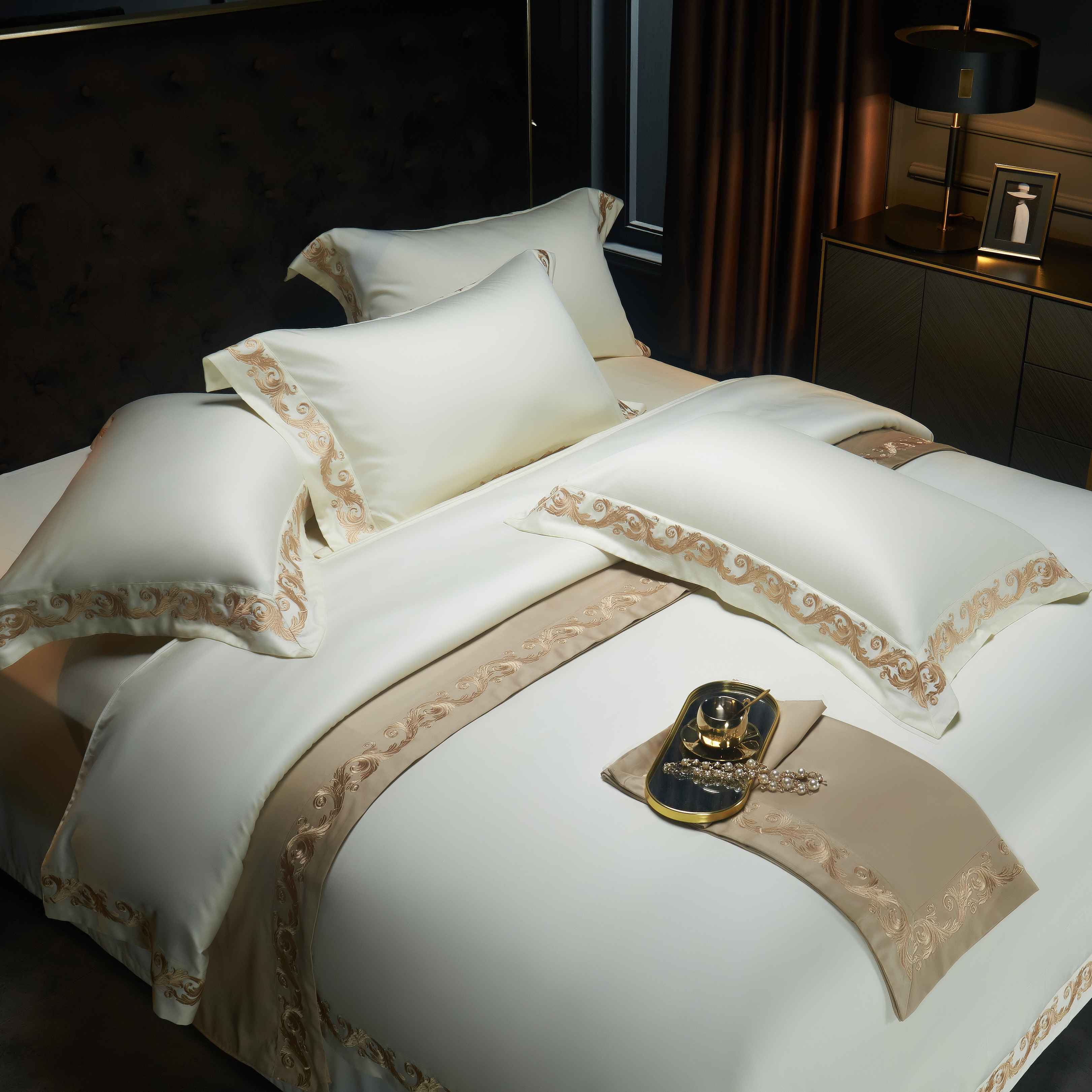 缔缦 2025新款高端定织面料S140长绒棉精梳棉重磅刺绣四件套罗莎系列 贵族白