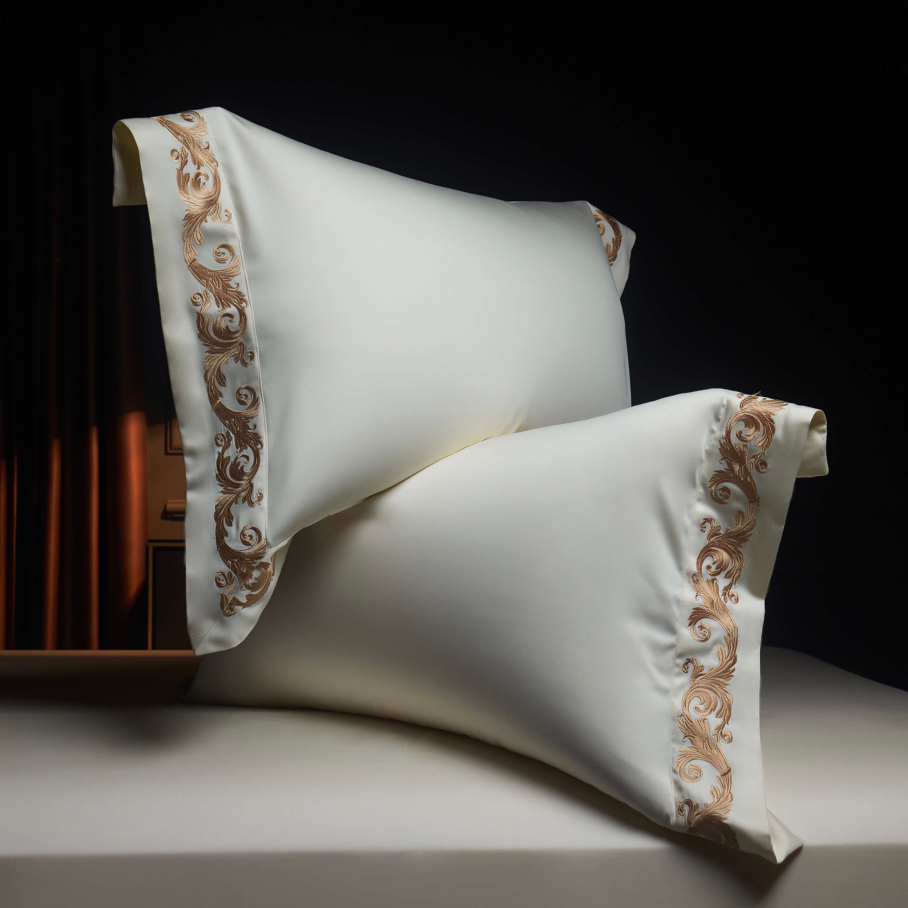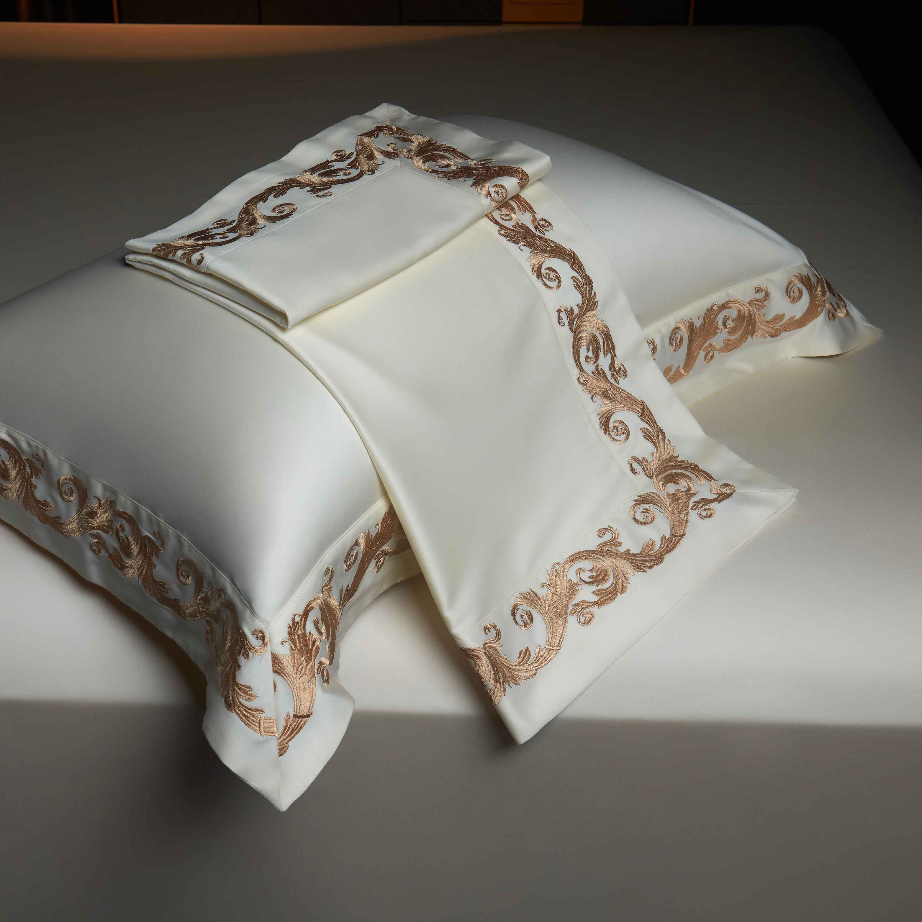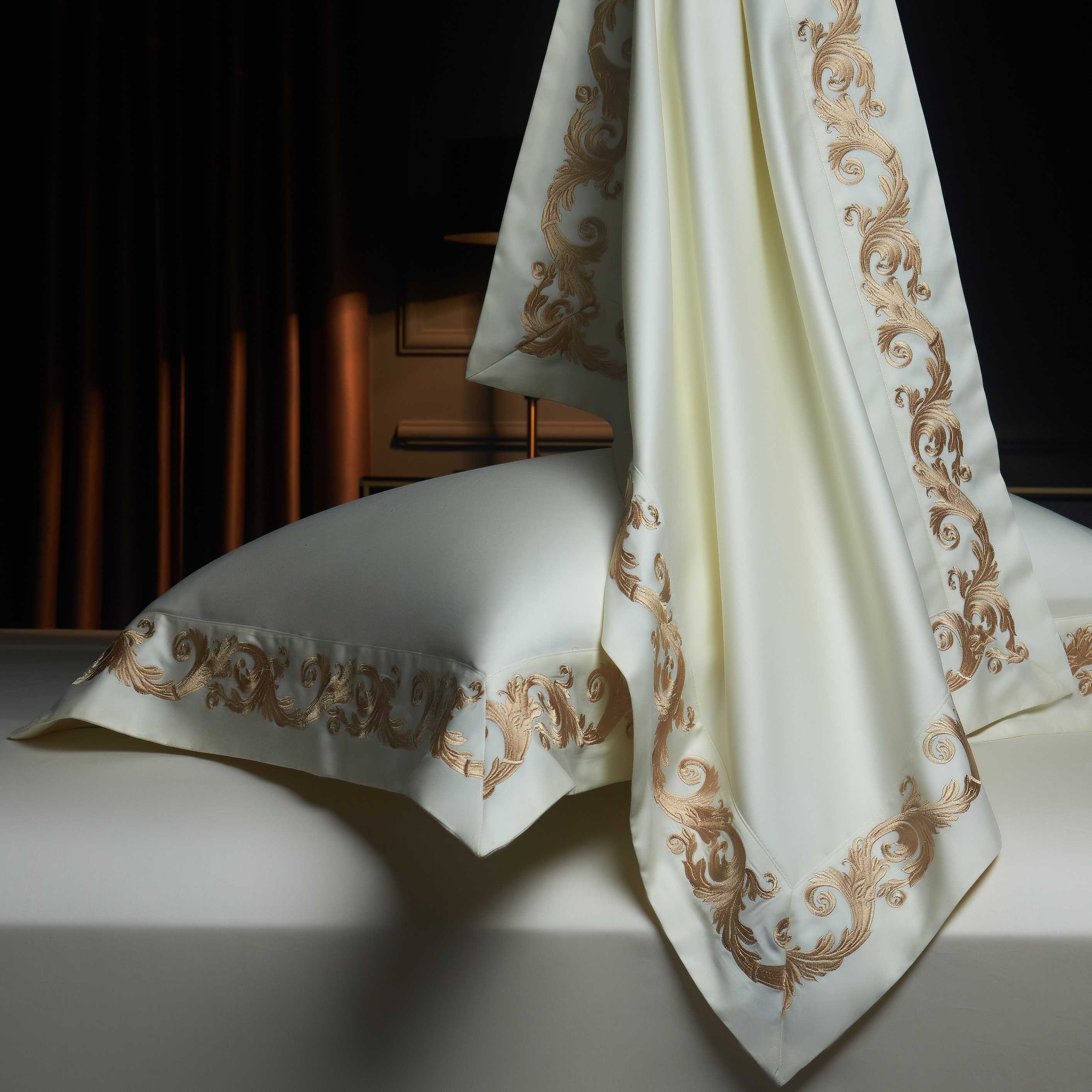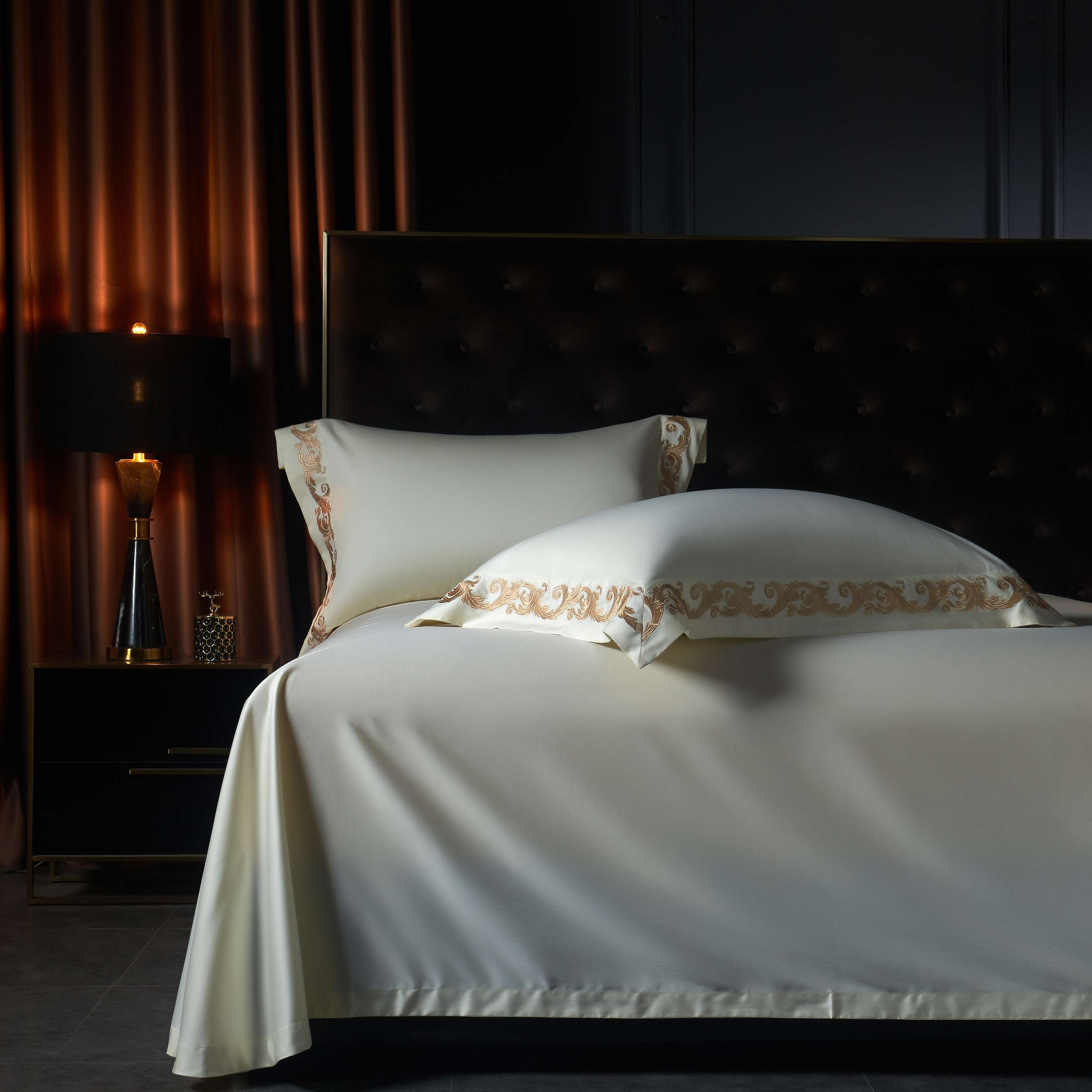 缔缦 2025新款高端定织面料S140长绒棉精梳棉重磅刺绣四件套罗莎系列 贵族白