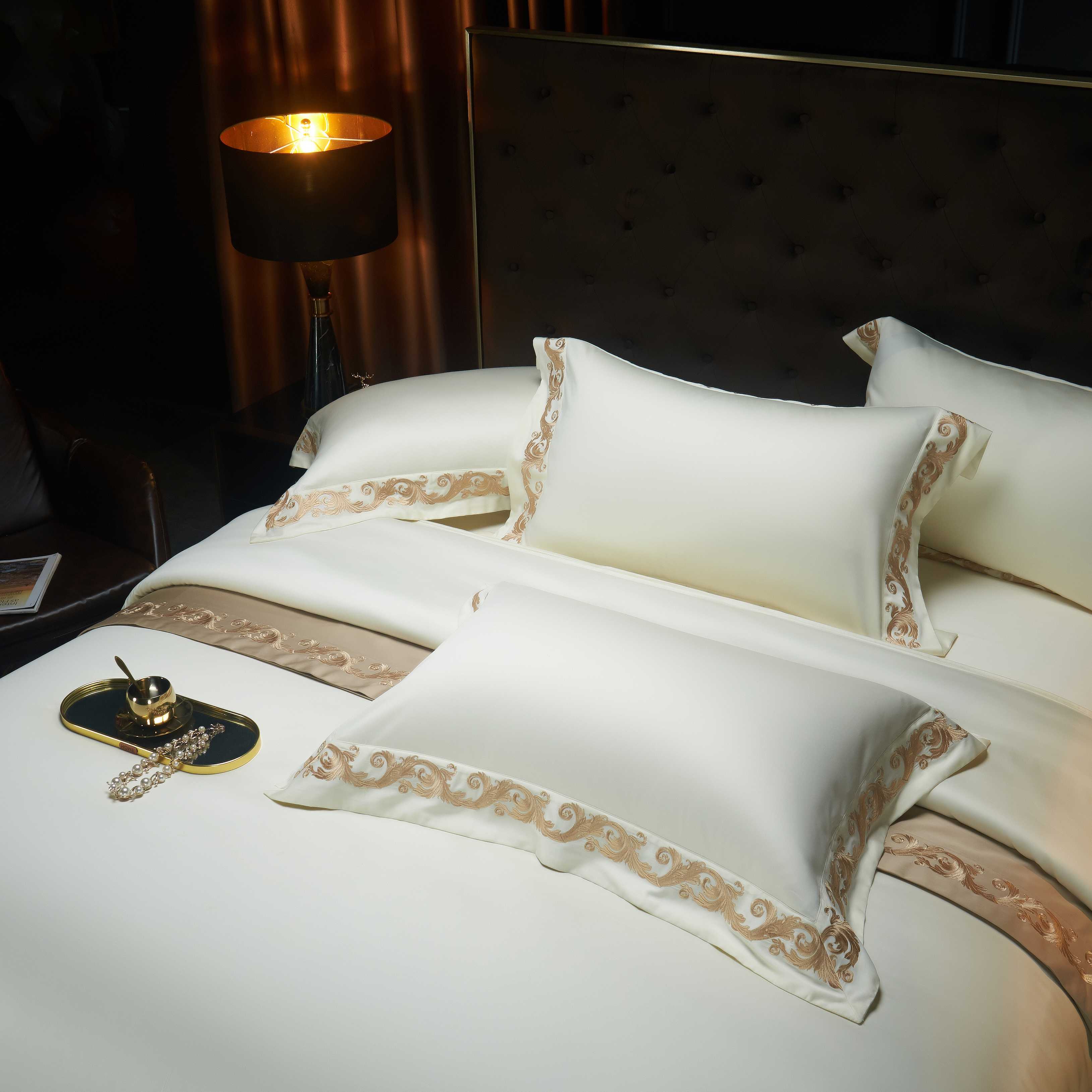 (总)缔缦 2024新款定织新布种S140系列刺绣拼角工艺四件套-威廉皇室,威廉皇室 贵族白,威廉皇室 酒红,威廉皇室 深灰