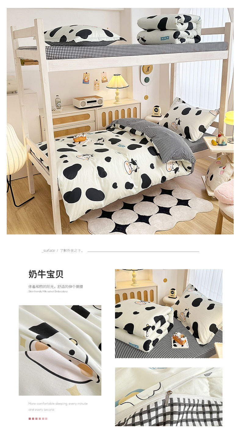 商品名称:卡普 2025新款爆款加厚卡通小清新全棉纯棉学生宿舍三件套床笠隔天可拿奶牛宝贝