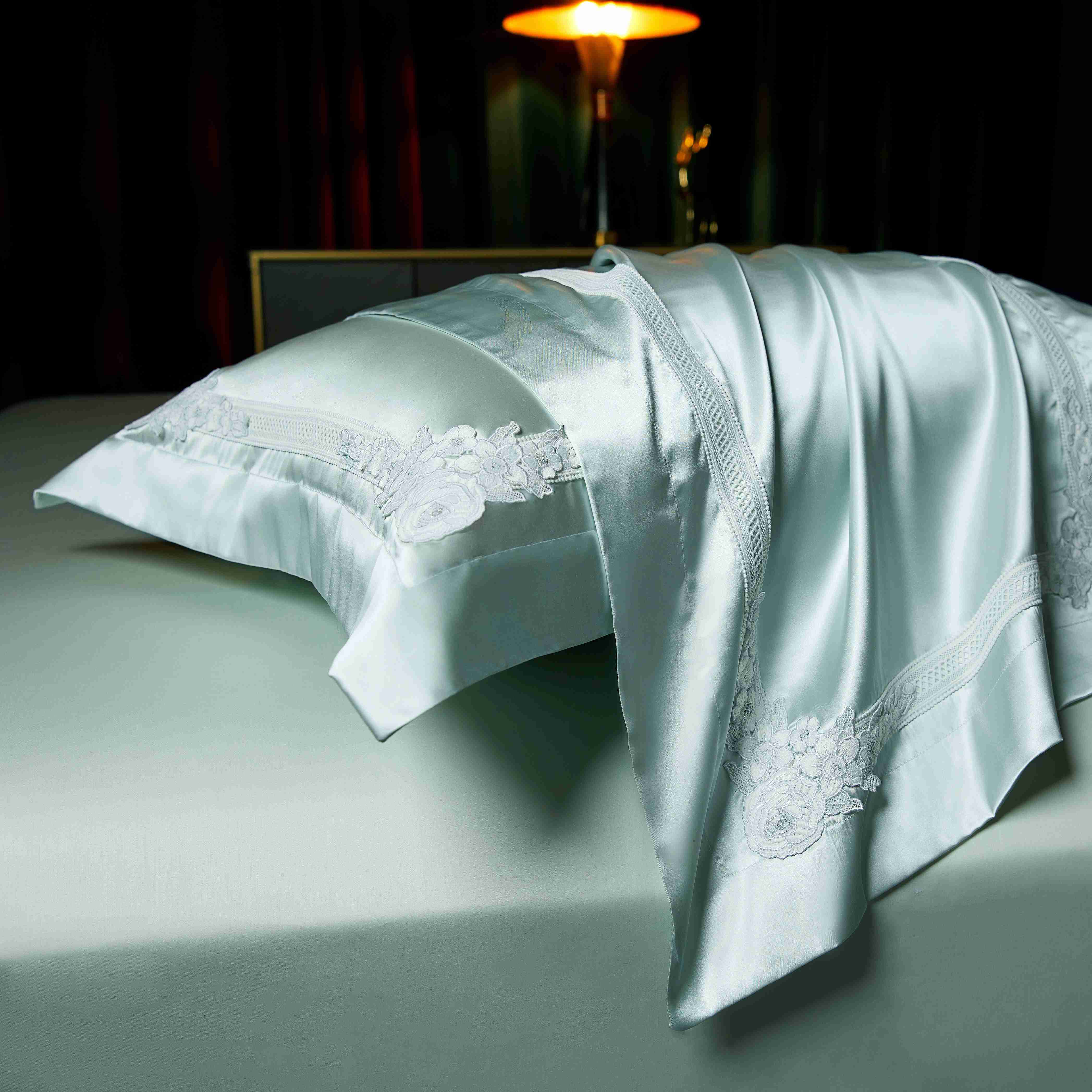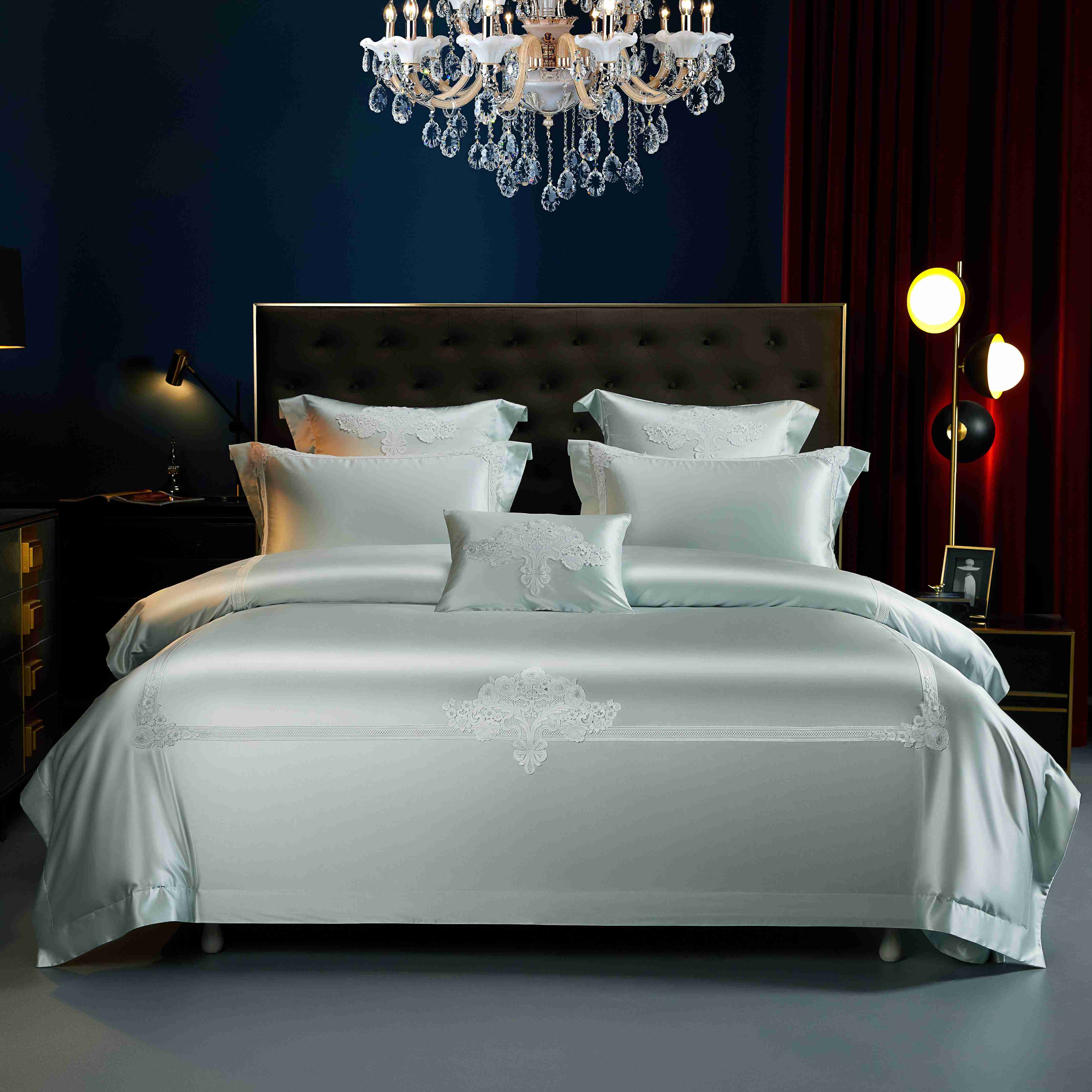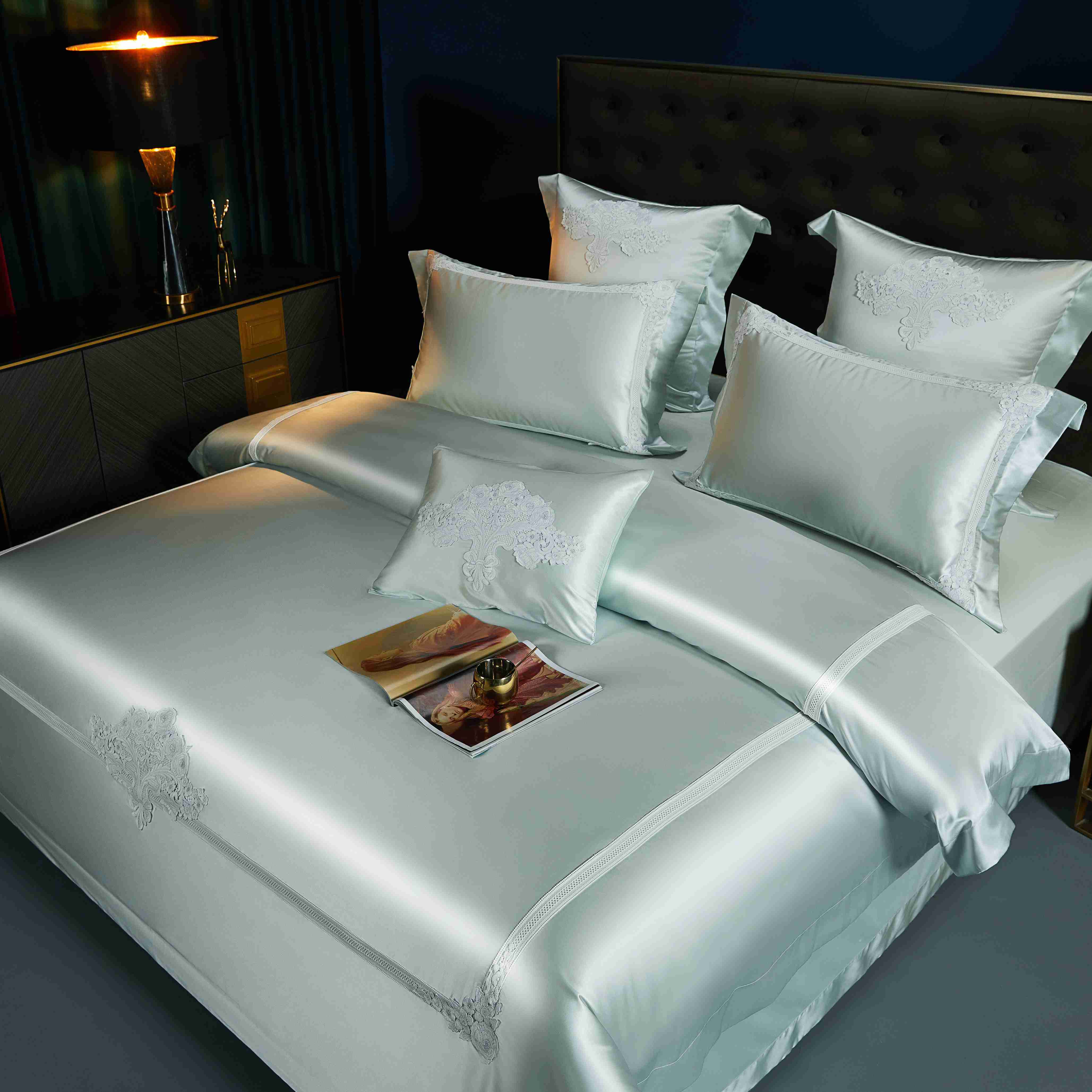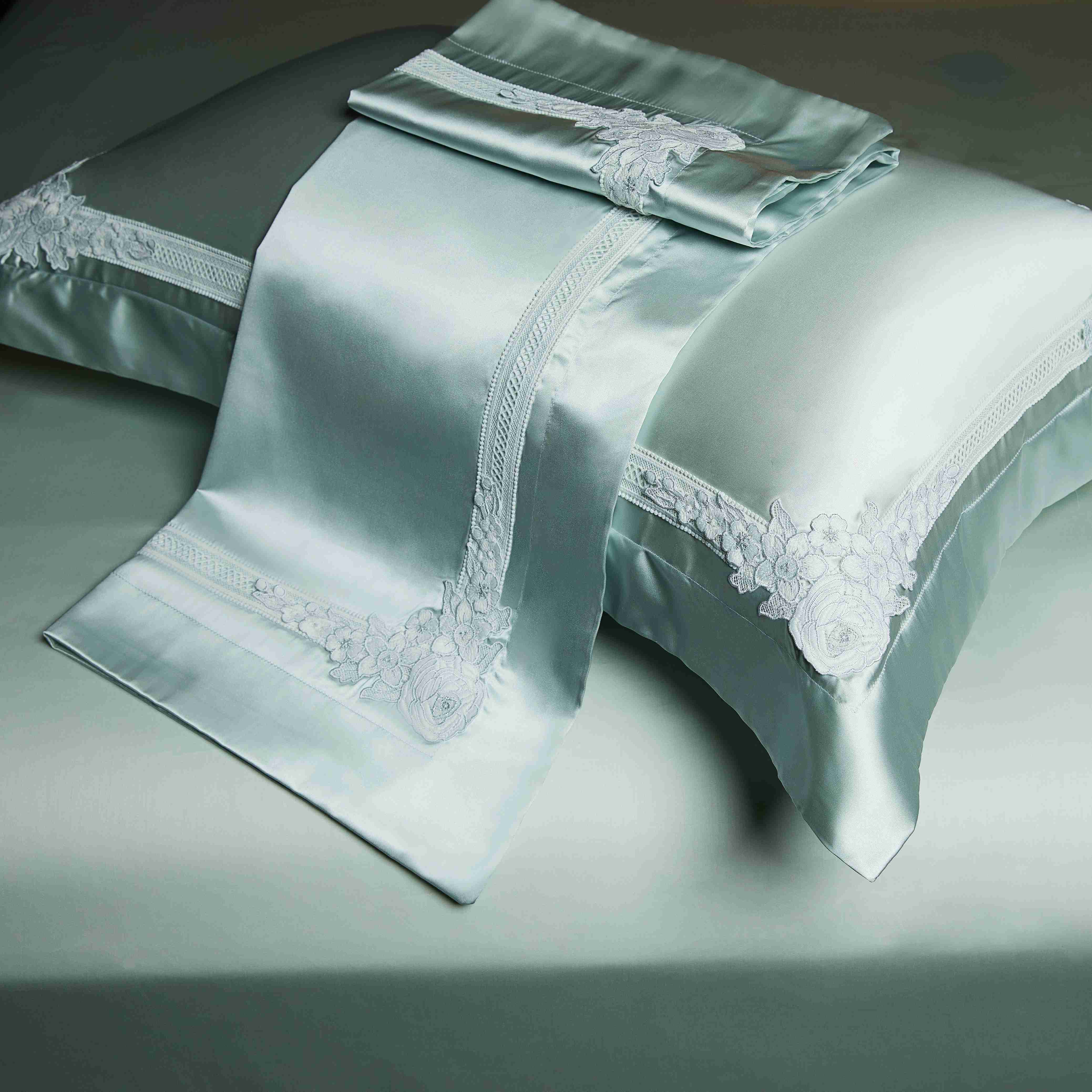 当前位置: 91家纺网 > 商品网购 > 床品套件 > 四件套 > 长绒棉四件套 > 缔缦 2025新款高端居家轻奢系列AB版真丝棉长绒棉芬尼细语 雅绿四件套