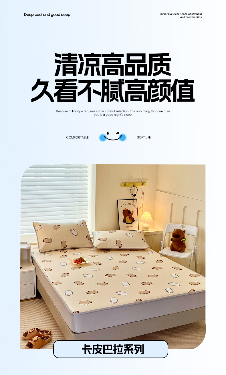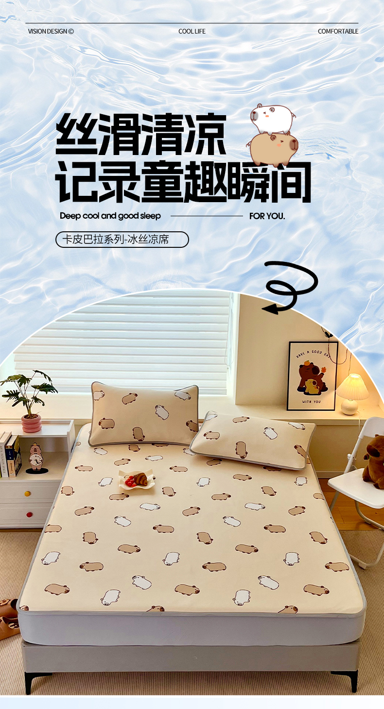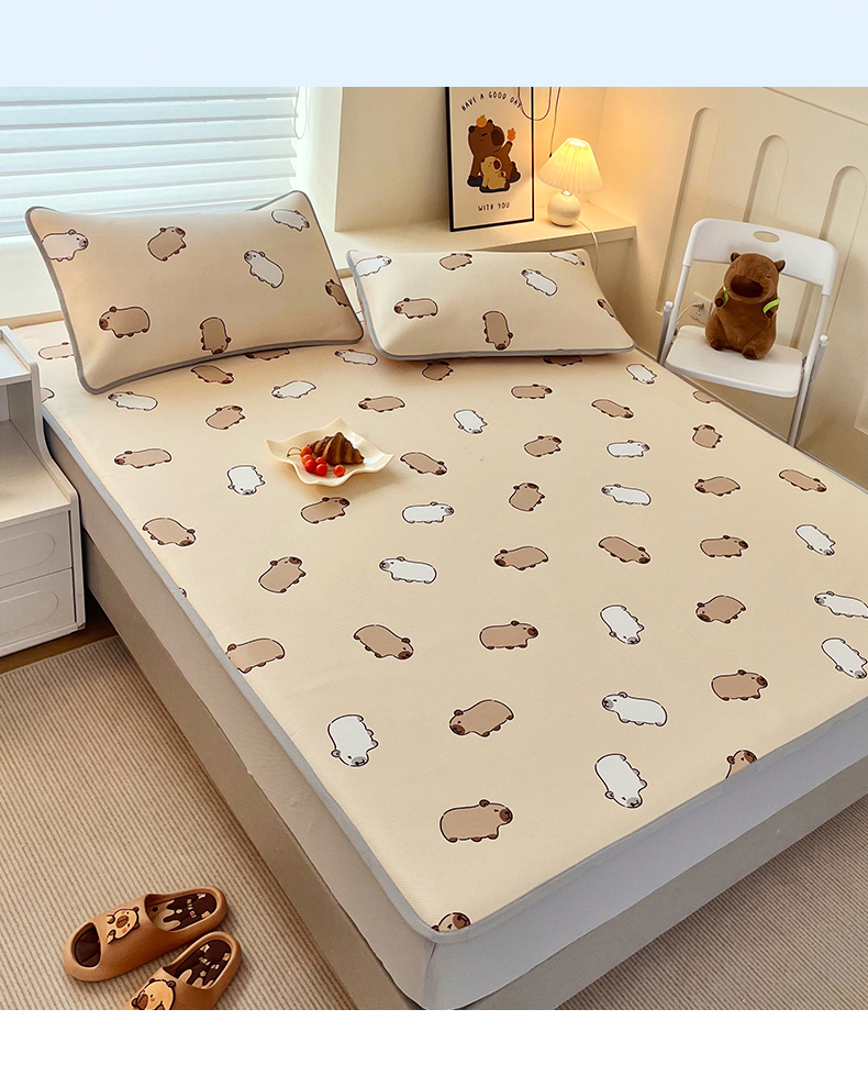 • 91家纺网 家纺一手货源 找家纺 蘭菲家纺 2025新款凉感丝卡皮巴拉凉席 小奶豚