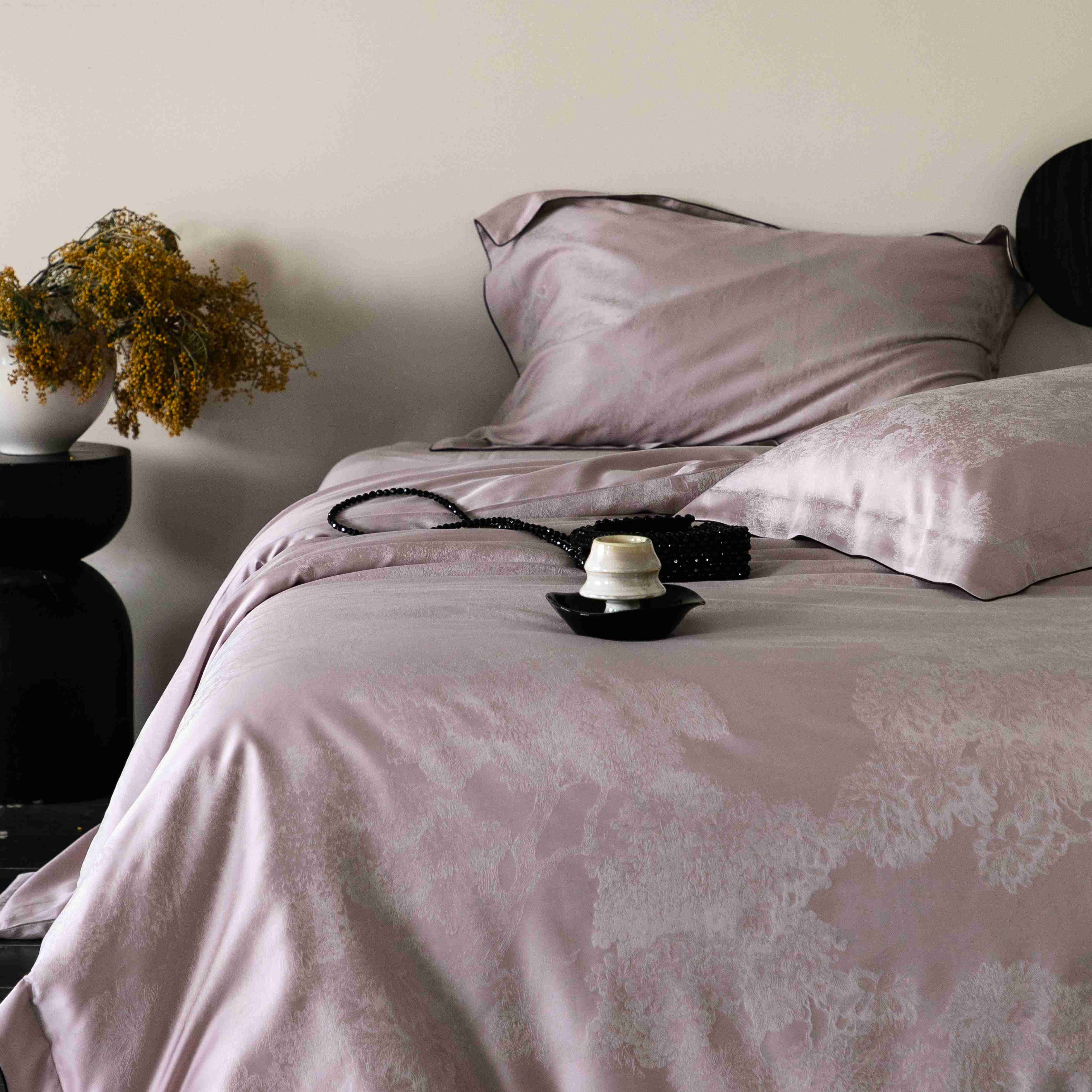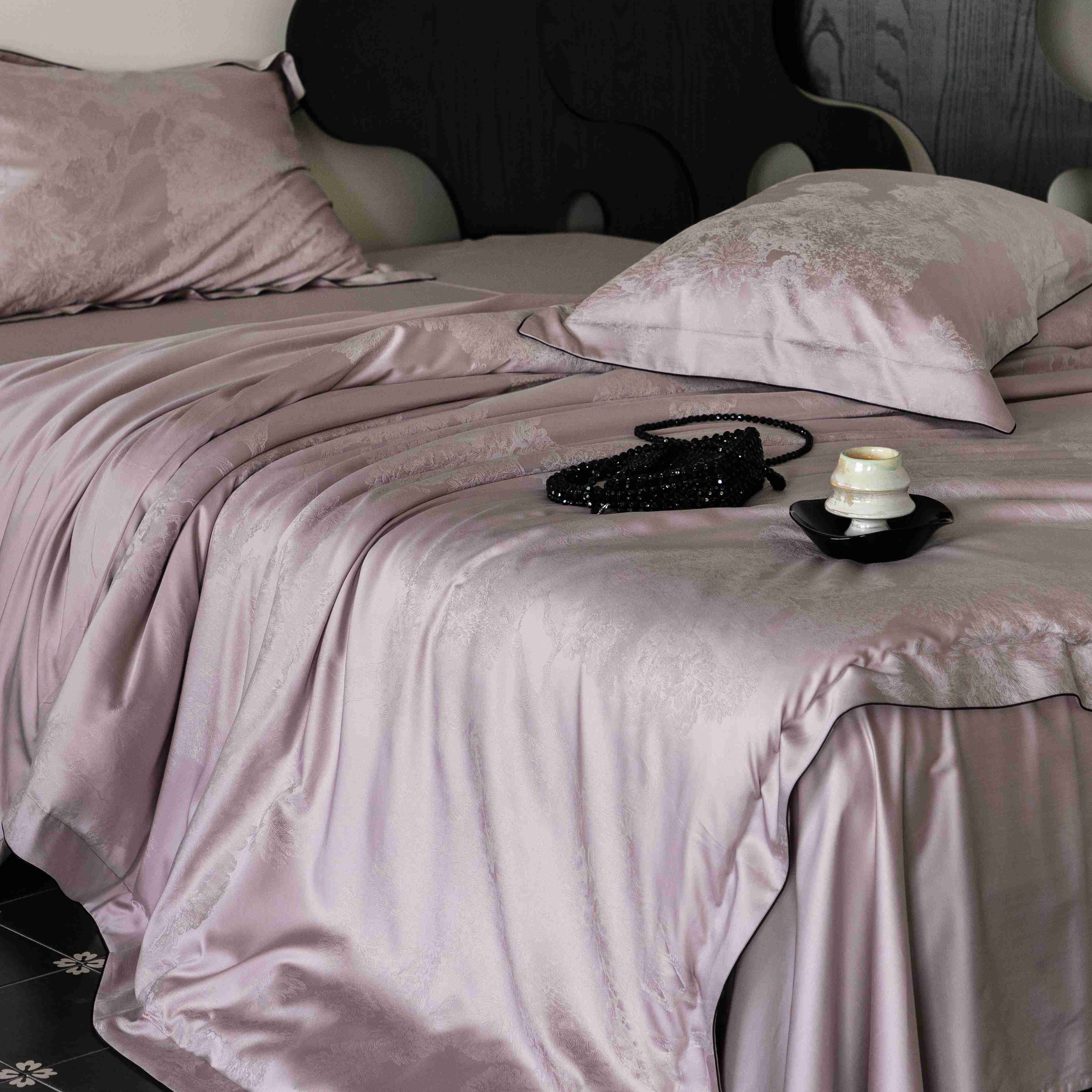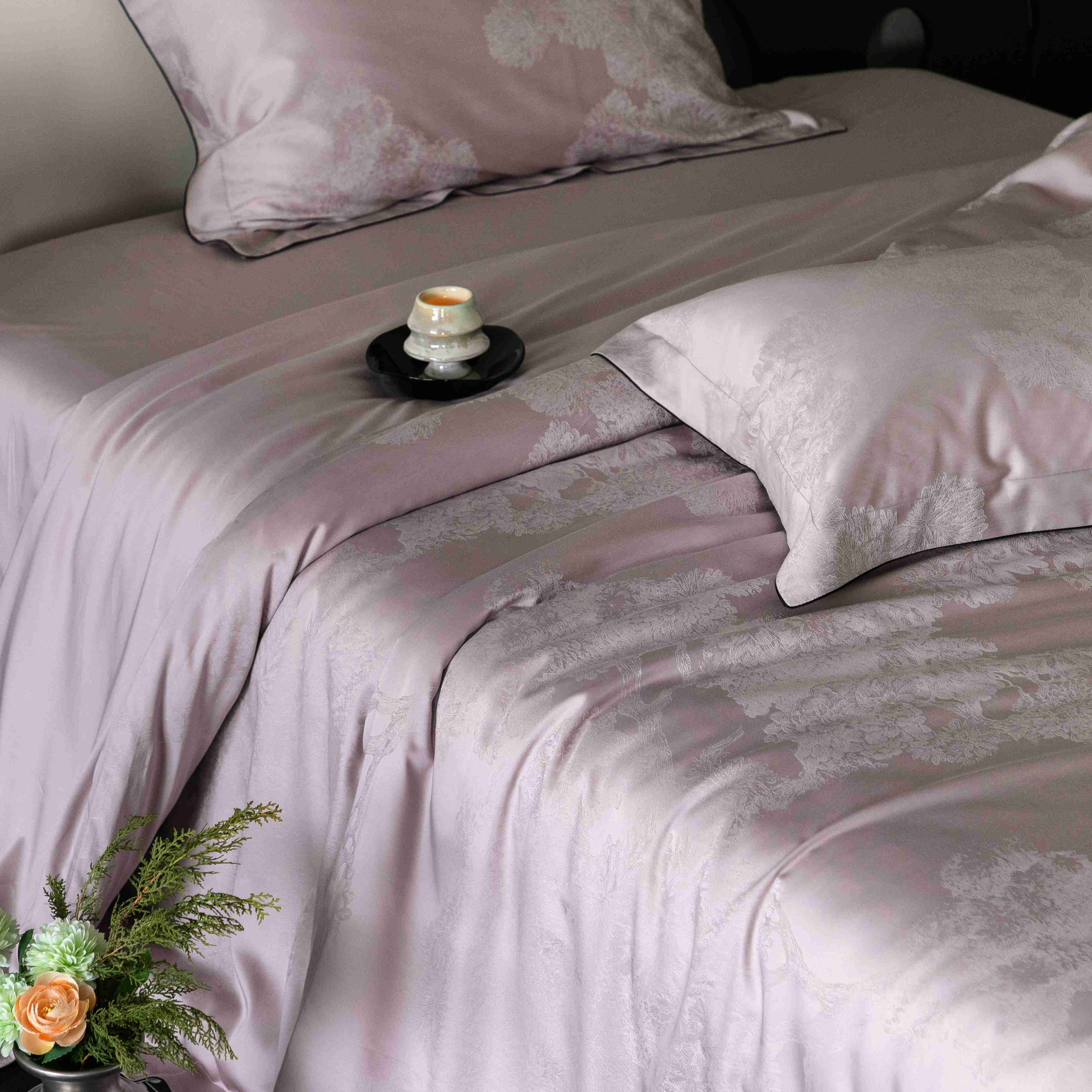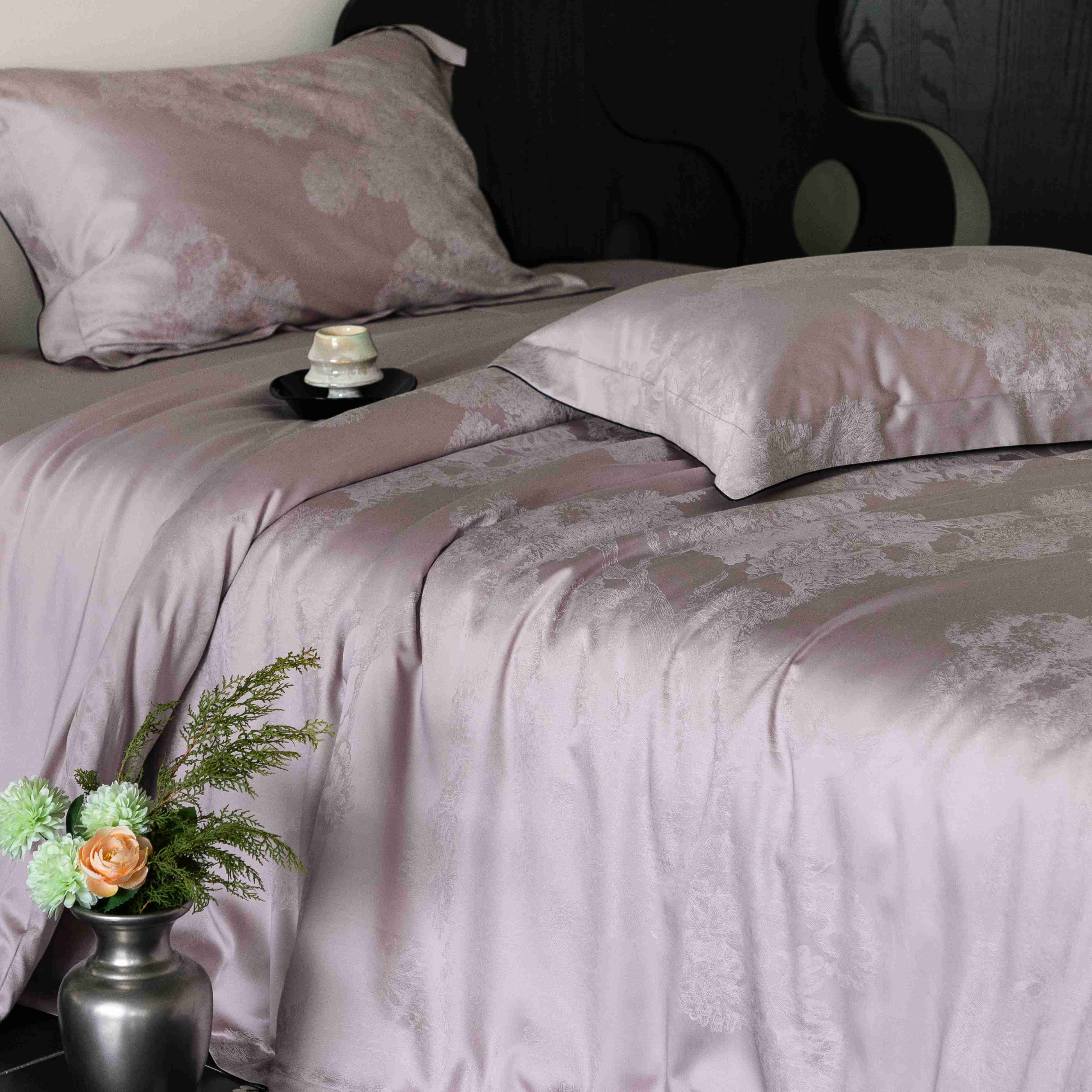 商品名称:涞澳家纺 2025新款60支天丝棉提花四件套 花砚-紫灰
