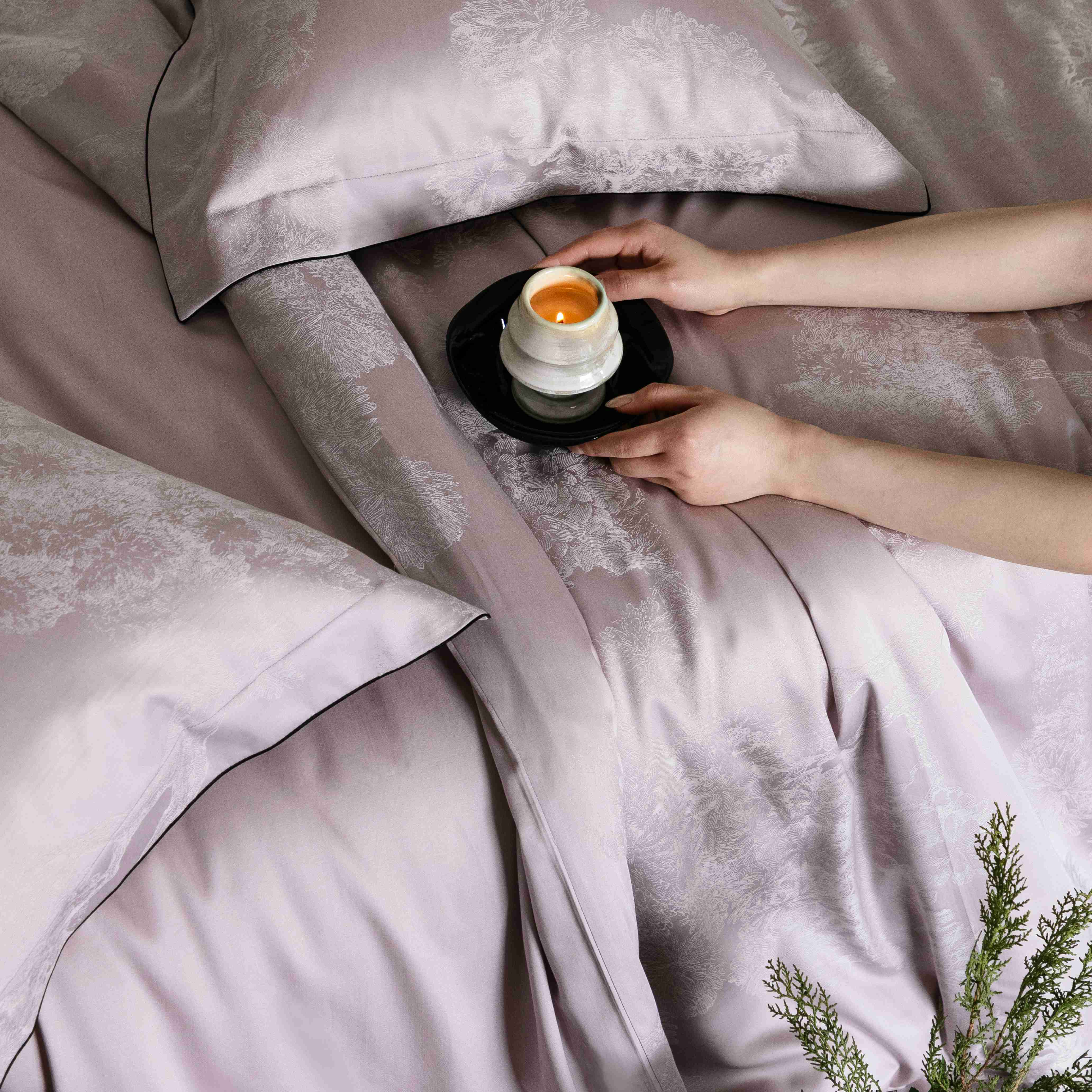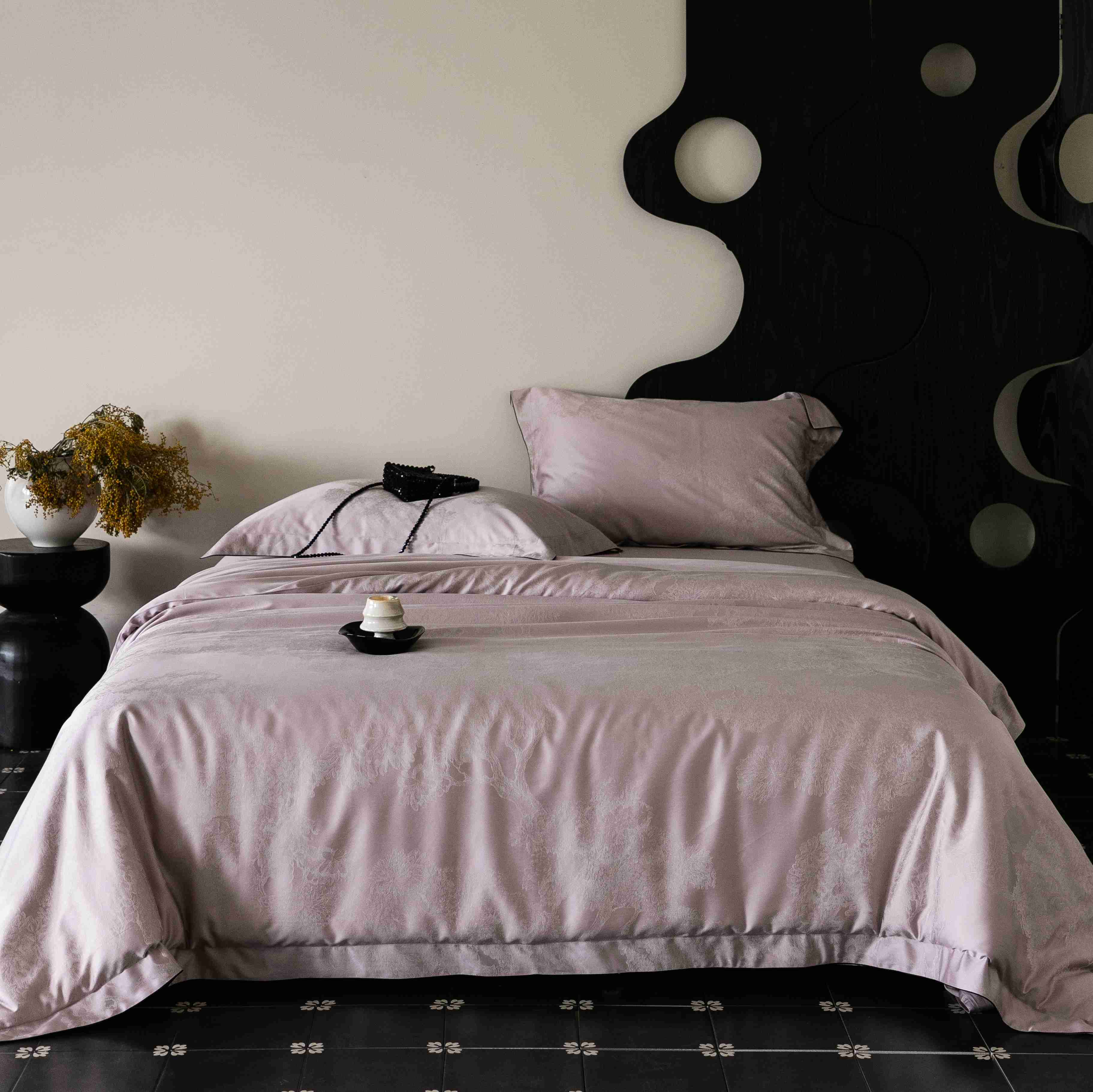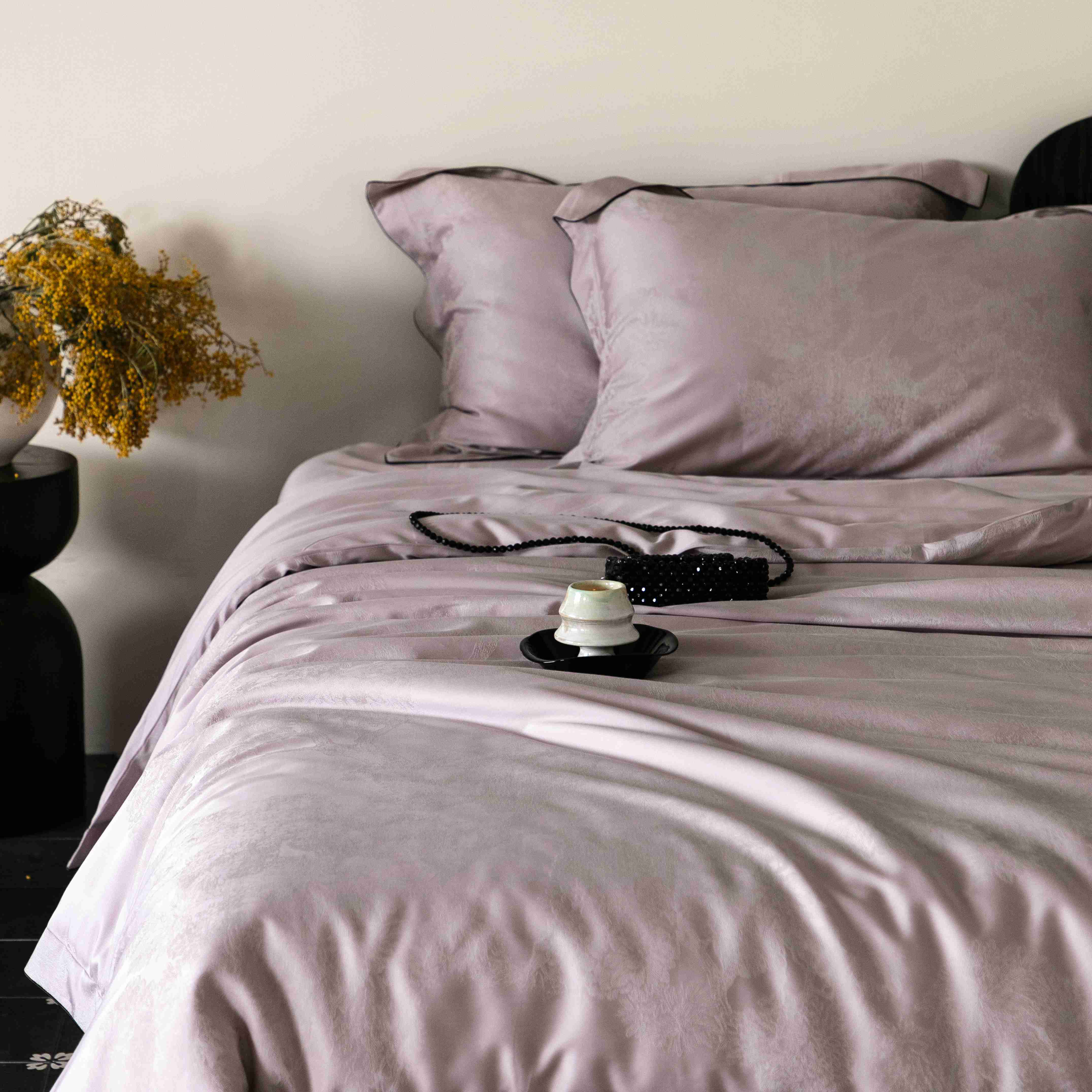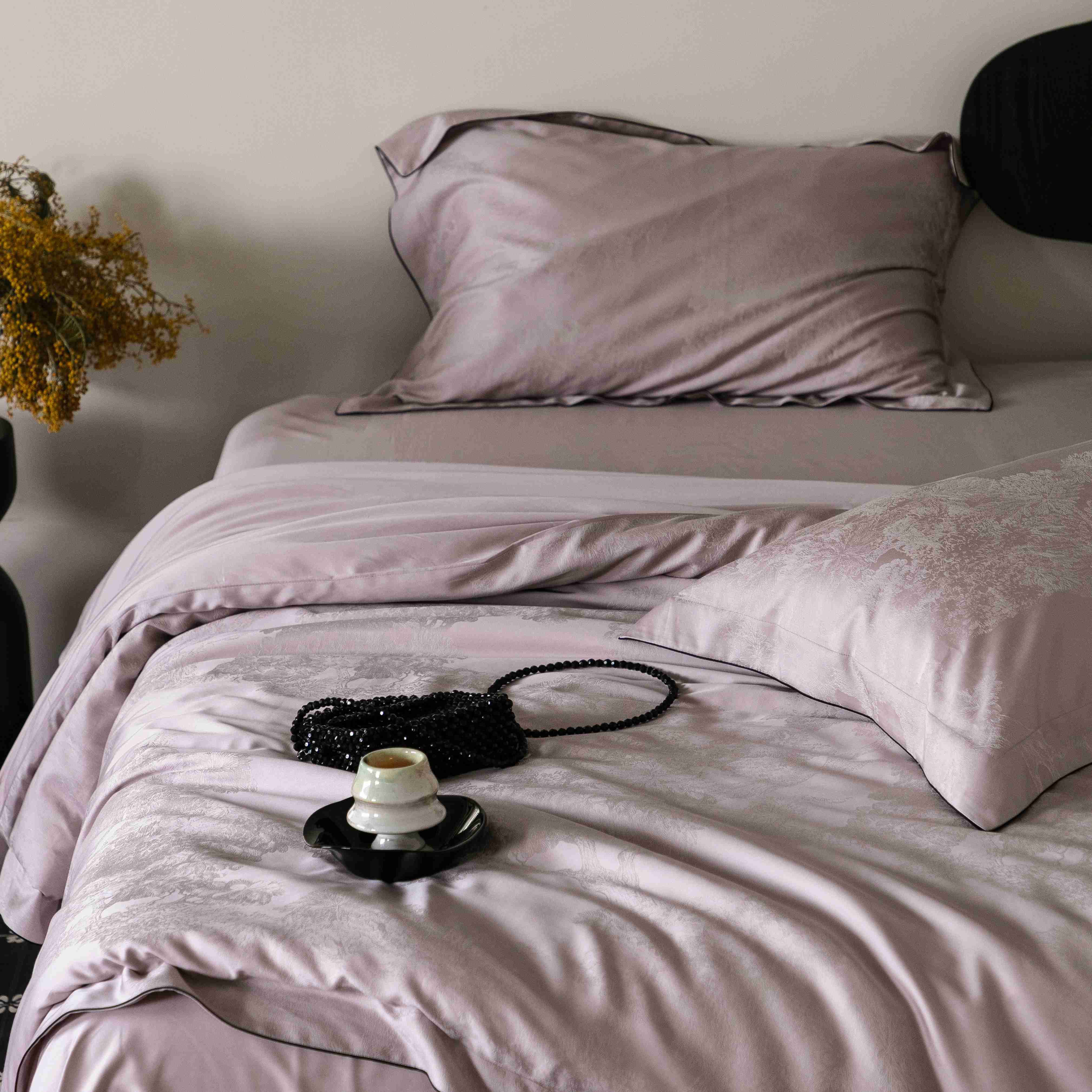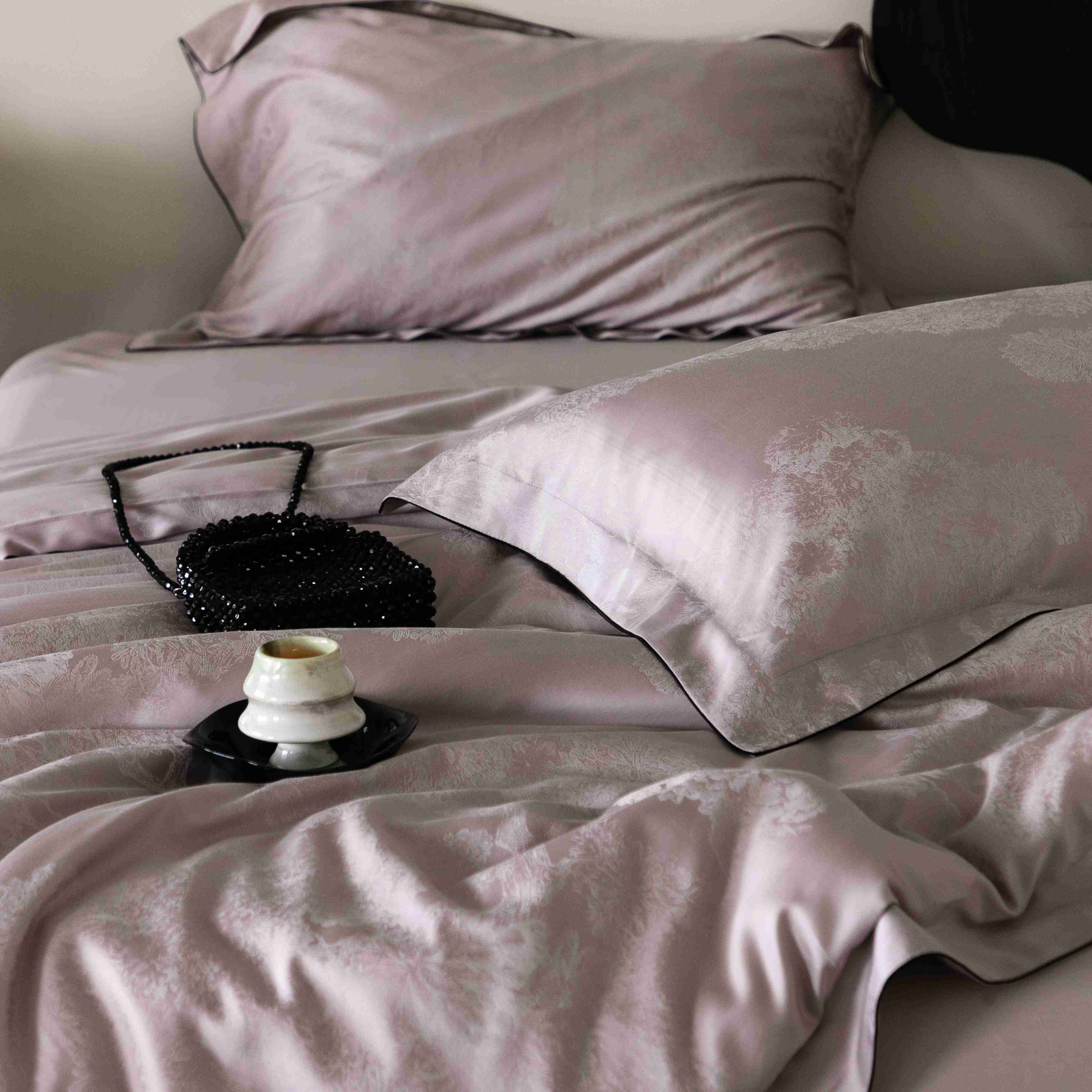 商品名称:涞澳家纺 2025新款60支天丝棉提花四件套 花砚-紫灰