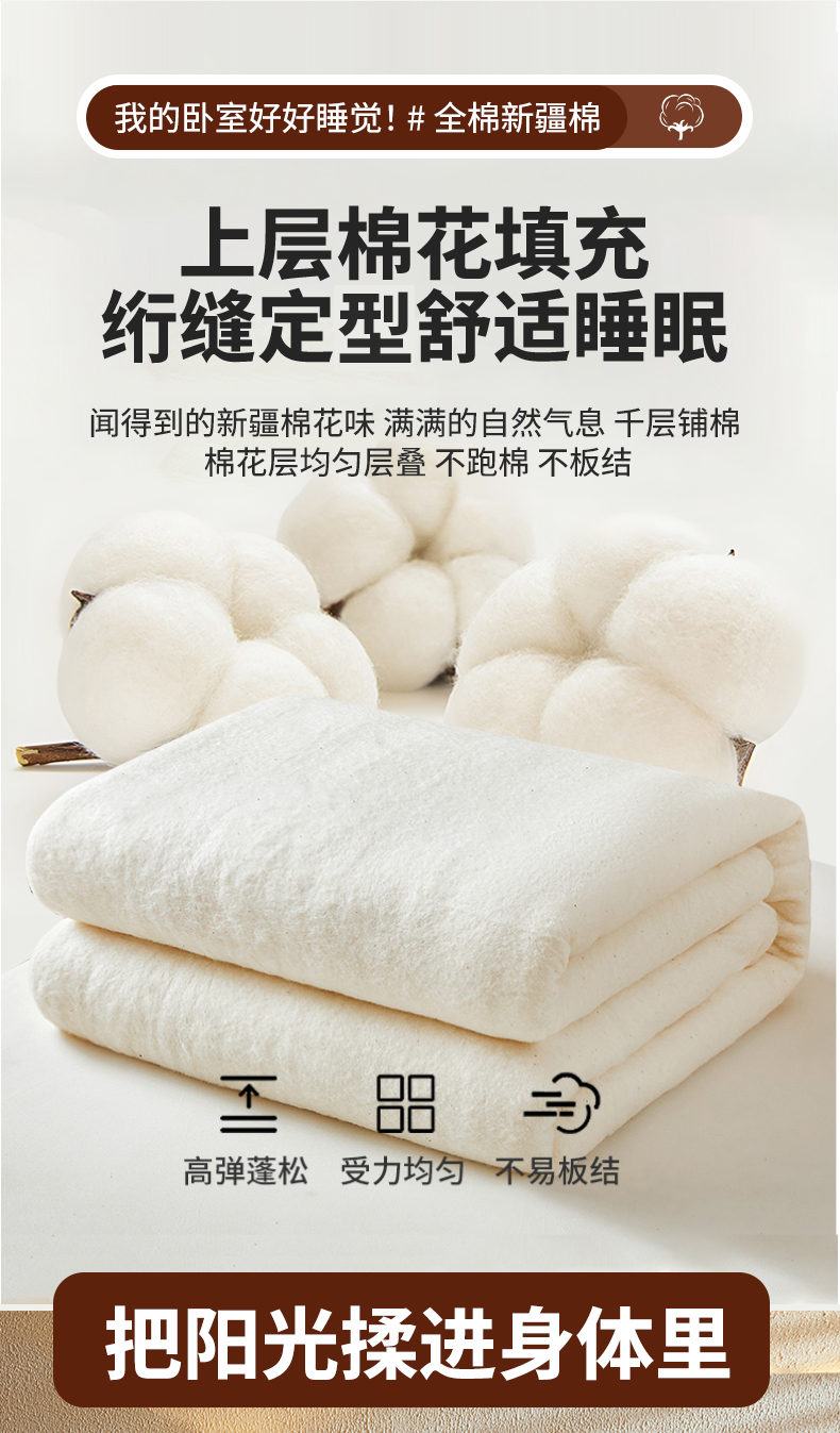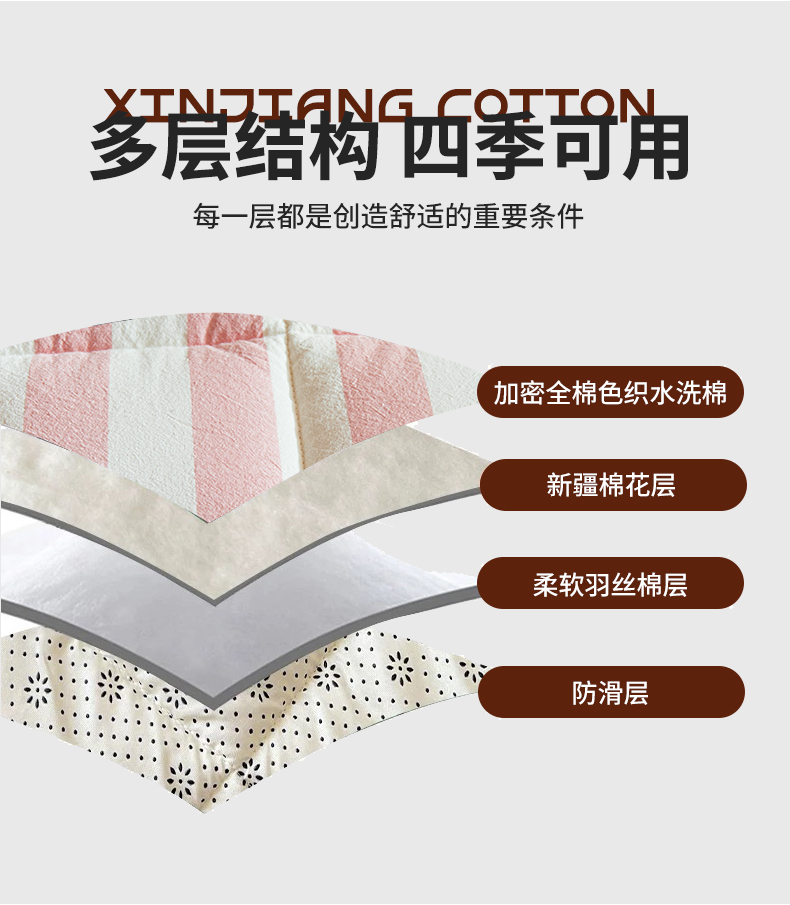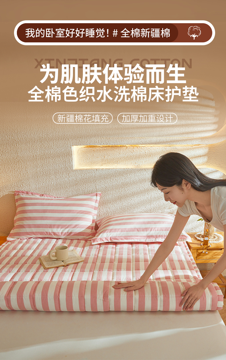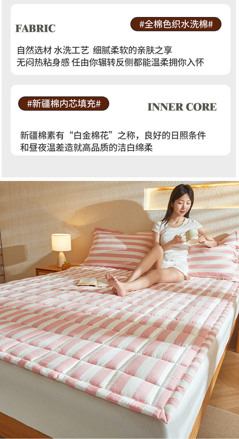 商品名称:(总)丽诺床垫 2025新款亲肤舒适全棉纯棉色织棉花床褥床垫-少女粉