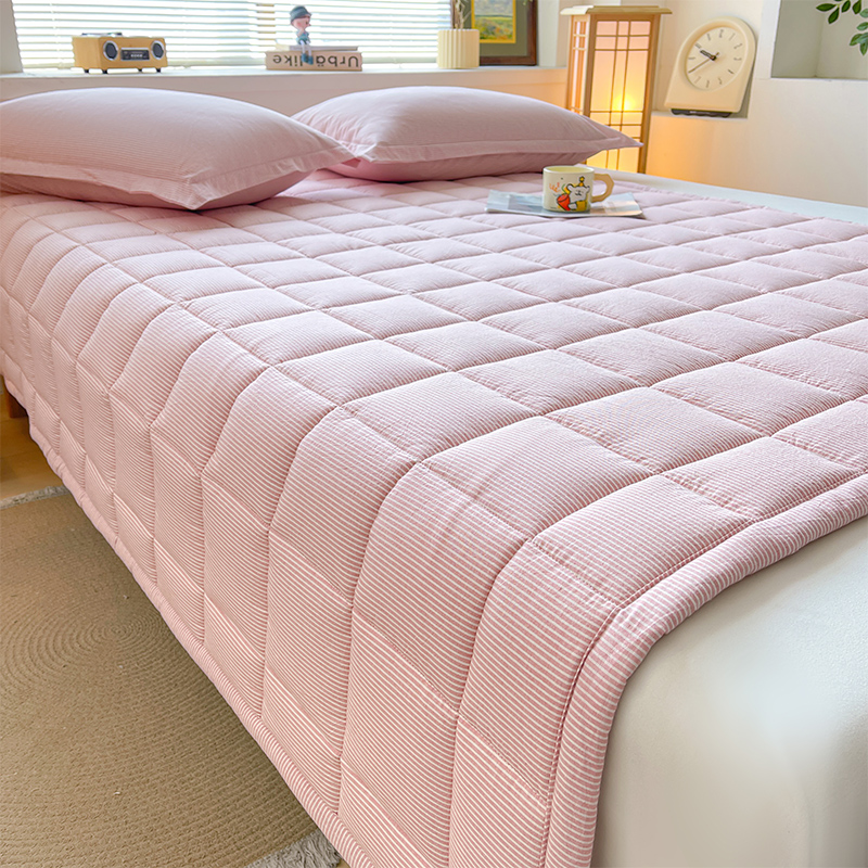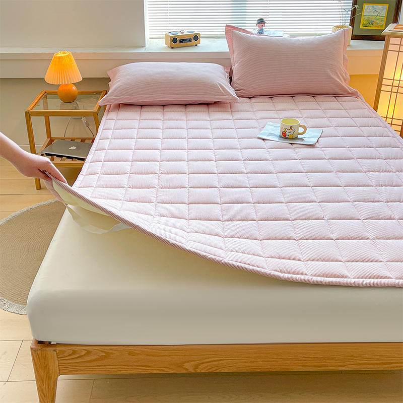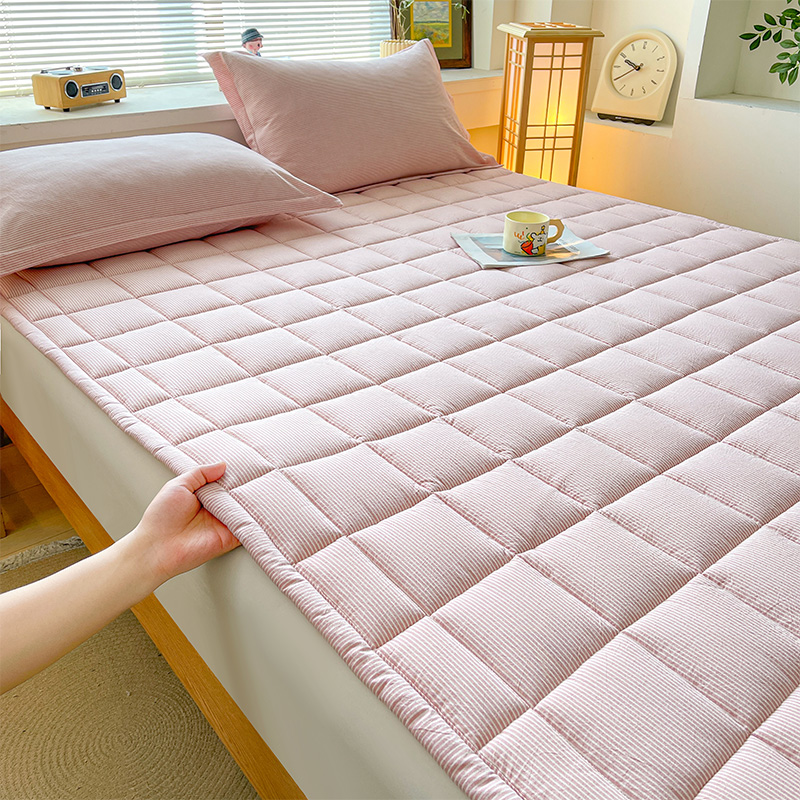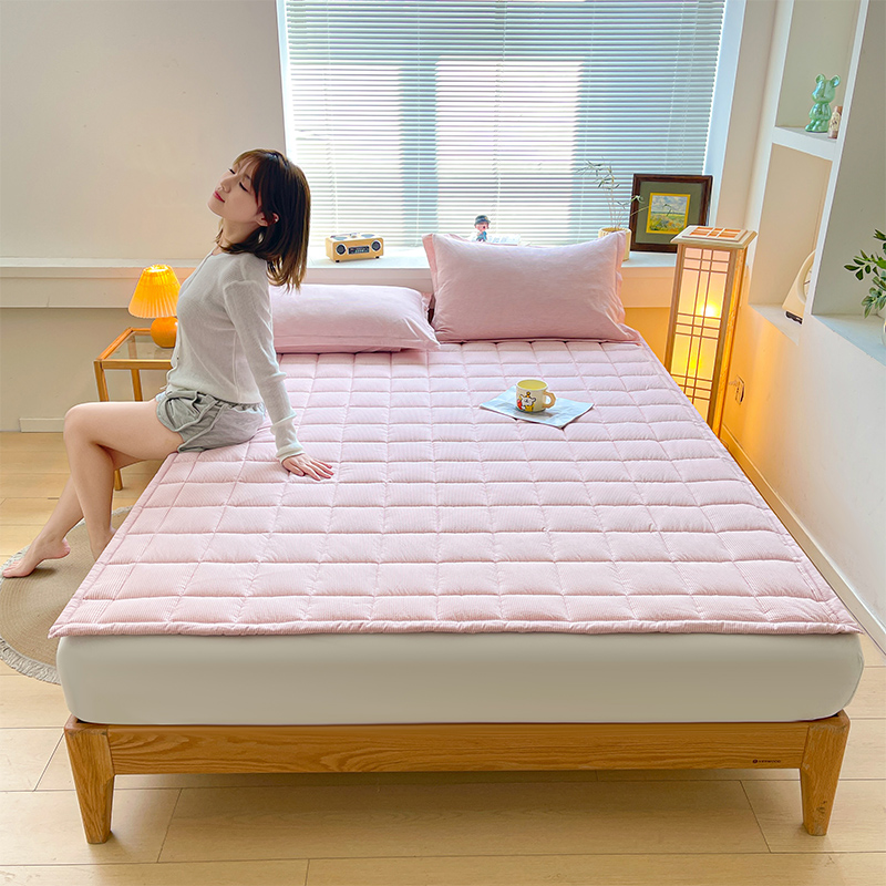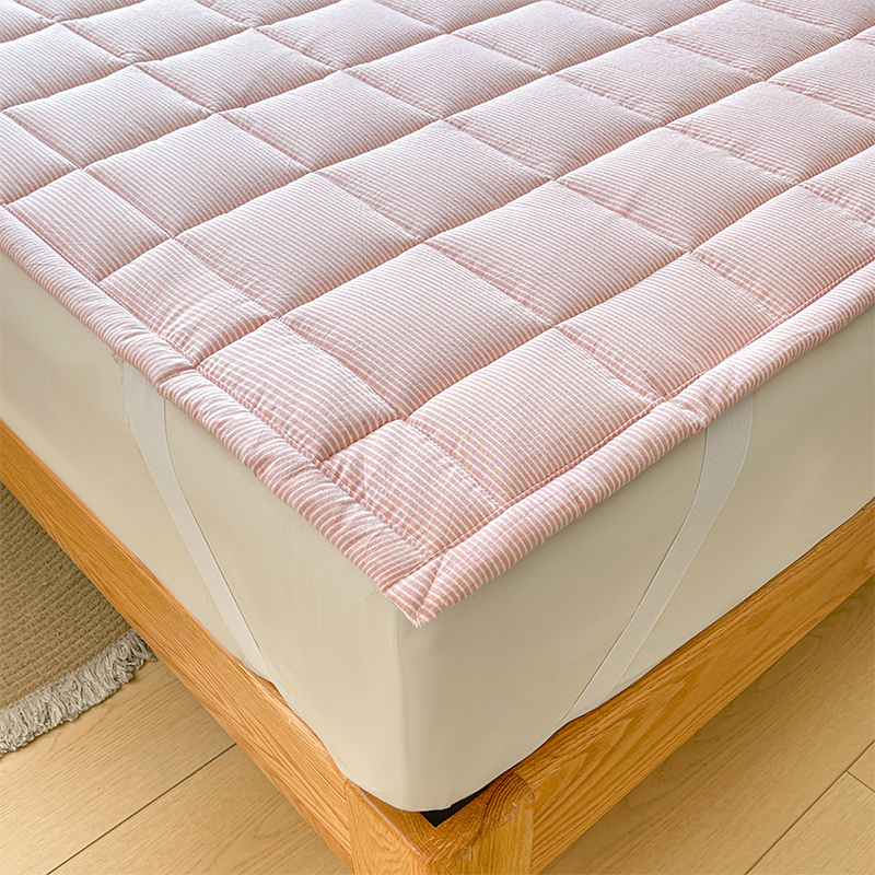 • 91家纺网 家纺一手货源 找家纺 丽诺床垫 2025新款亲肤舒适全棉纯棉色织棉花床褥床垫-少女粉 细条粉