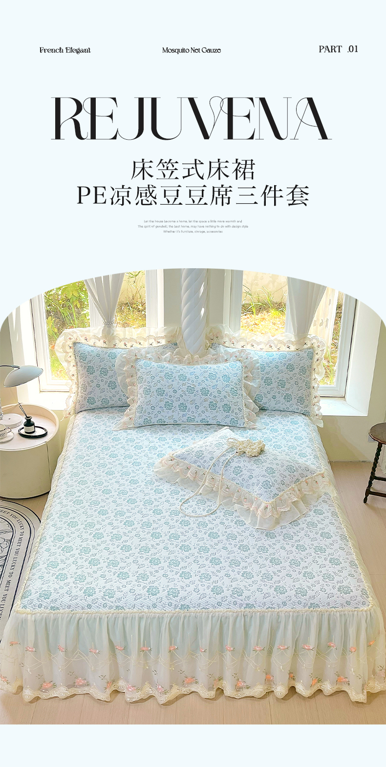 商品名称:罗艺轩 2025新款PE中分子凉感软凉席席子床裙款 蝴蝶结-薄荷绿