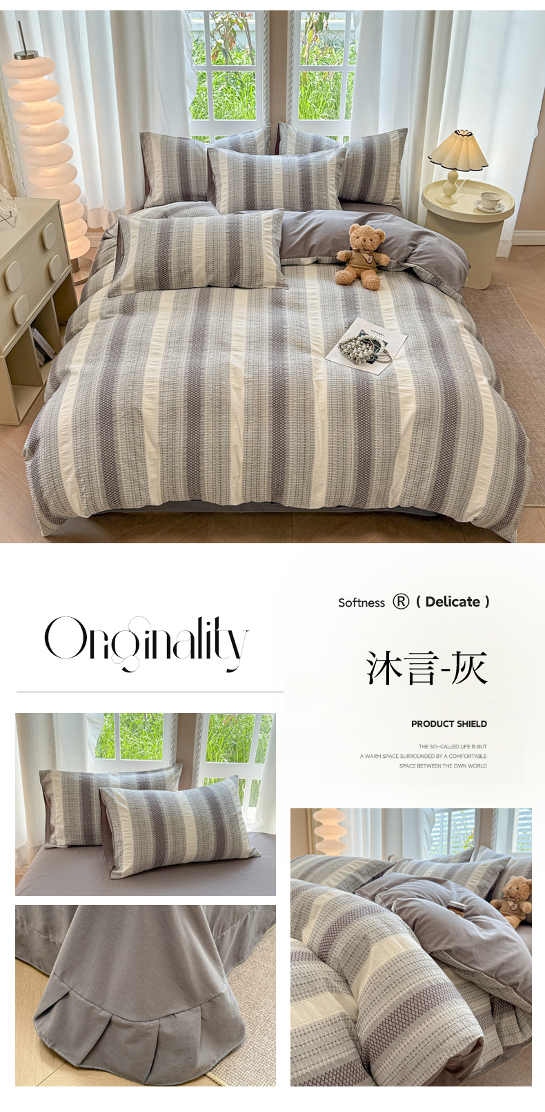 当前位置: 91家纺网 > 商品网购 > 床品套件 > 四件套 > 全棉普通四件套 > 米可2025春夏新款A类色织华夫格提花全棉四件套 沐言-灰