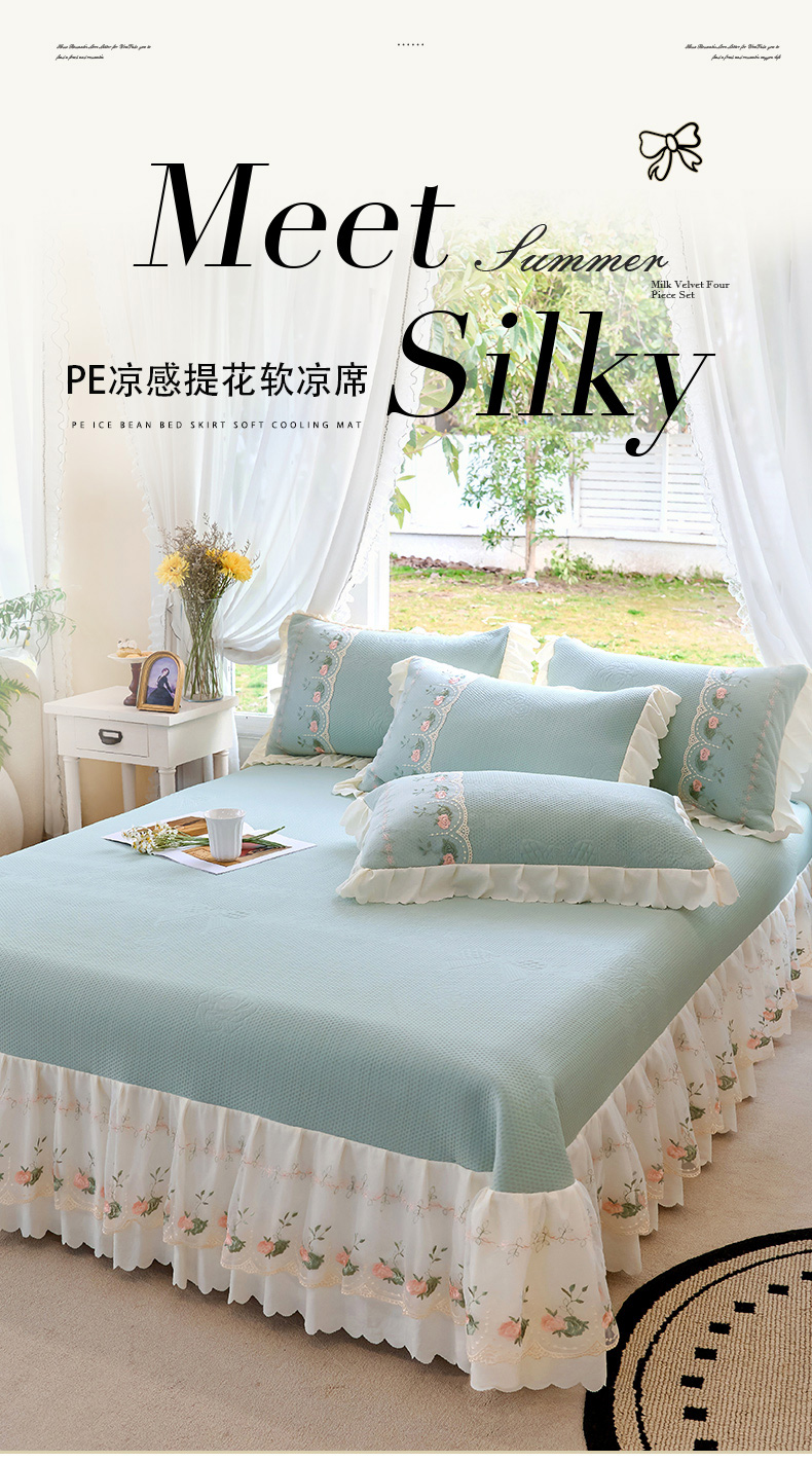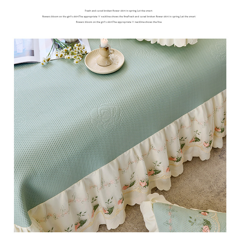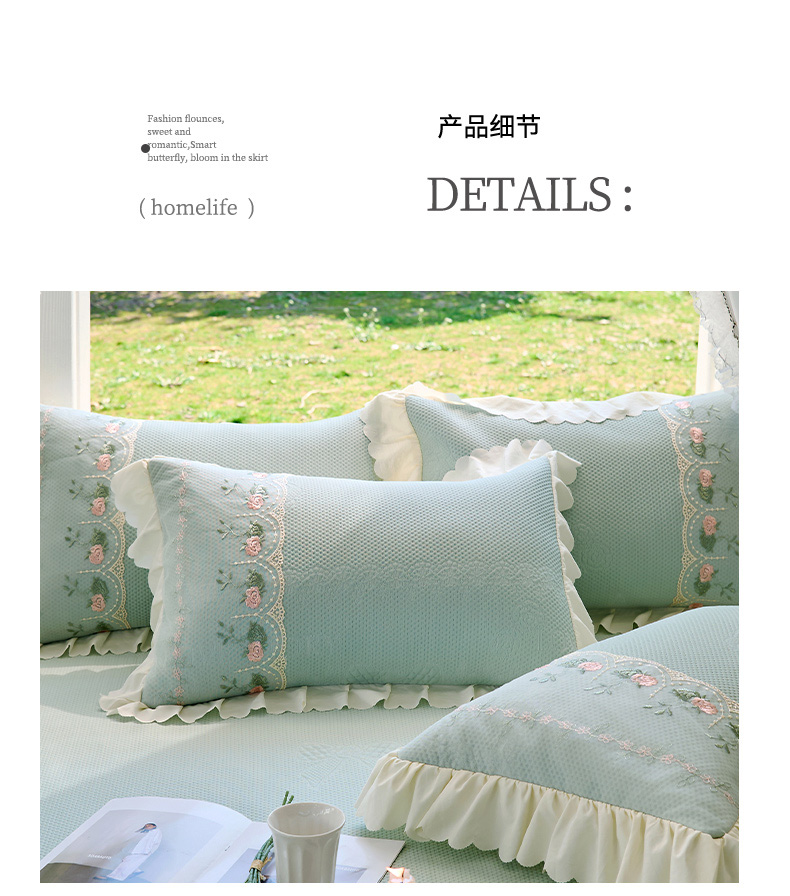 (总)乐朵家居 2026春夏 23-2觅彩 锦棉 蕾丝床裙,豆沙色,灰色,蓝色,绿色,奶白色,玉色