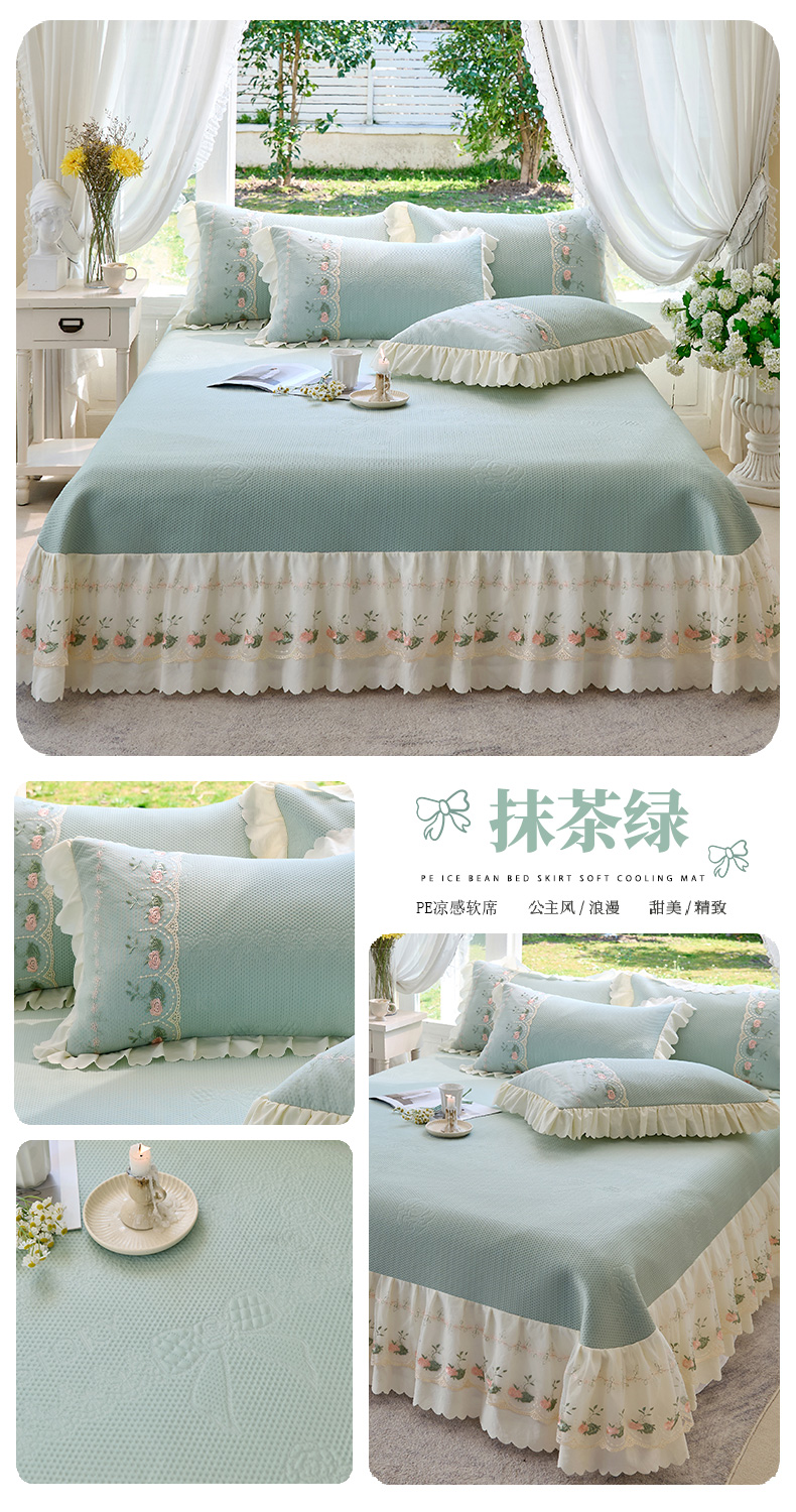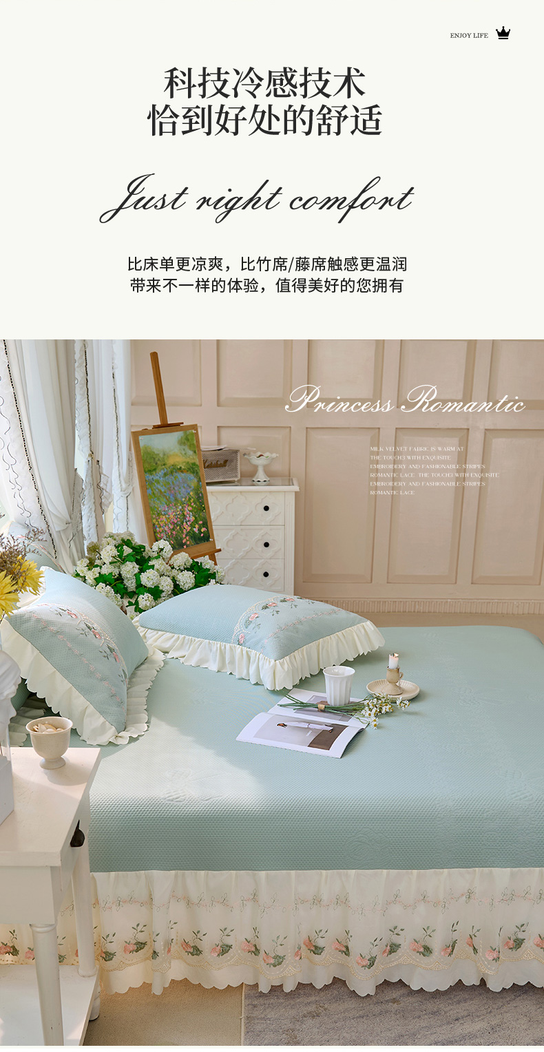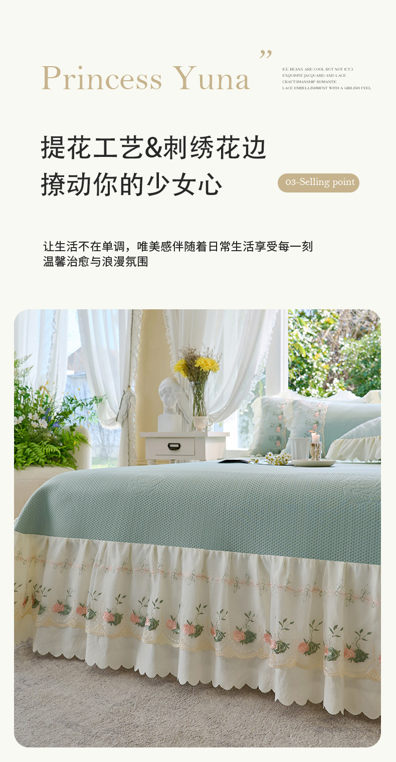 (总)乐朵家居 2026新款 25-3郁金香 天丝缎蕾丝床裙+可配空调被,绿,豆沙,奶白,灰,紫,卡其