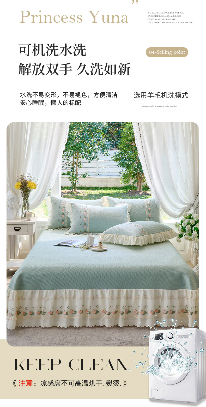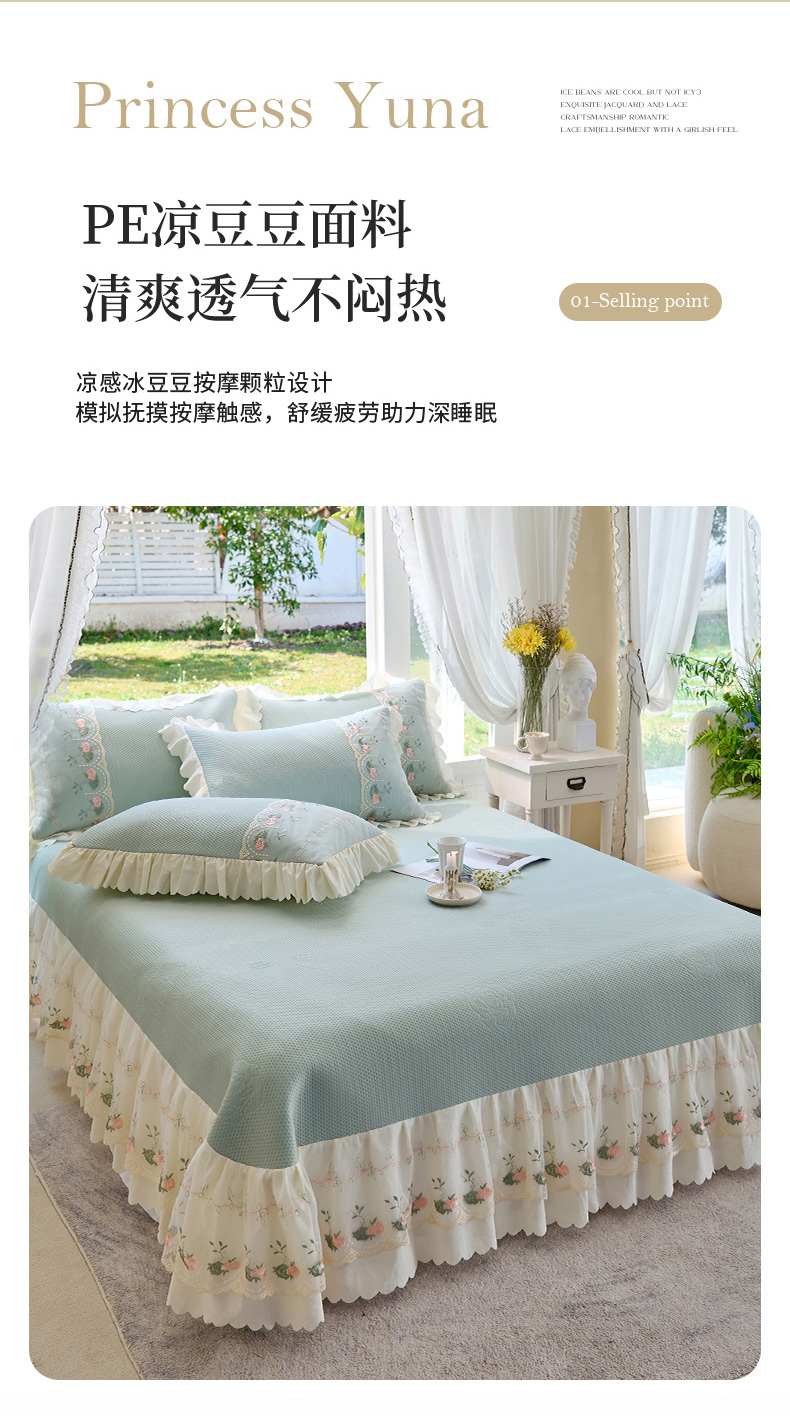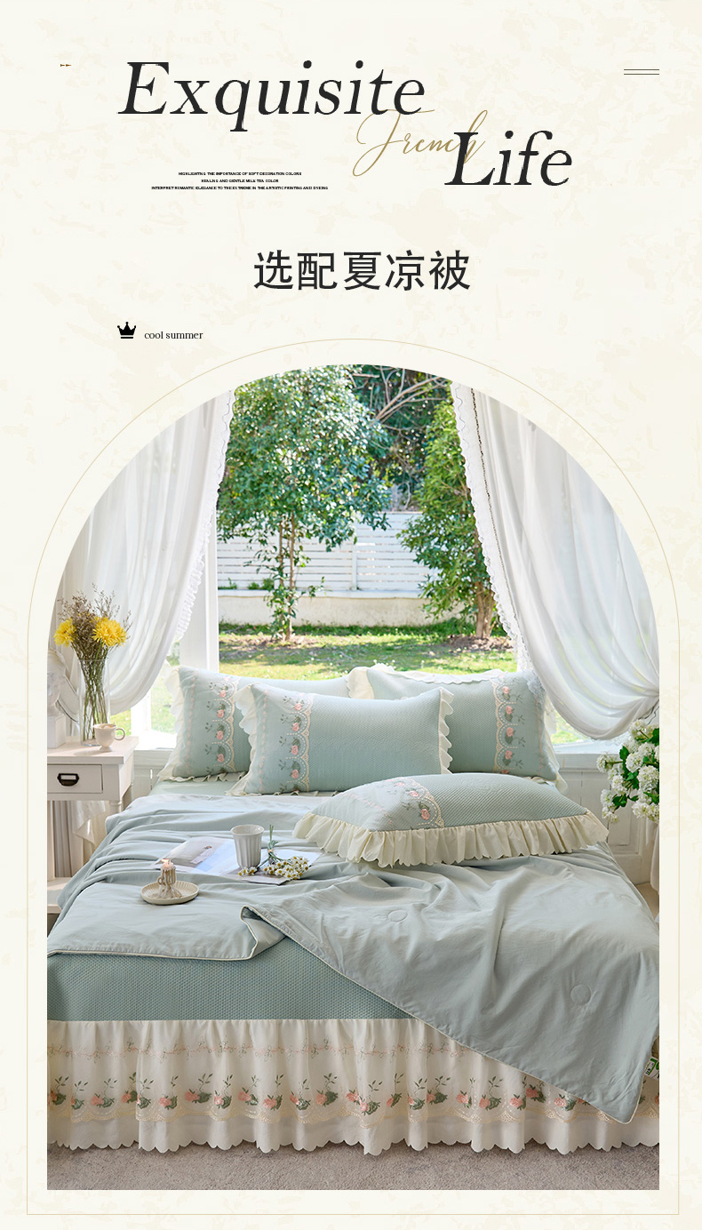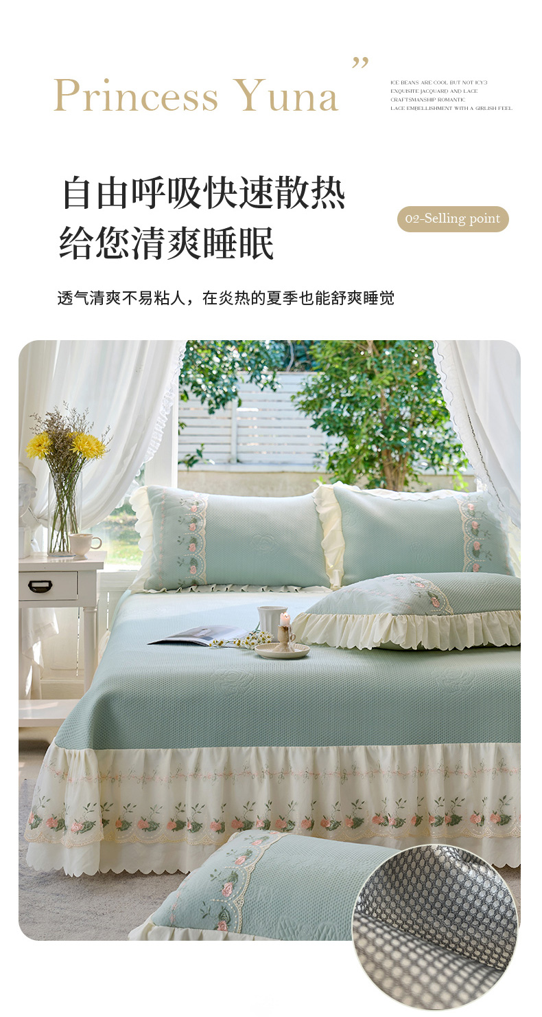 (总)乐朵家居 2026新款 25-3郁金香 天丝缎蕾丝床裙+可配空调被,绿,豆沙,奶白,灰,紫,卡其