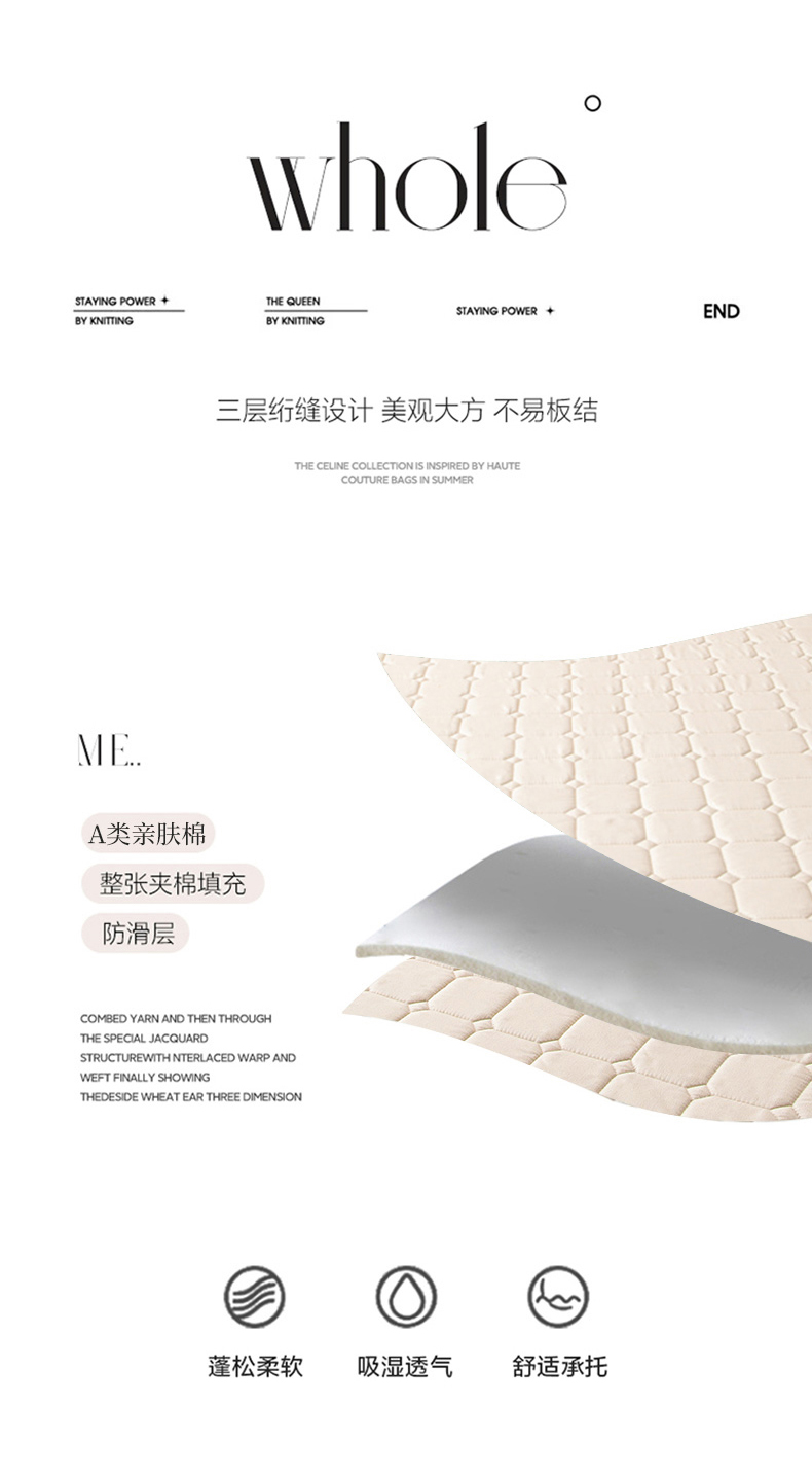 • 91家纺网 家纺一手货源 找家纺 锦眠 2025新款亲肤面包格夹棉床笠 白色