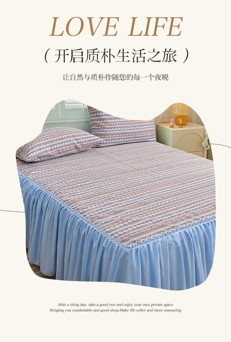 (总)小雨家纺 2026新款亲肤芦荟棉外贸蕾丝花边床裙,百花齐放蓝,繁花似锦,简约沙龙,向阳而生,知己,知心爱人