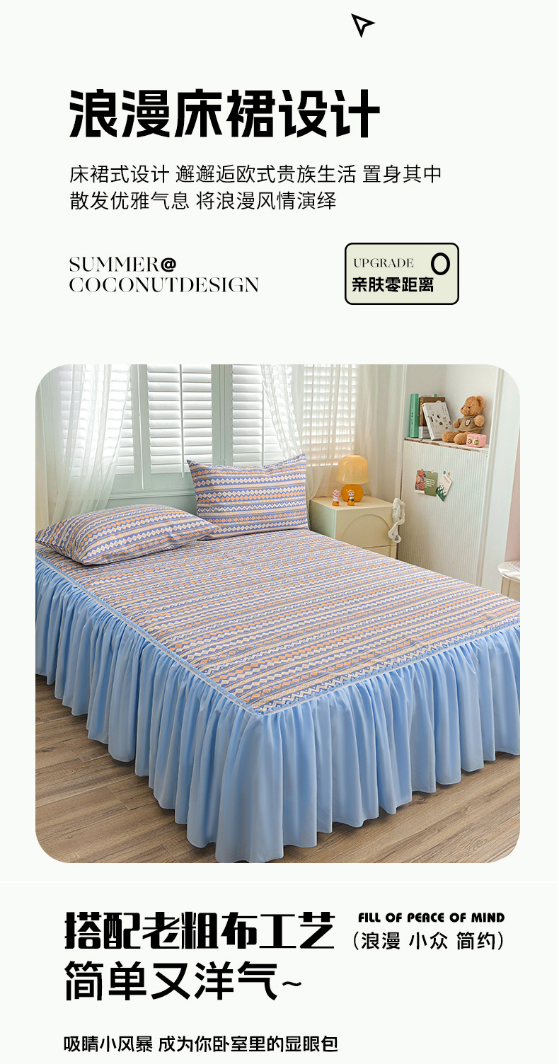 (总)小雨家纺 2026新款原棉老粗布床裙款凉席席子三件套