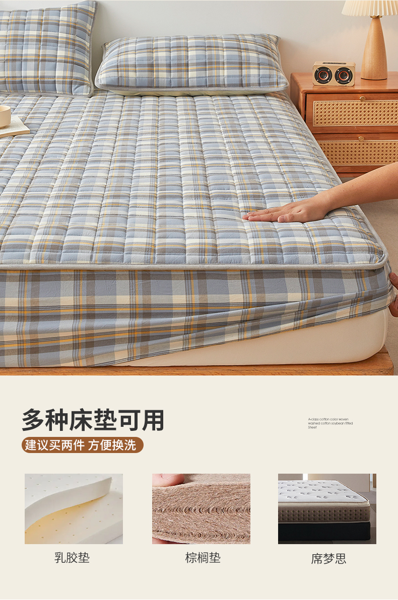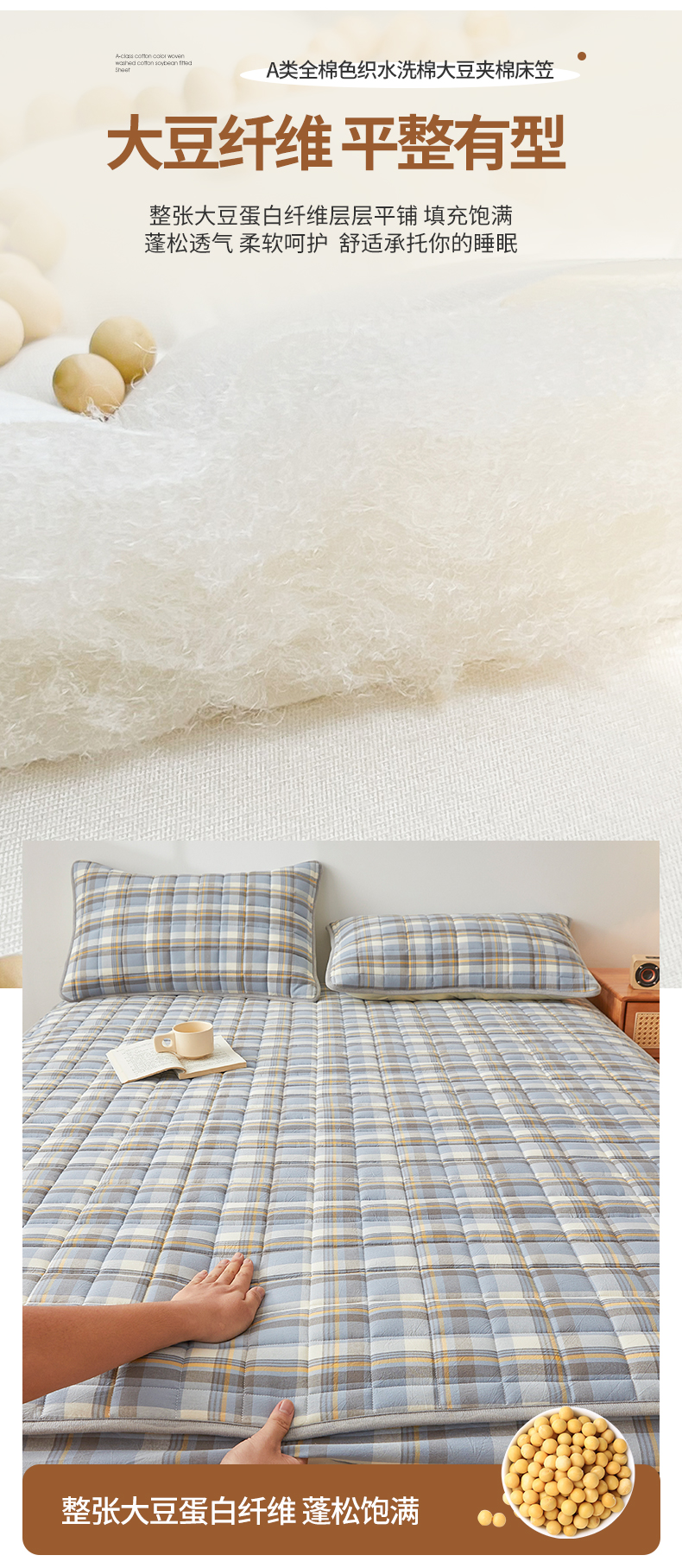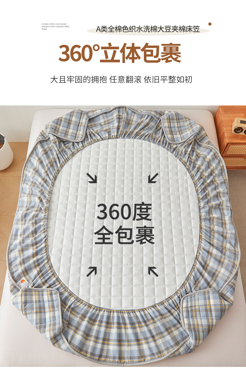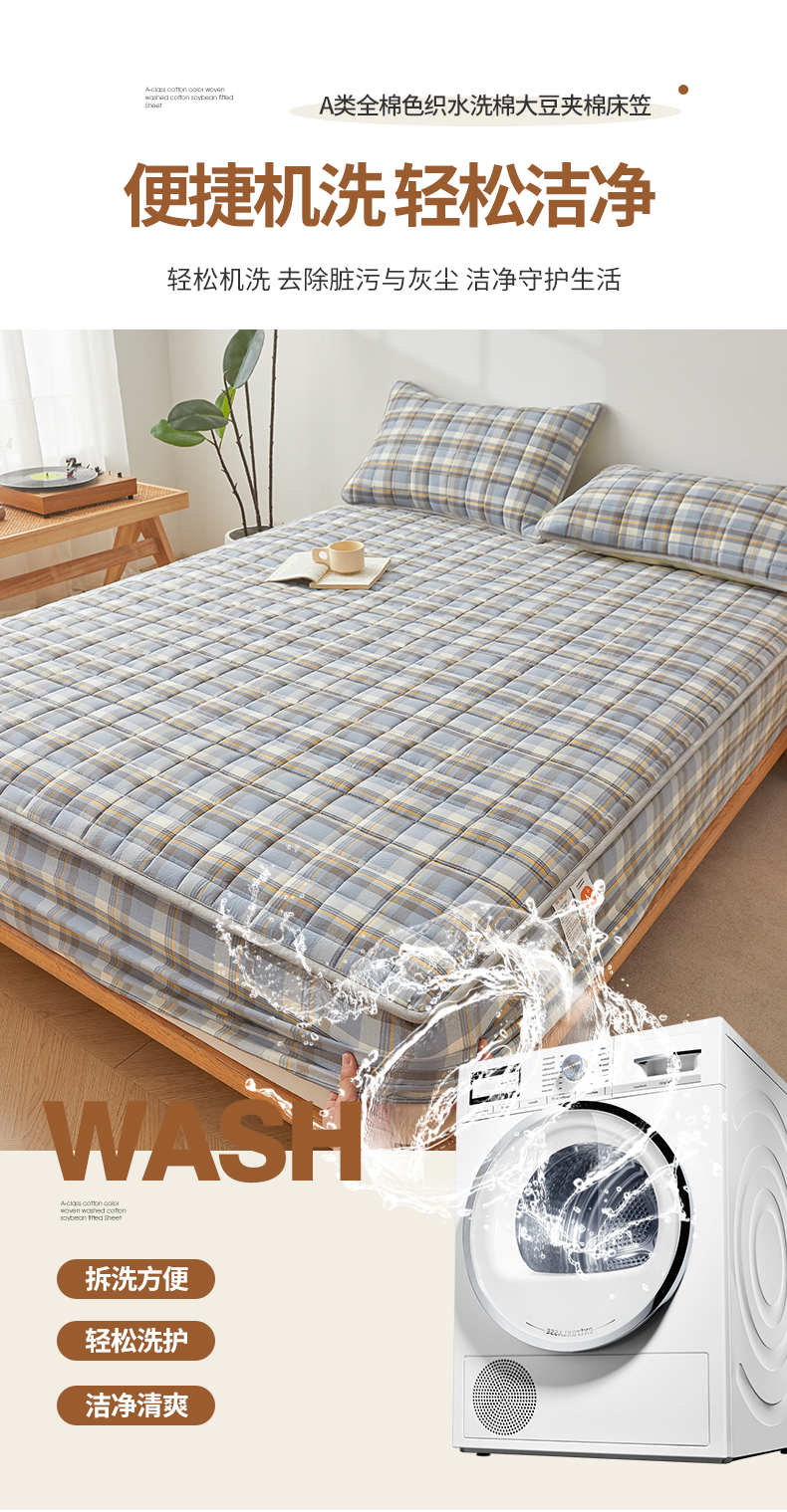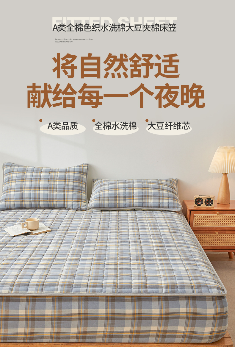(总)伊人坊 2025新款A类全棉色织水洗棉大豆夹棉床笠,艾格 浅粉,艾格 浅蓝,森屿 粉蓝,森屿 咖黄,森屿 咖蓝,森屿 雾灰