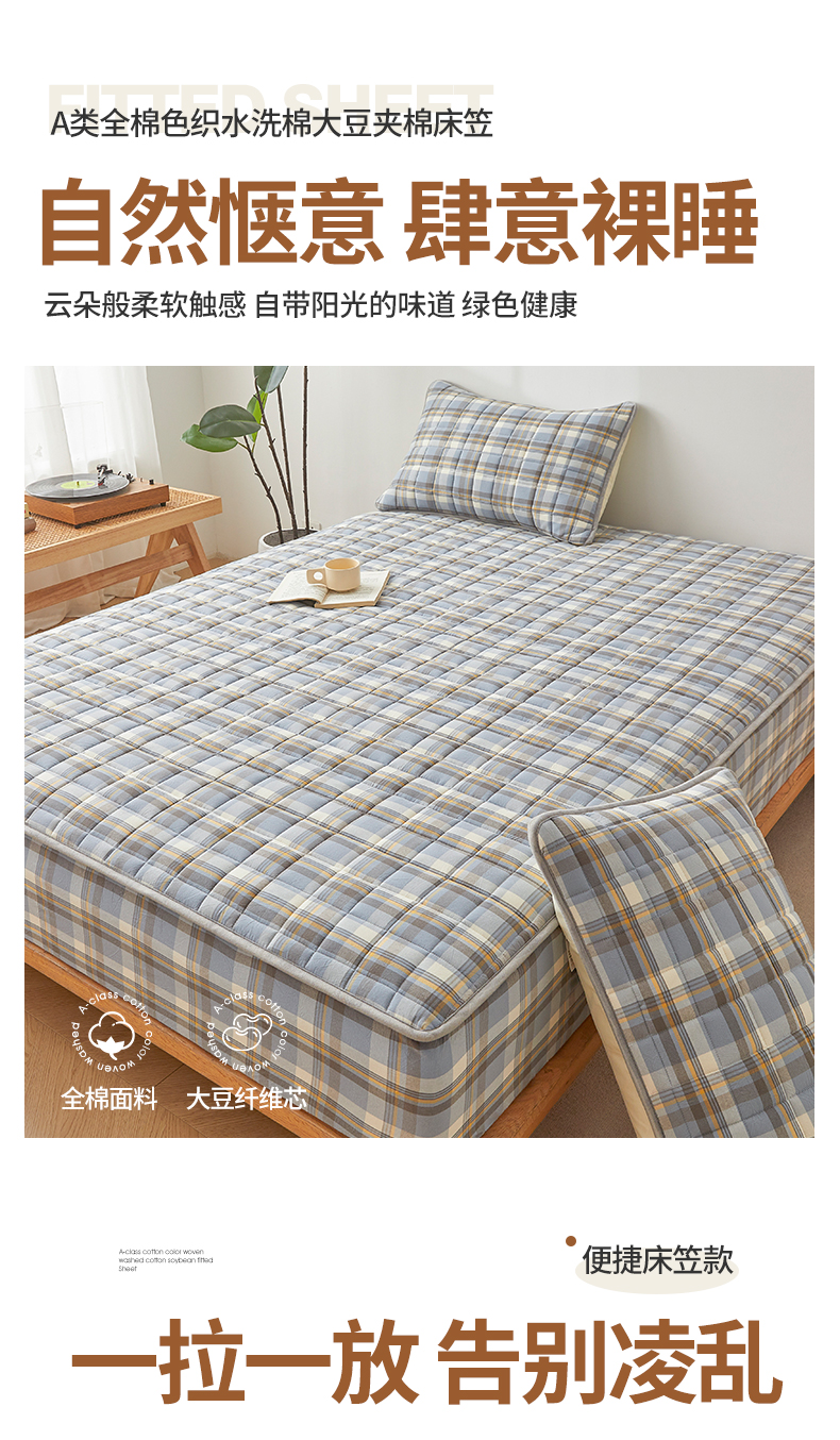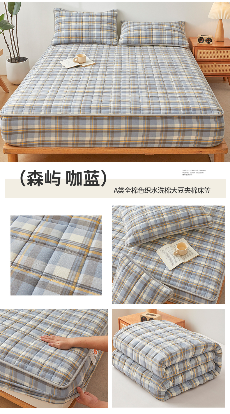 商品名称:伊人坊 2025新款A类全棉色织水洗棉大豆夹棉床笠 森屿 咖蓝