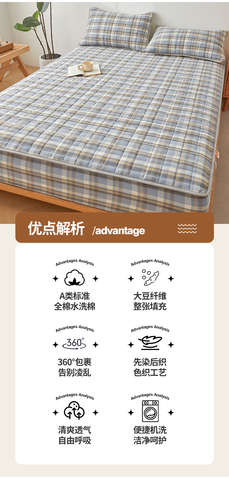 (总)伊人坊 2024新款原棉大豆床护垫,明月白,碧水青,布朗灰,玫瑰粉,米杏色,苹果绿