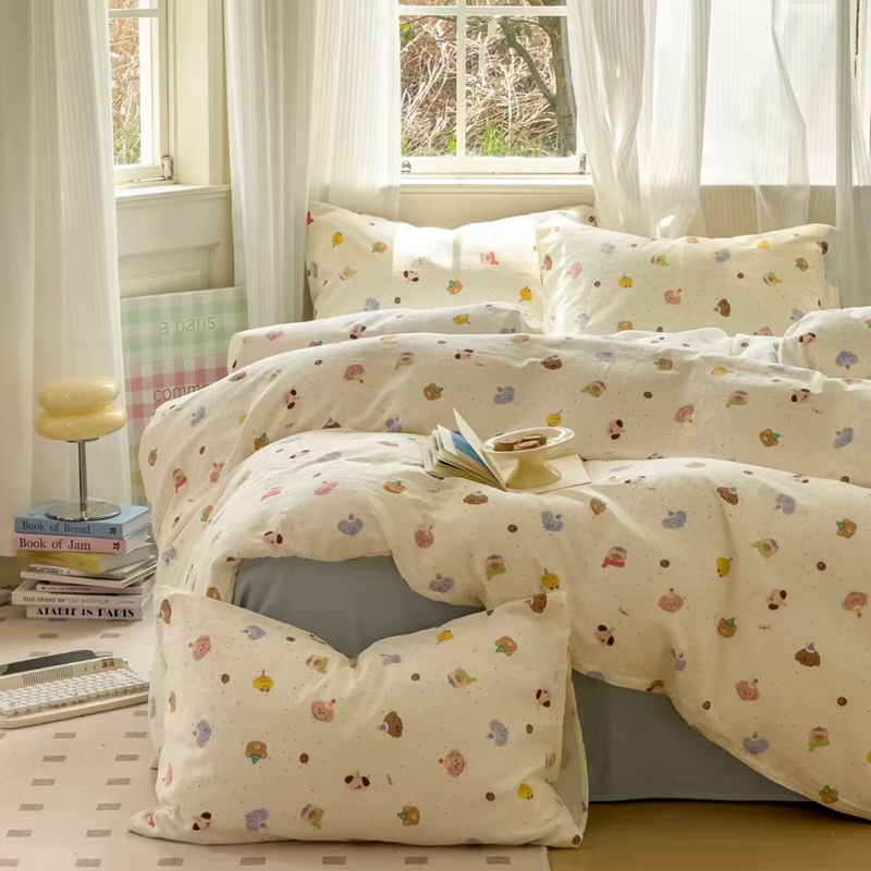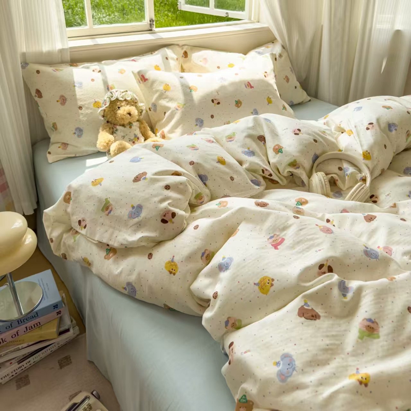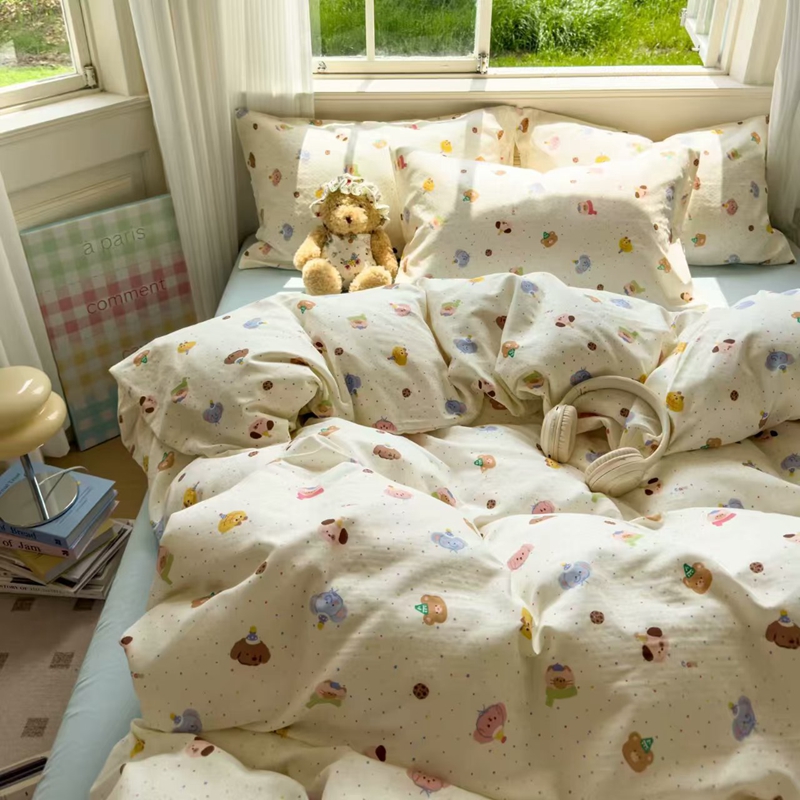 栩裕纺织 2025新款全棉双层纱四件套 动物乐园
