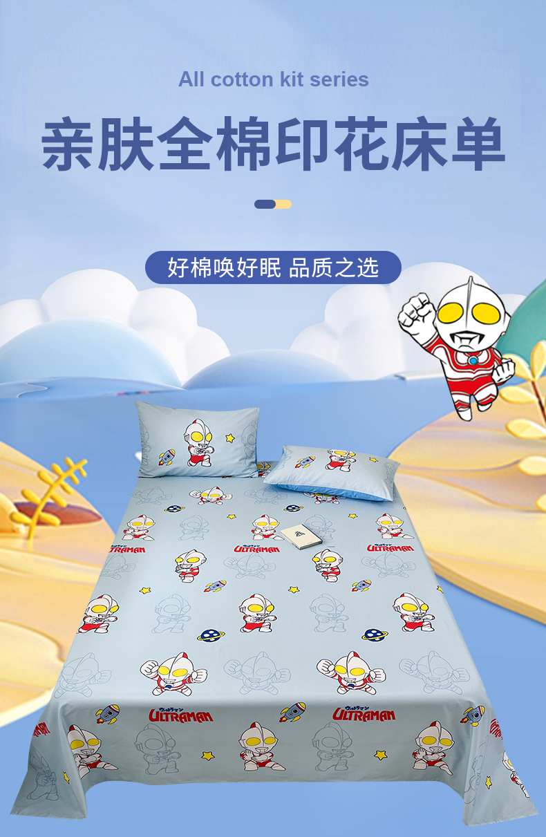 • 91家纺网 家纺一手货源 找家纺 孩子王家纺 2025春夏新款卡通全棉纯棉正版授权小版奥特曼-三丽鸥A版床单单床单(含防伪码) 光之超人