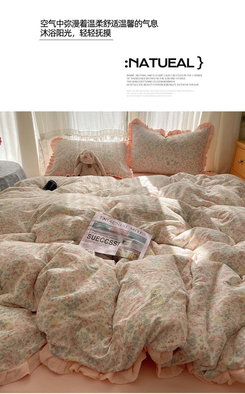 商品名称:(总)繁花家居 2025新款木耳边水洗棉双层纱针织棉韩式花边四件套