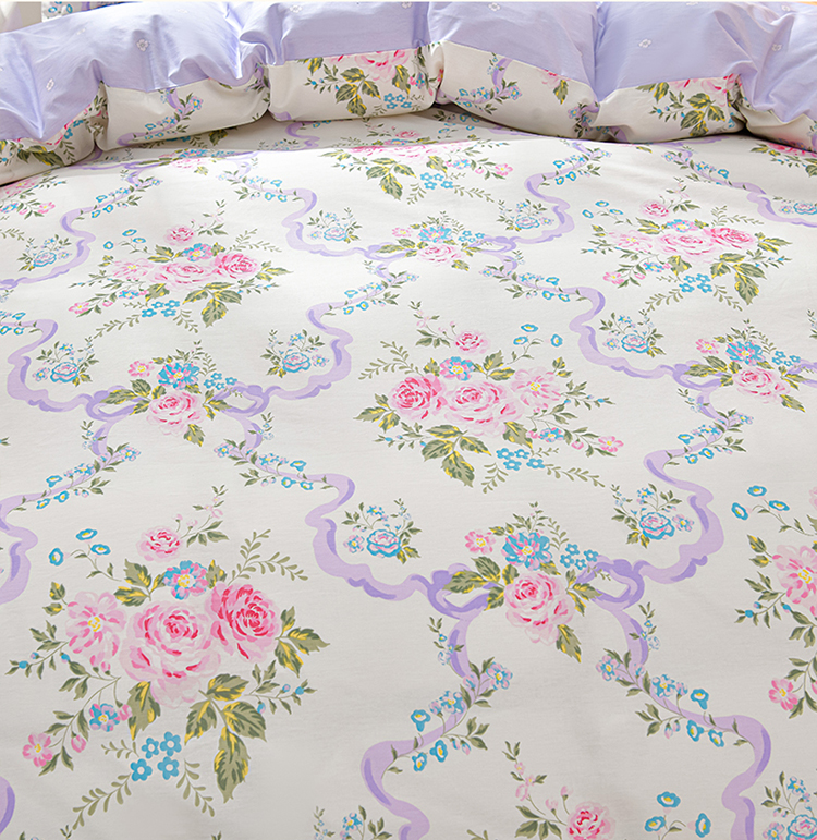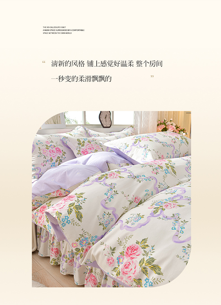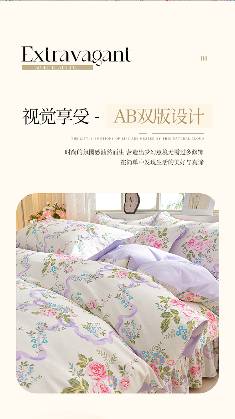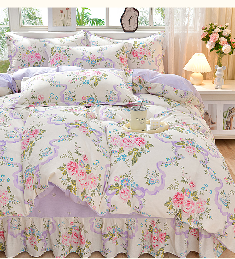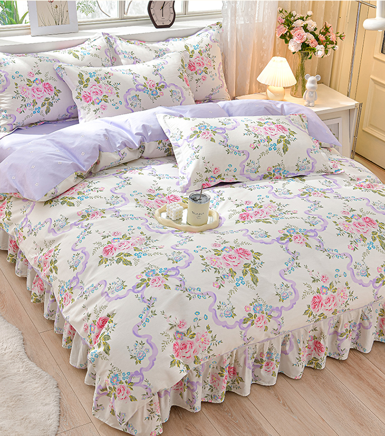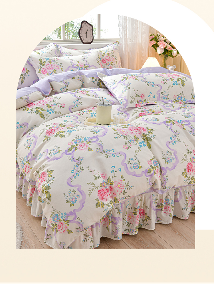 商品名称:绘萱家居 2025新款100%全棉床裙款斜纹印花四件套 沐雅之风
