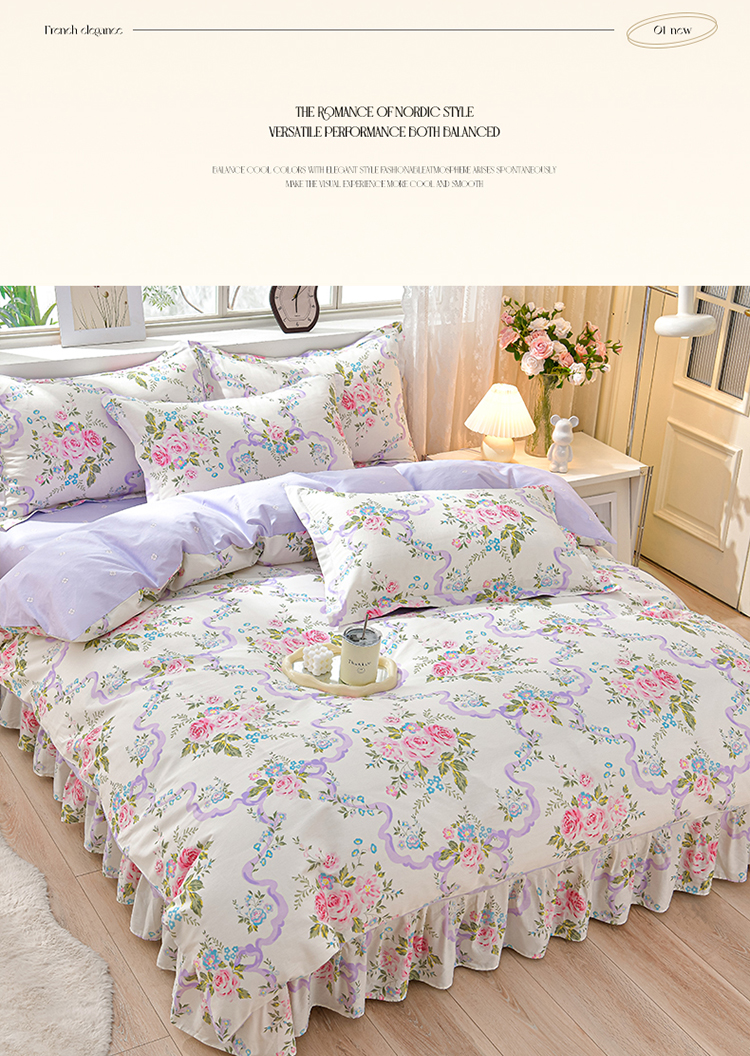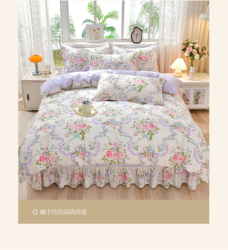 绘萱家居 2025新款100%全棉床裙款斜纹印花四件套 沐雅之风