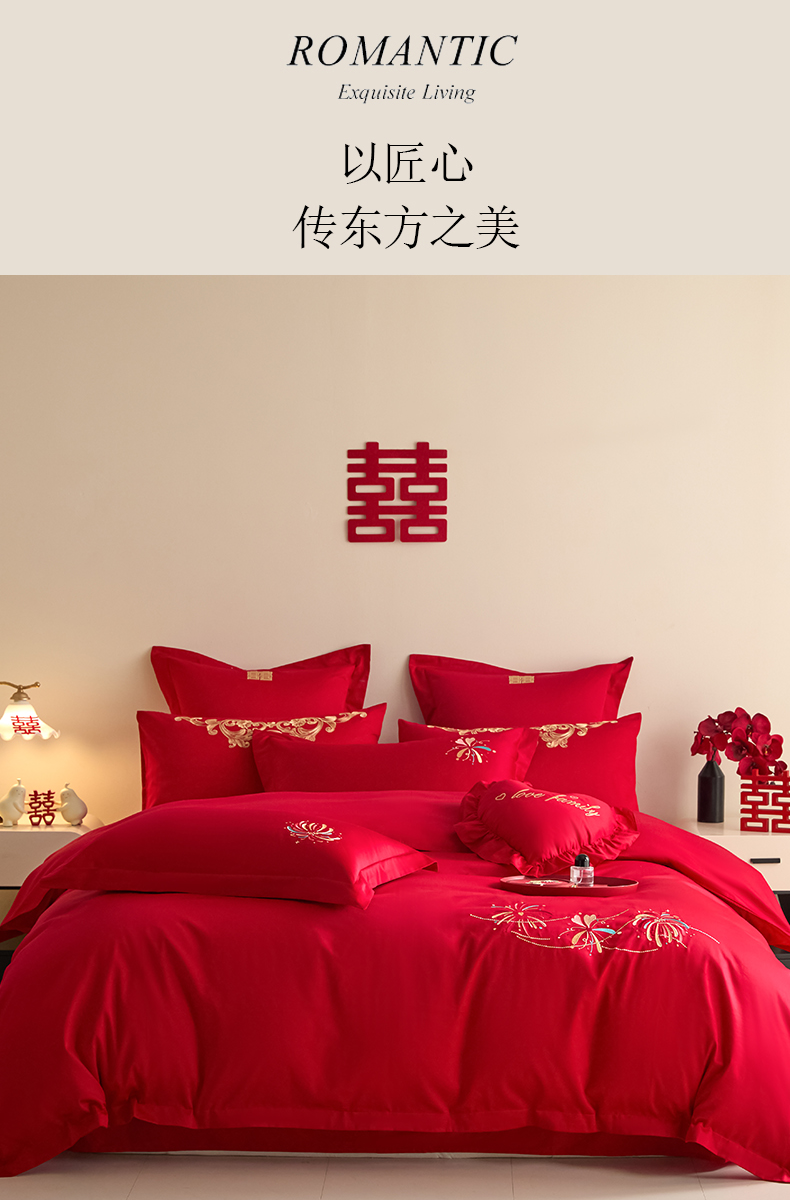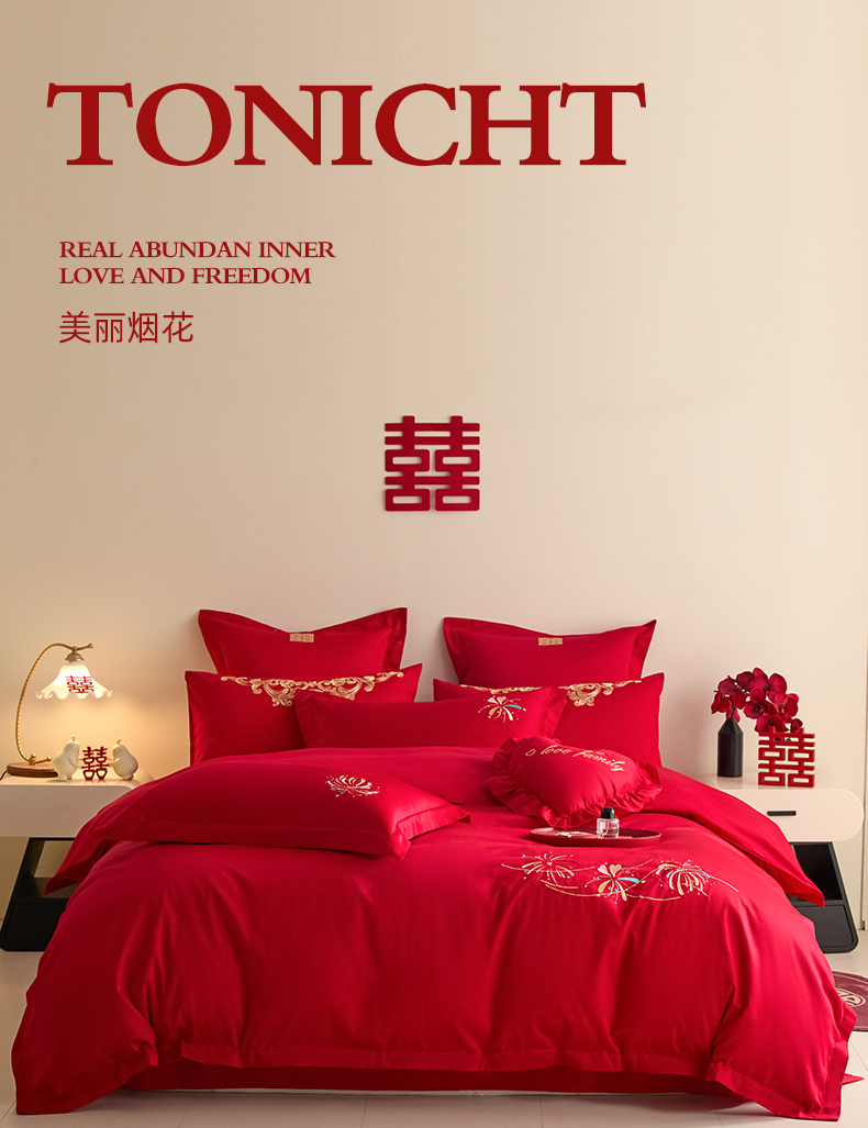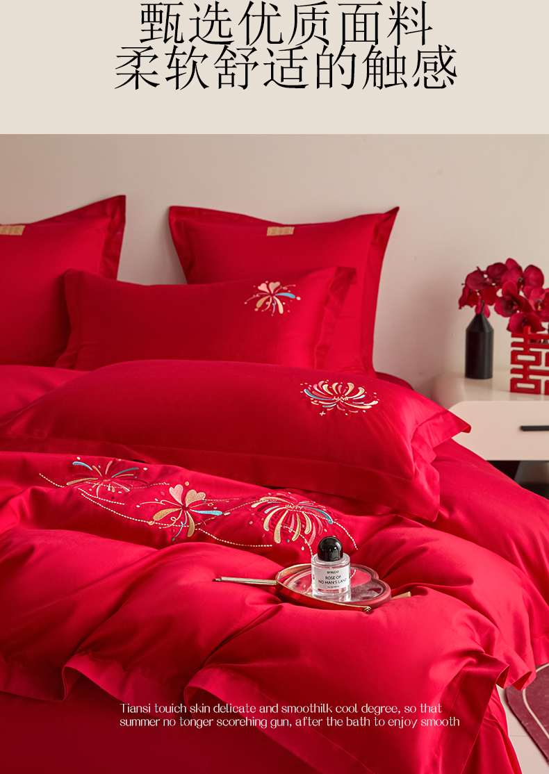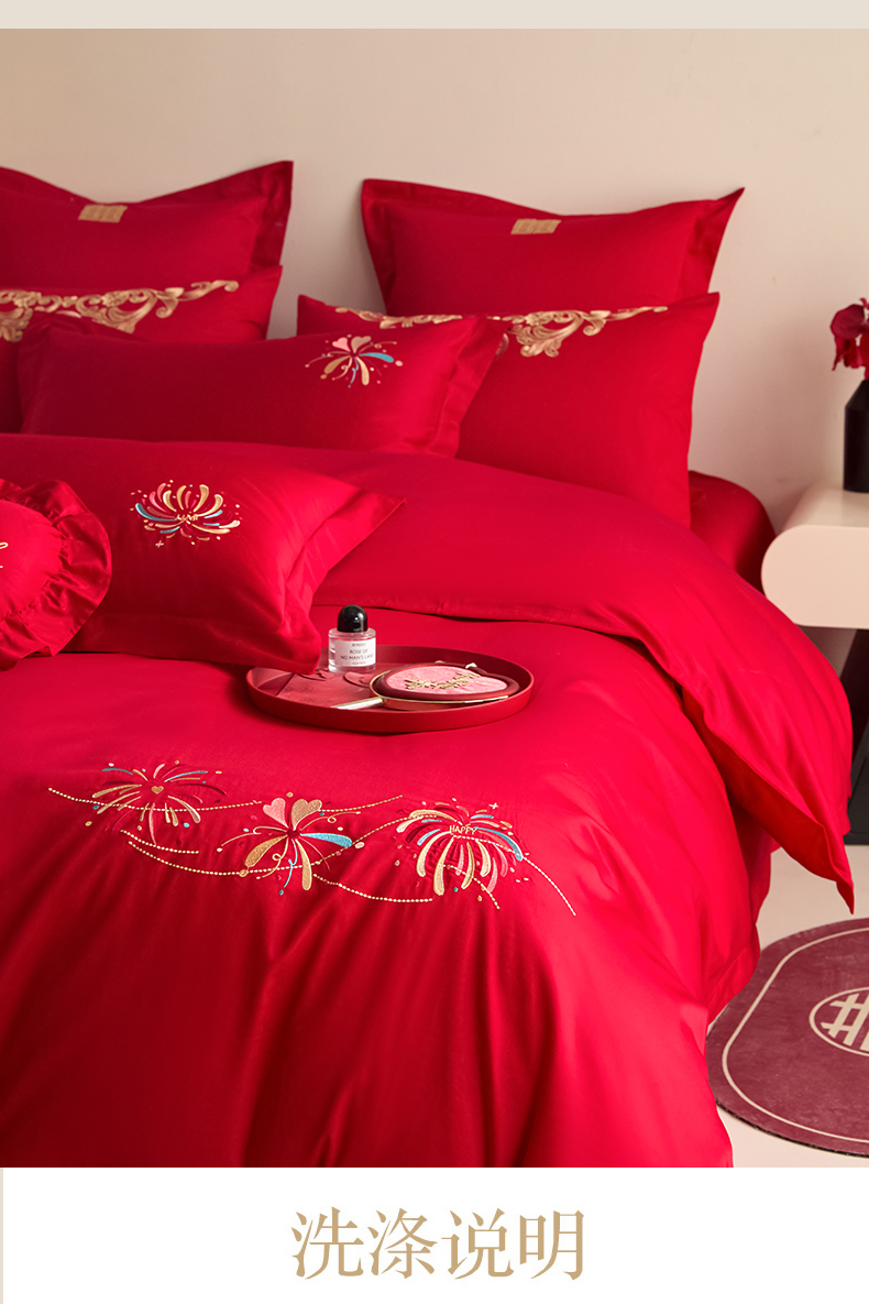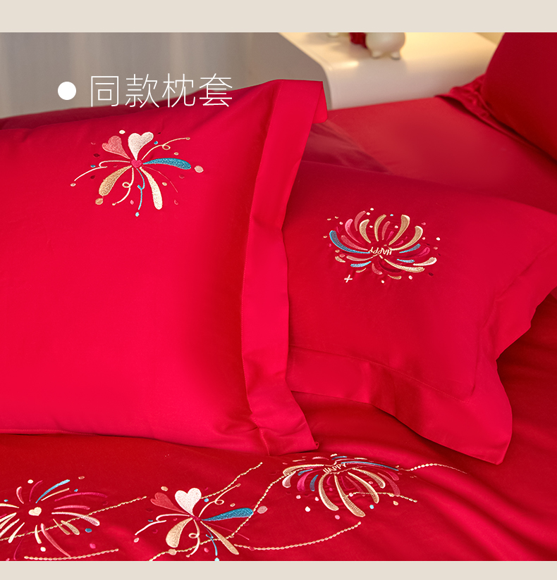 当前位置: 91家纺网 > 商品网购 > 床品套件 > 四件套 > 婚庆四件套 > 东方合美(原:皇家传奇)2025新款婚庆小红书化纤系列四件套(控价138/148) 美丽烟花