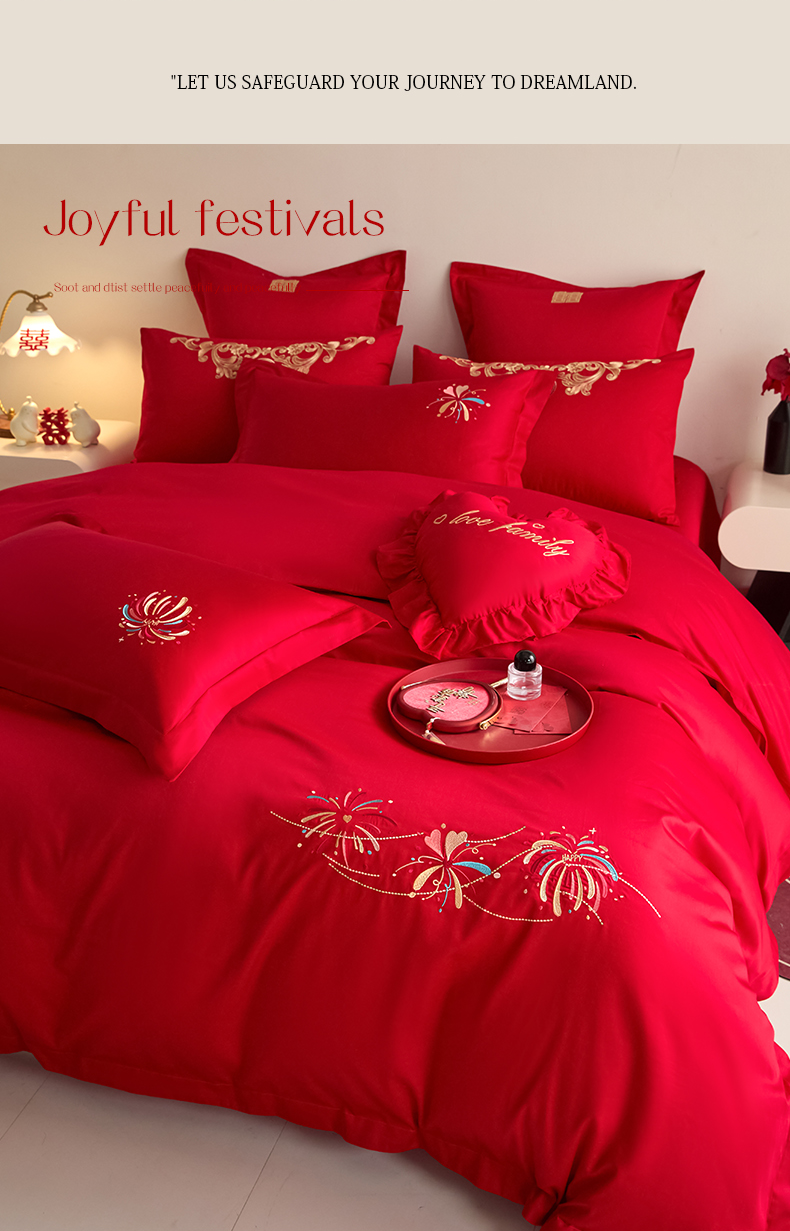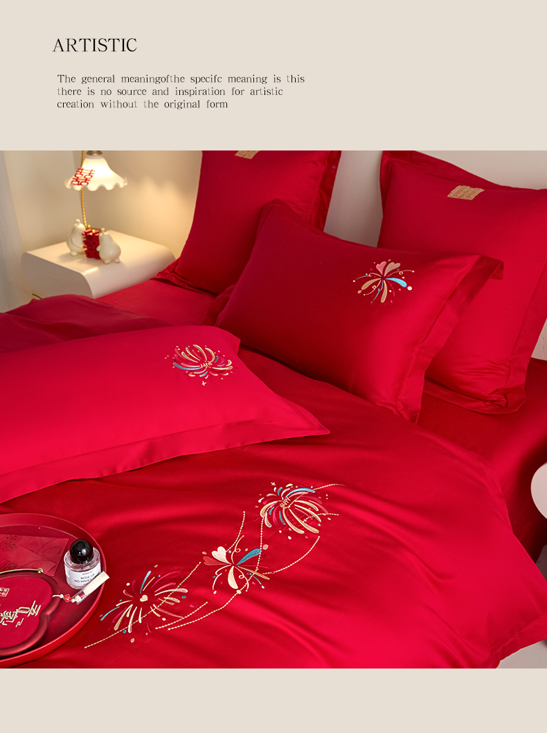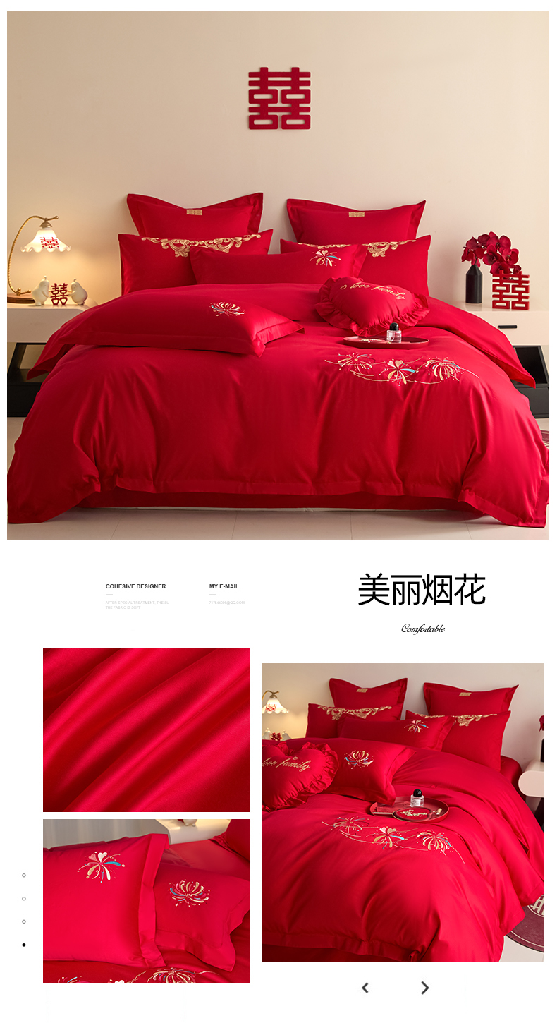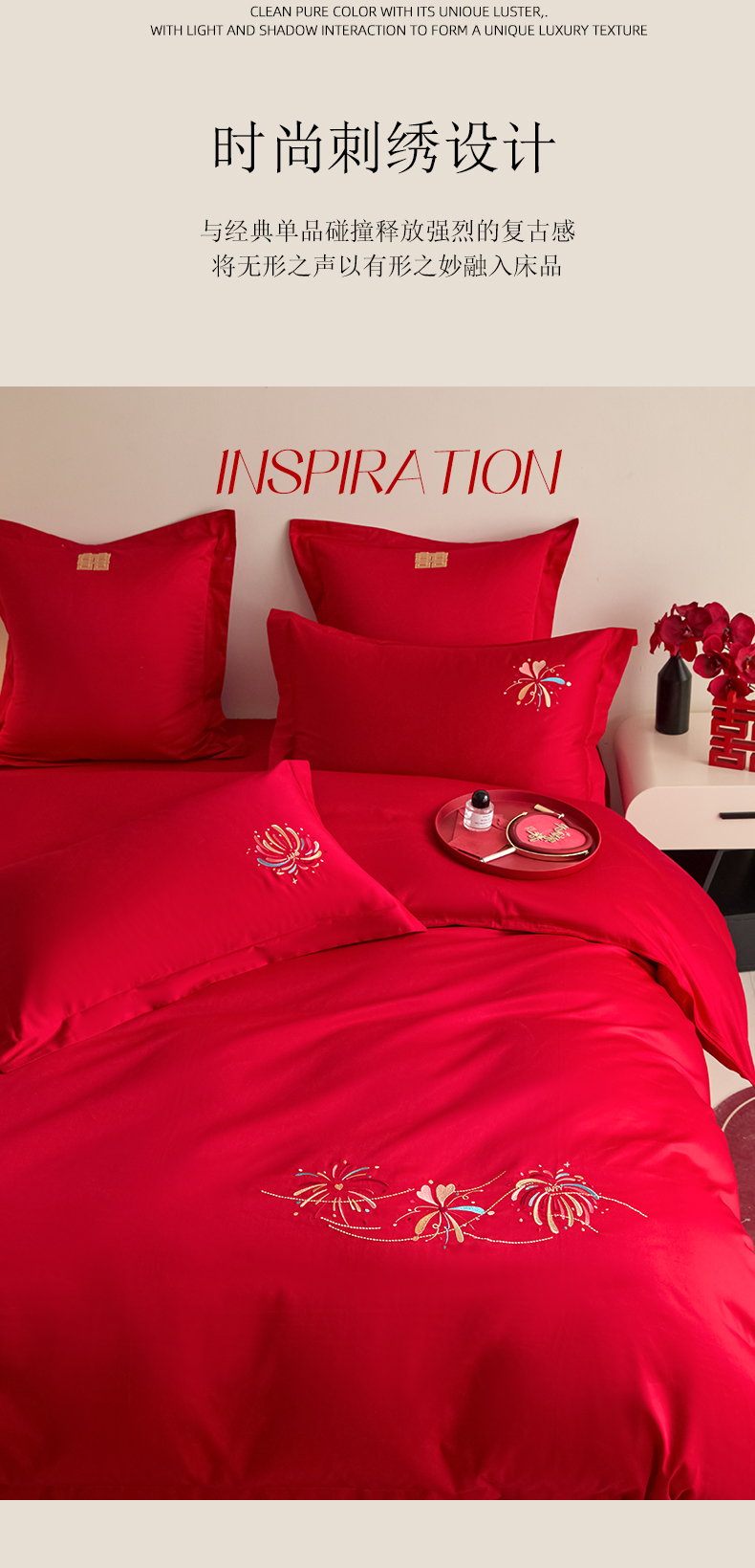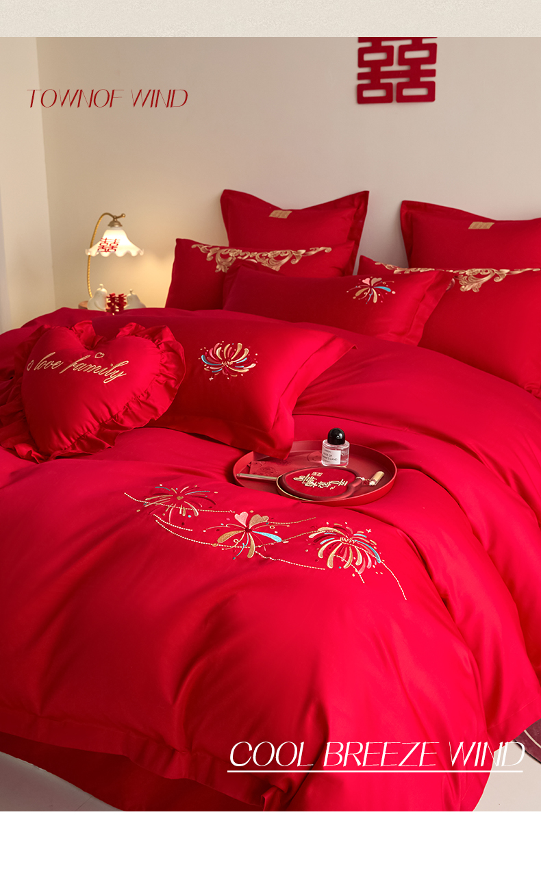 当前位置: 91家纺网 > 商品网购 > 床品套件 > 四件套 > 婚庆四件套 > 东方合美(原:皇家传奇)2025新款婚庆小红书化纤系列四件套(控价138/148) 美丽烟花