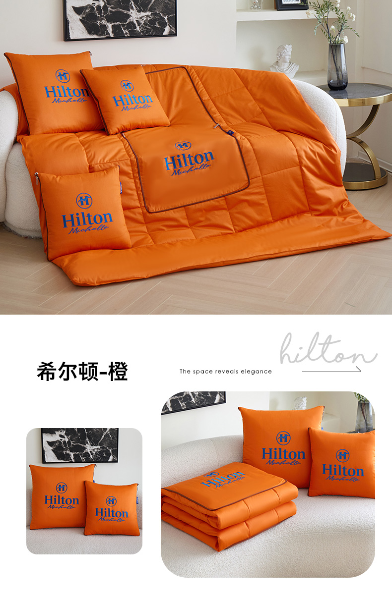 商品名称:宝马家纺(原梦童画) 2025新款全棉刺绣希尔顿四季款抱枕被 希尔顿-橙