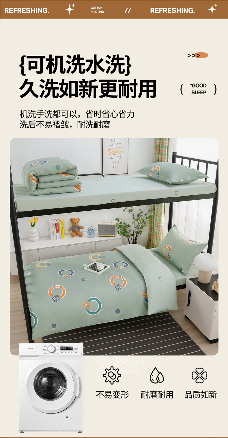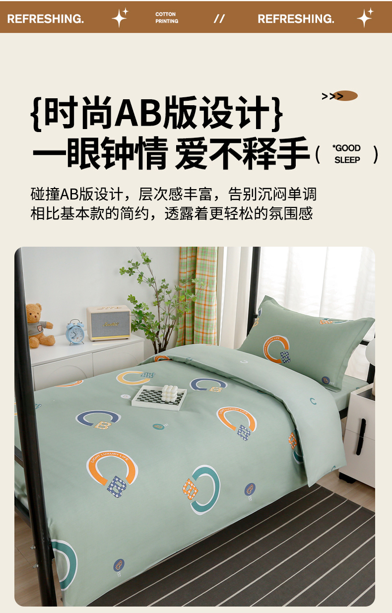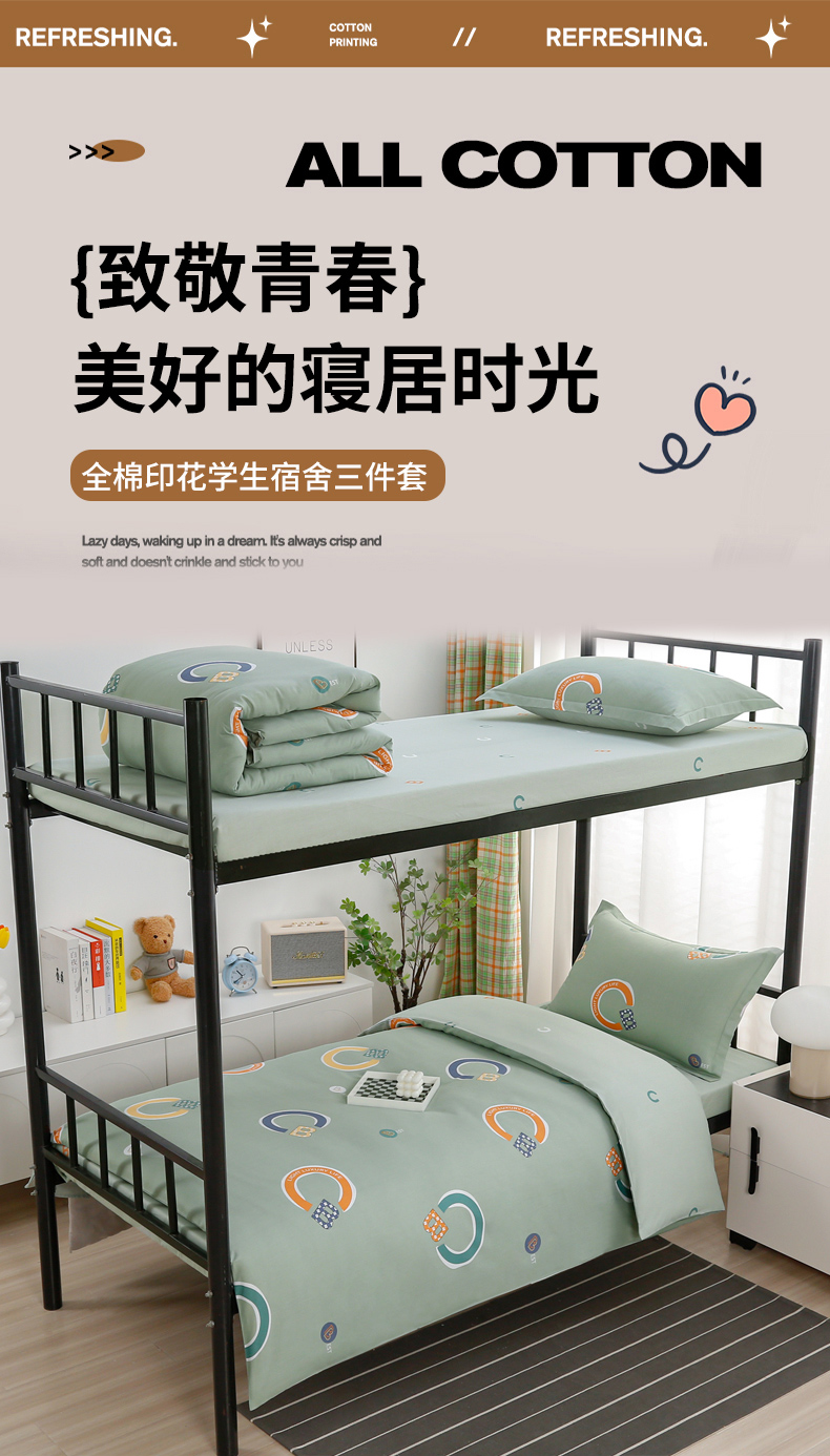 当前位置: 91家纺网 > 商品网购 > 床品套件 > 多件套 > 多件套 > 乐旗家纺 2025新款A类AB版全棉环保印花学生上下铺宿舍三件套六件套 维卡