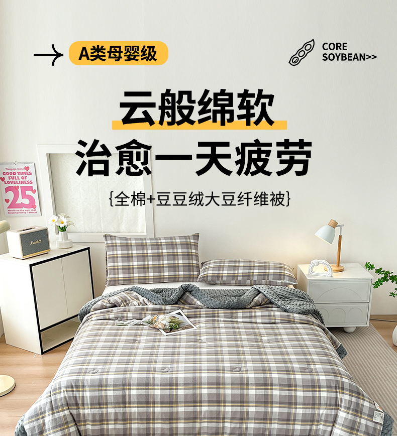 (总)鸣升家纺 2025新款四季款全棉大豆被,菽菽木兰-粉,菽菽木兰-白,菽菽木兰-灰