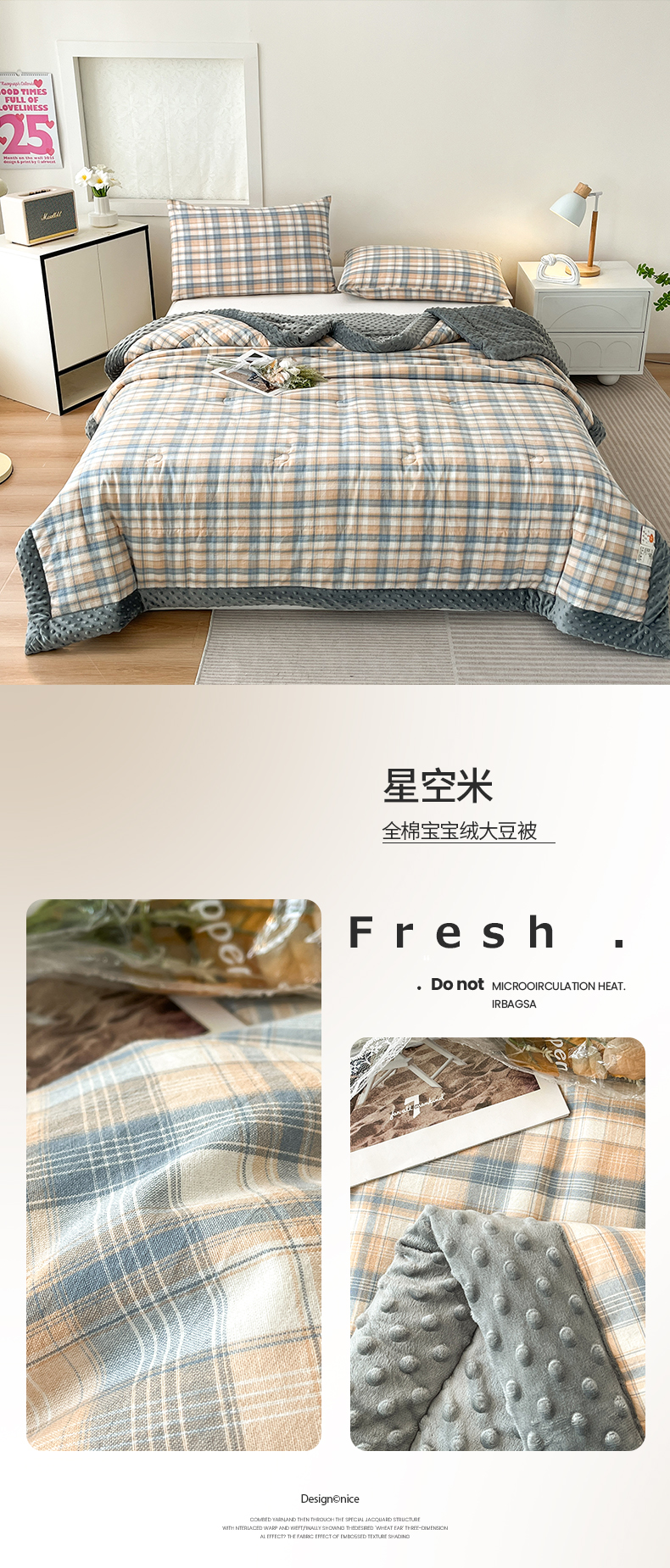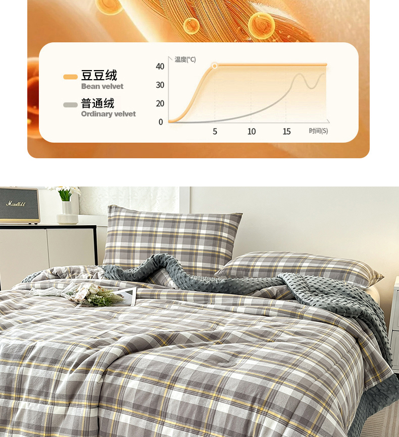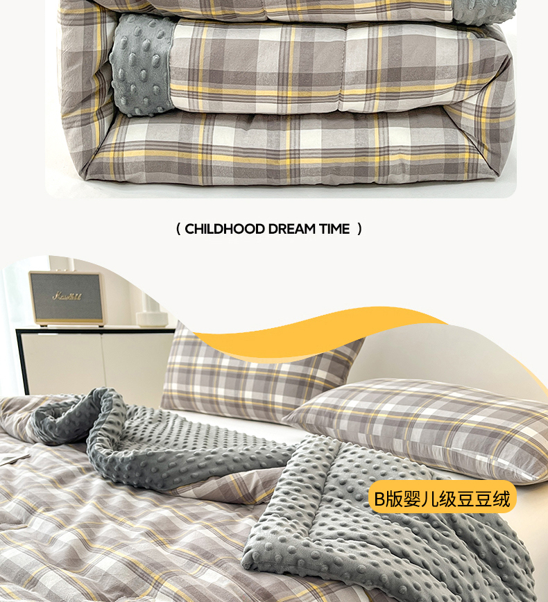 • 91家纺网 家纺一手货源 找家纺 鸣升家纺 2025新款全棉豆豆被被子被芯 莫妮卡灰