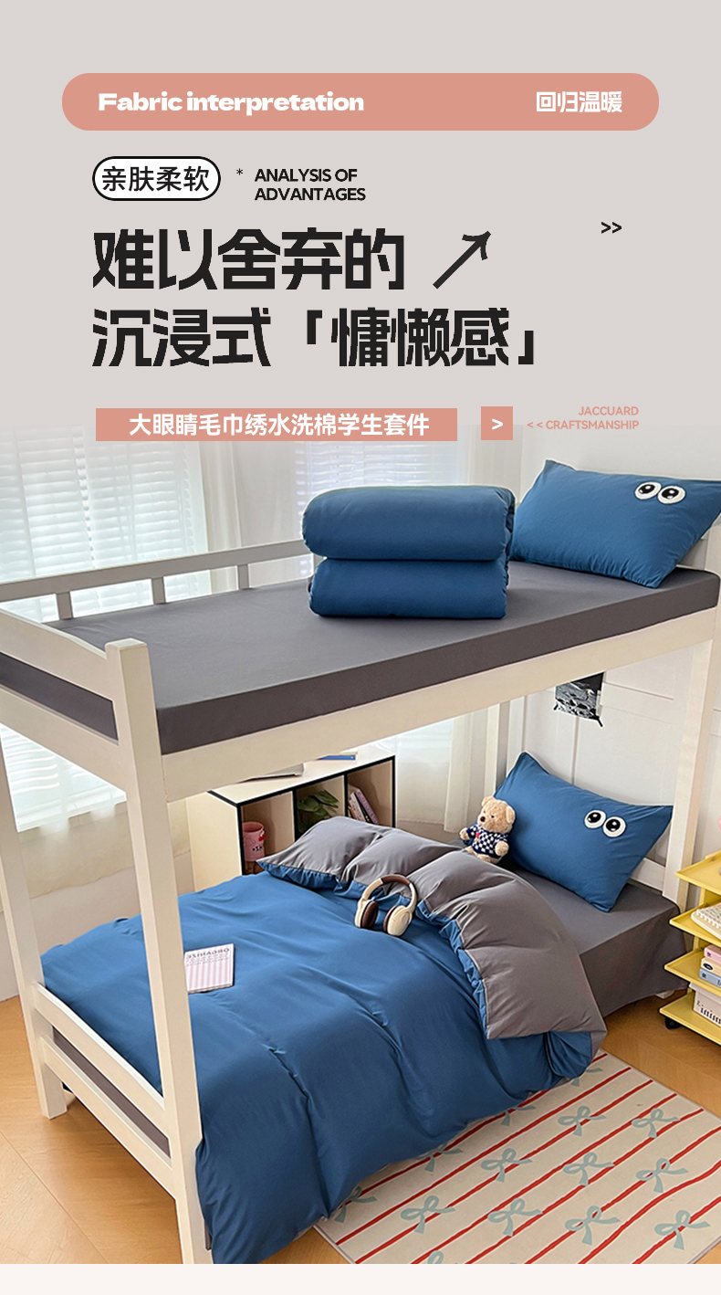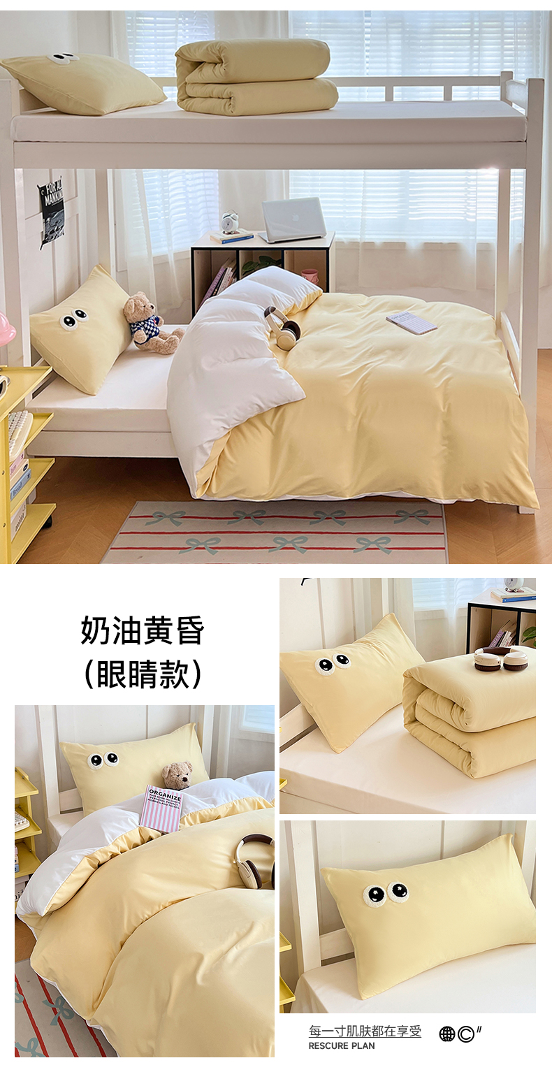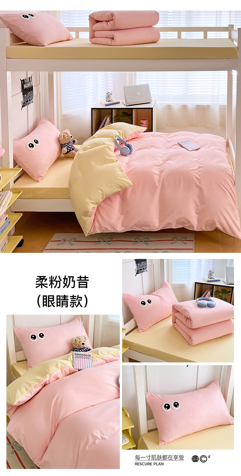 商品名称:(总)(总)2025新款学生季萌趣大眼睛毛巾绣纯色双拼水洗棉六件套大学生寝室上下铺组合套装
