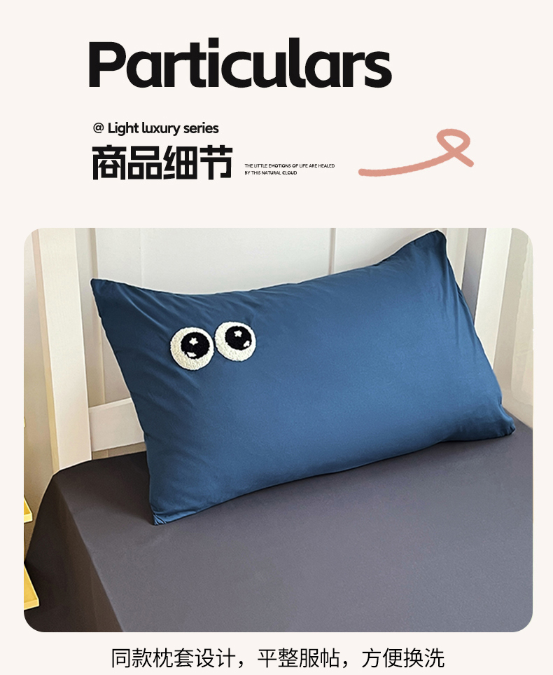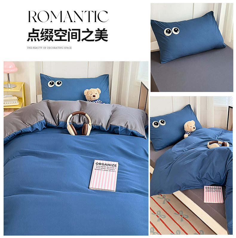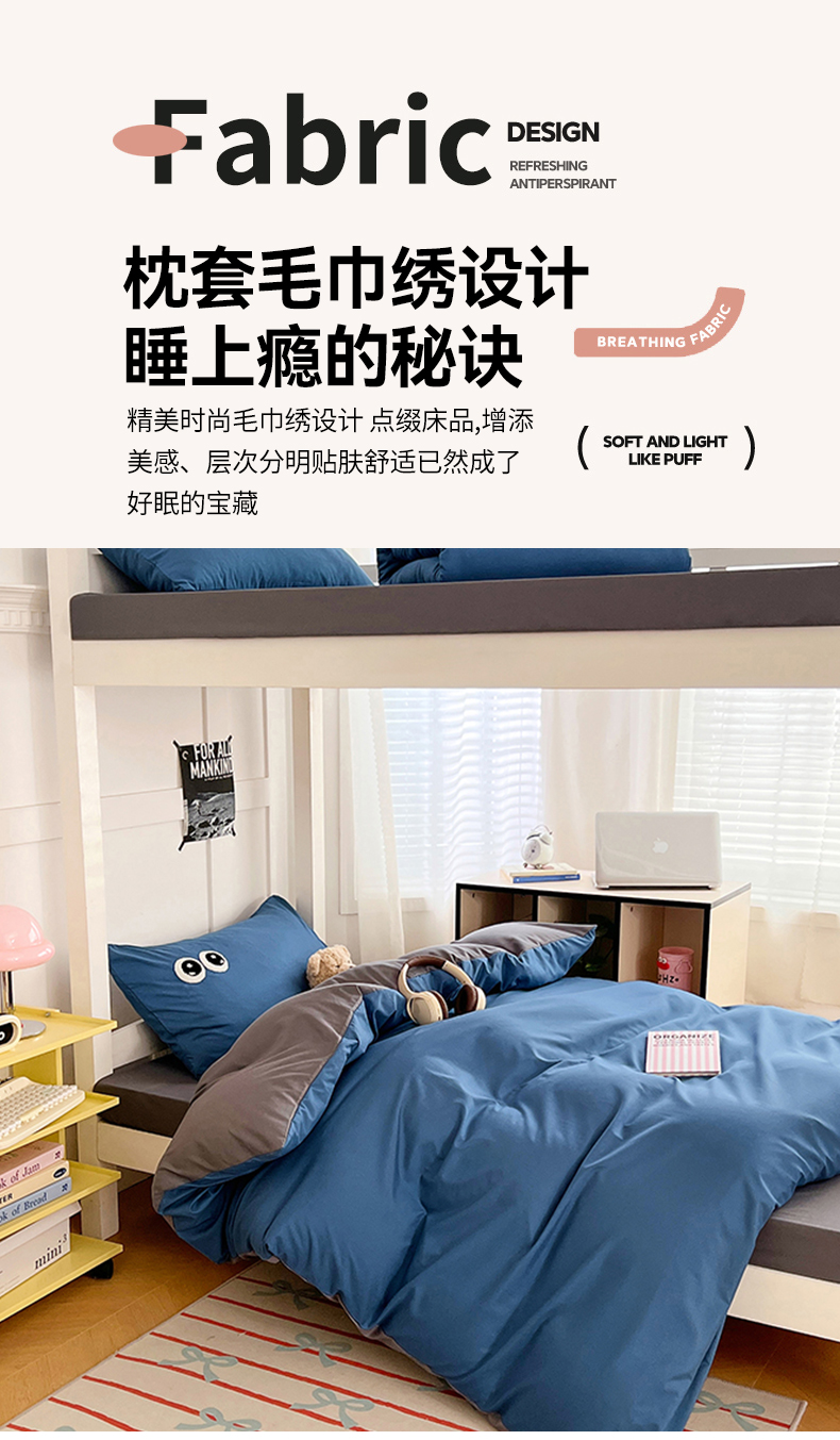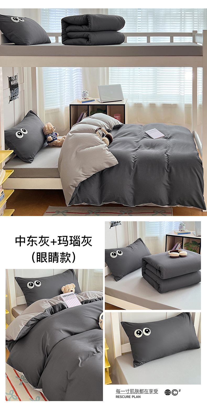 商品名称:(总)(总)2025新款学生季萌趣大眼睛毛巾绣纯色双拼水洗棉六件套大学生寝室上下铺组合套装